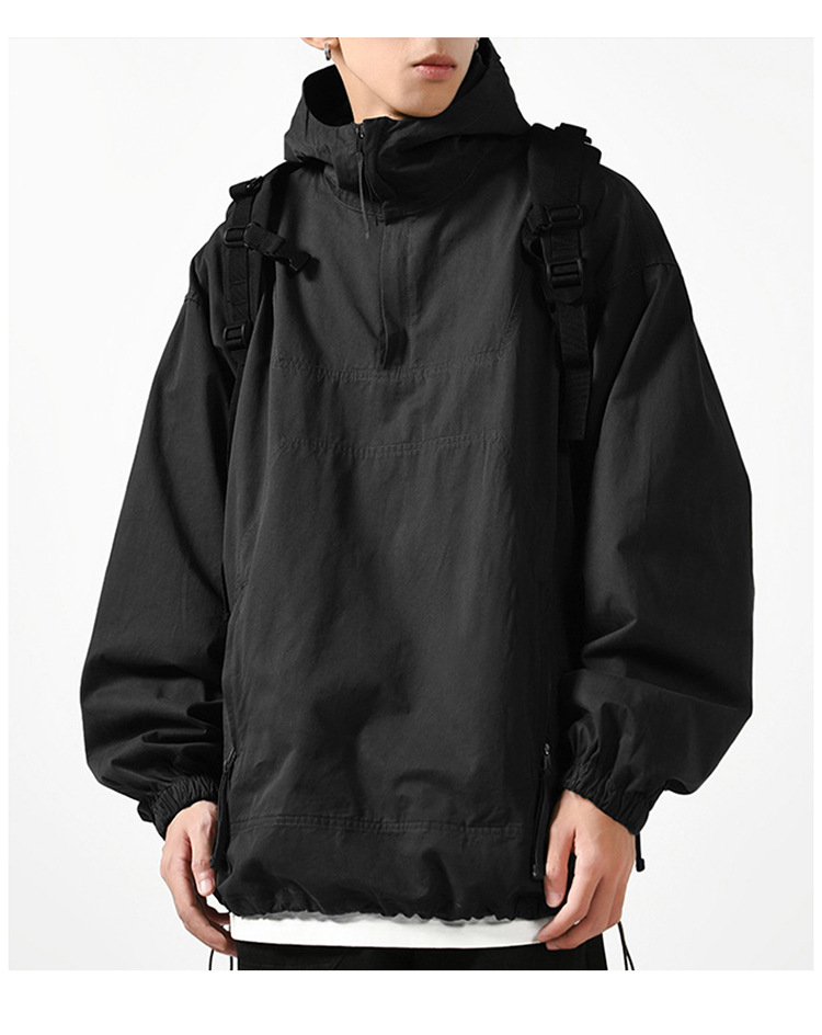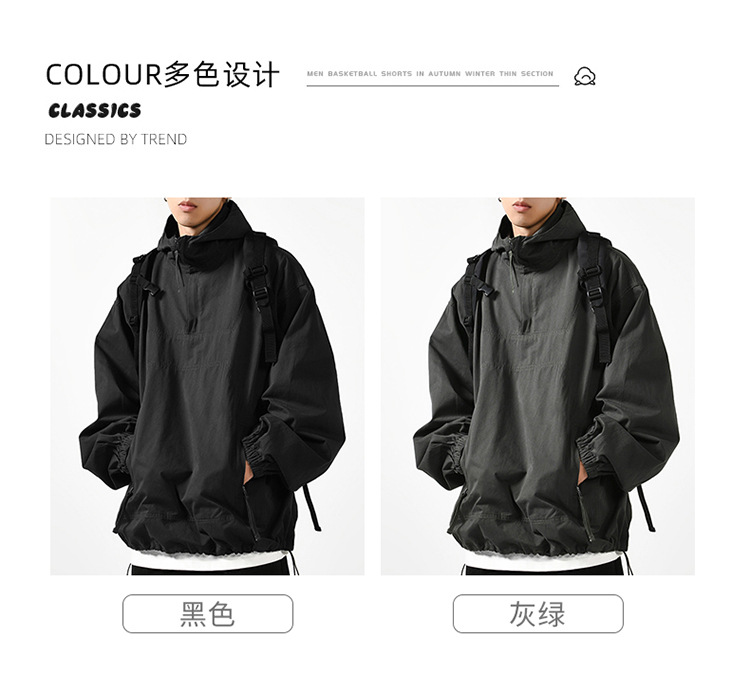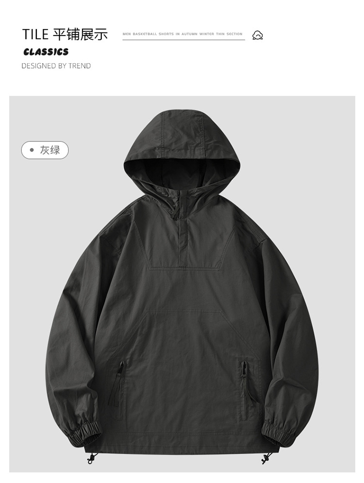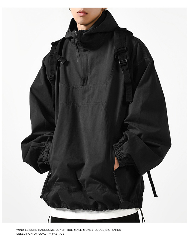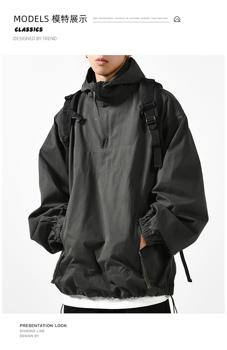 Куртка мужская весна и осень с капюшоном хлопчатобумажная куртка куртка одежда свободная тонкая сплошная тенденция