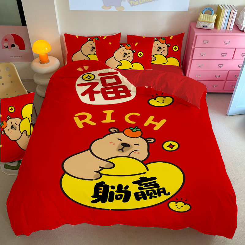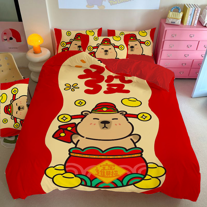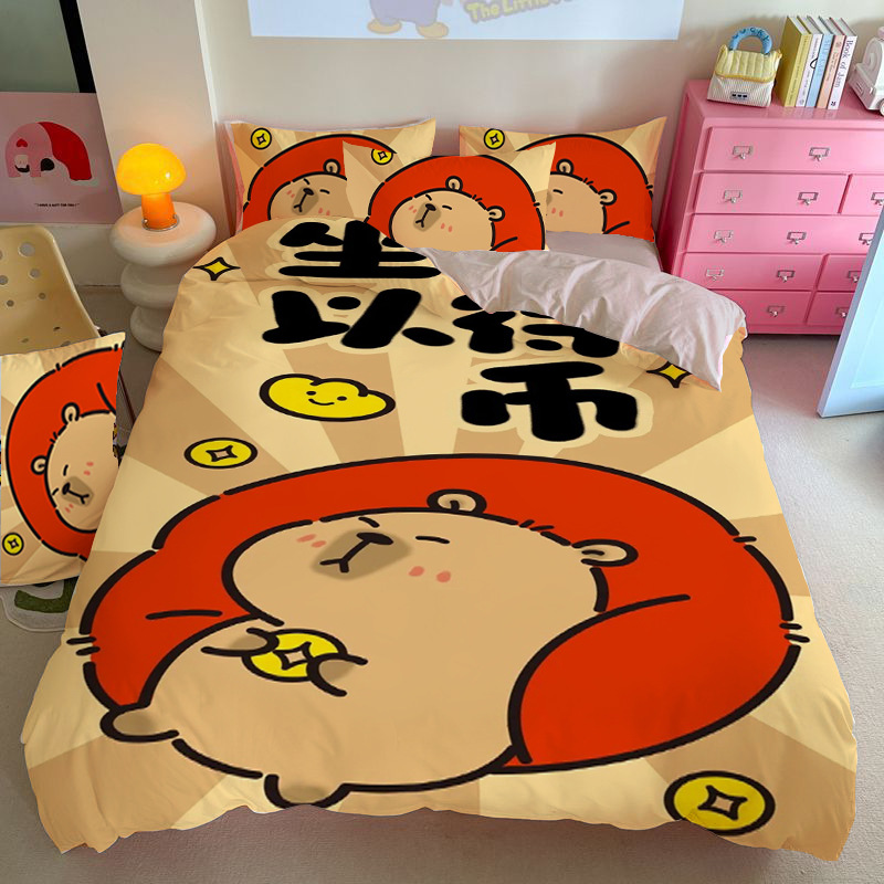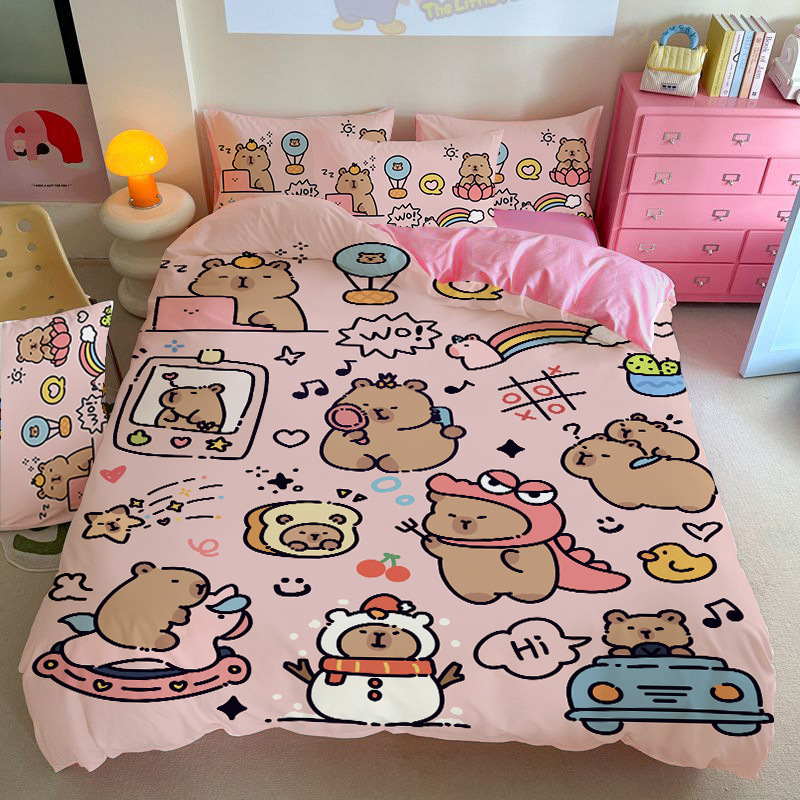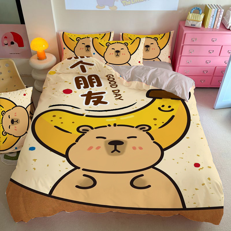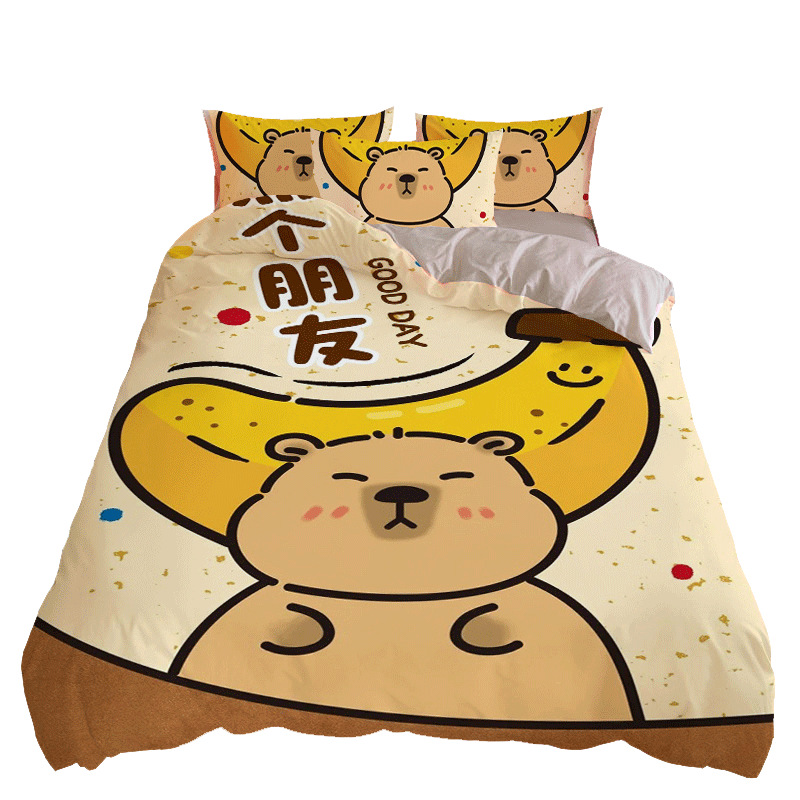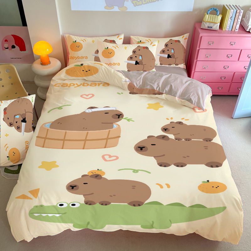 Капибара набор из четырех частей capybara постельное белье двойной милый простой стиль простыни одеяло мягкий и удобный