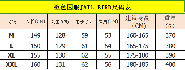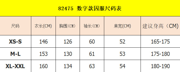 Тип А: неопечатанная тюремная форма; Модель B 82475, модель для взрослых; Стиль C 3825869 для взрослых; Эластичная талия в стиле D style DOC; Тип E PRISONER для взрослых; Тип F JAIL-BIRD