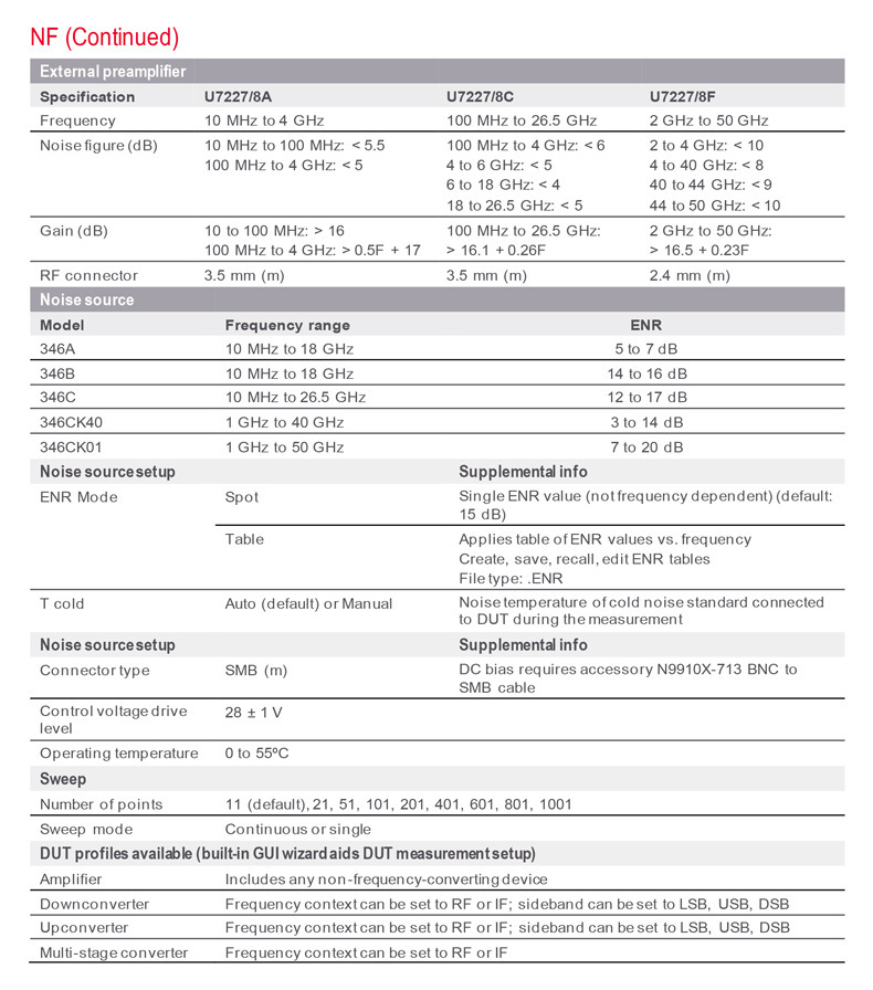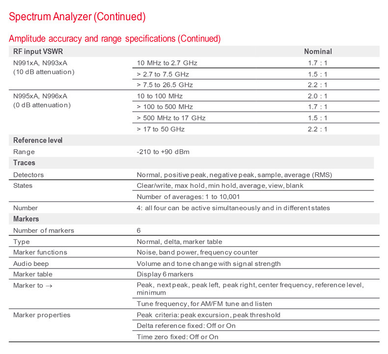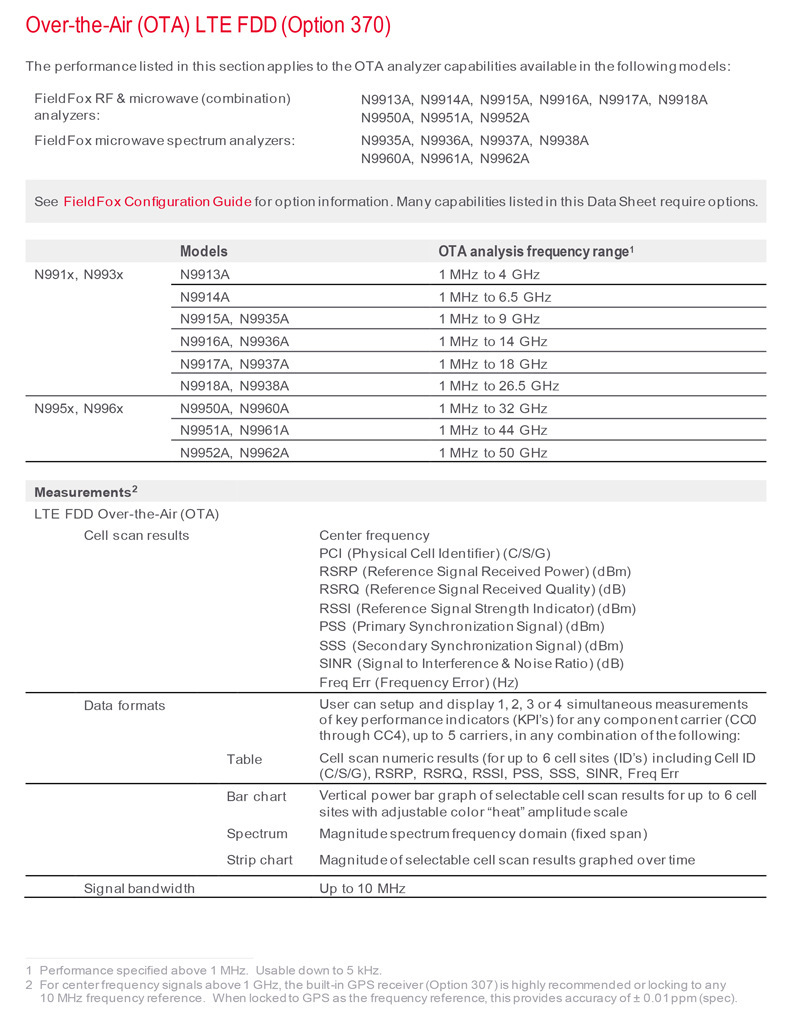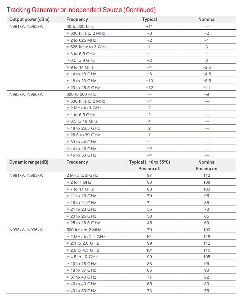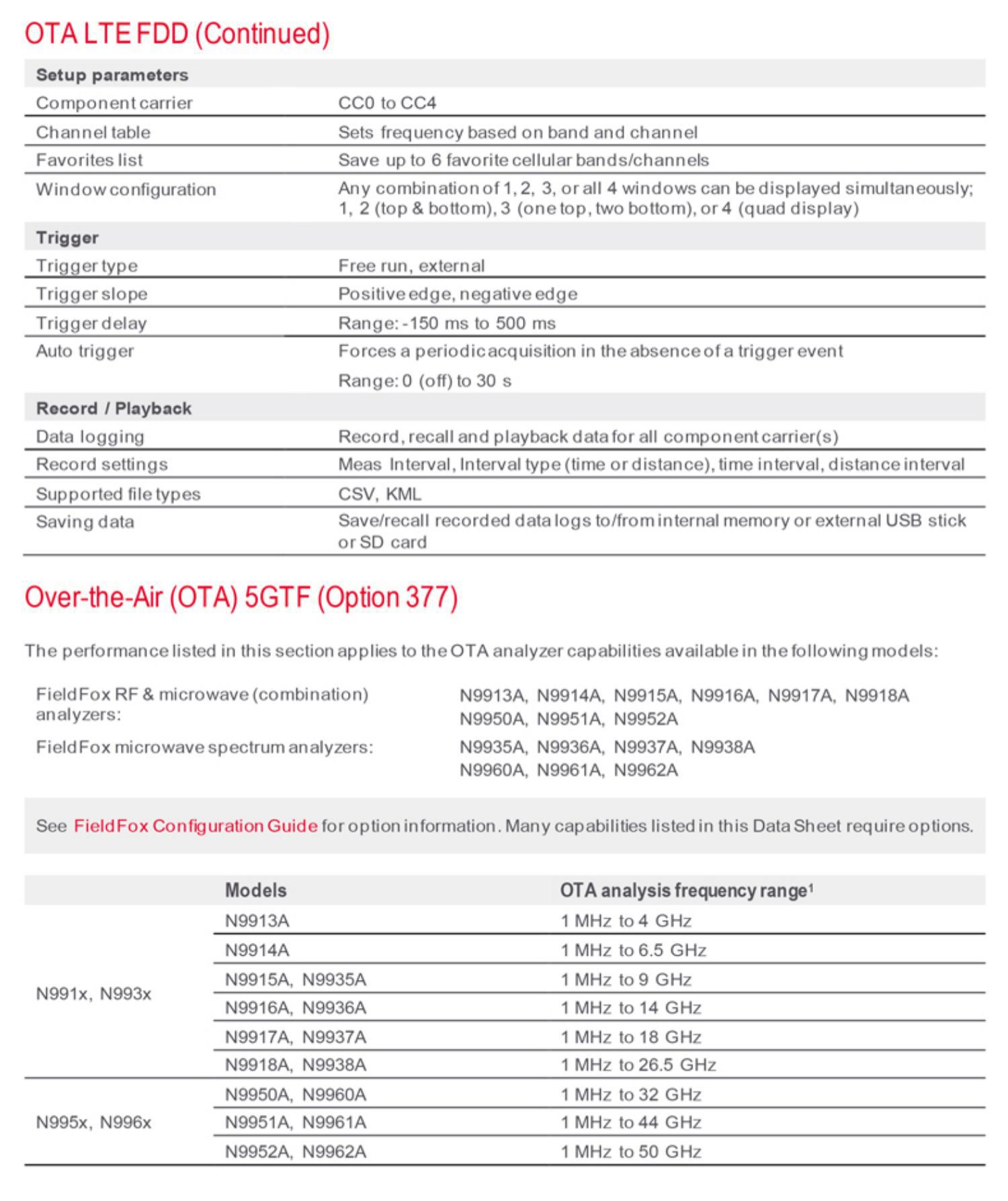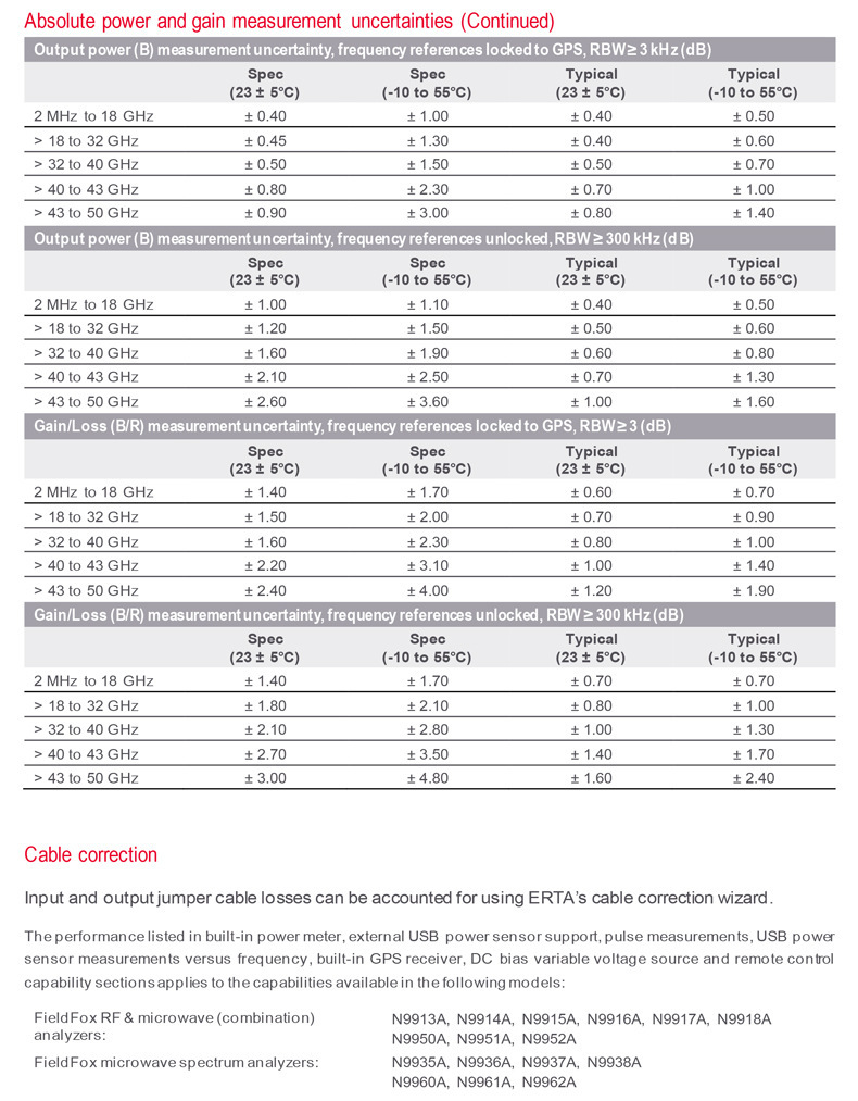 N9912A (ручной радиочастотный анализатор, 4 ГГц); N9912A (ручной радиочастотный анализатор, 6 ГГц); N9913A (портативный микроволновый анализатор, 4 ГГц); N9914A (ручной радиочастотный анализатор, 6,5 ГГц); N9915A (портативный микроволновый анализатор, 9 ГГц); N9916A (портативный микроволновый анализатор, 14 ГГц); N9917A (портативный микроволновый анализатор, 18 ГГц); N9918A (ручной микроволновый анализатор, 26,5 ГГц); N9950A(9kHz-32GHz); N9951A(9kHz-44GHz); N9952A(9kHz-50GHz); N9910X-708 (тестовый кабель N-SMA); N9914A-233 (опция анализатора спектра); N9914A-235 (опция предусилителя); N9914A-350 (опция спектра реального времени)