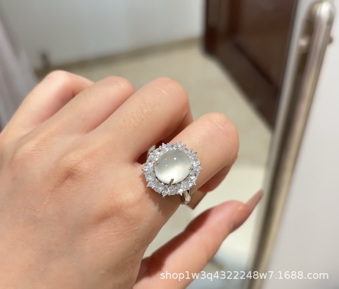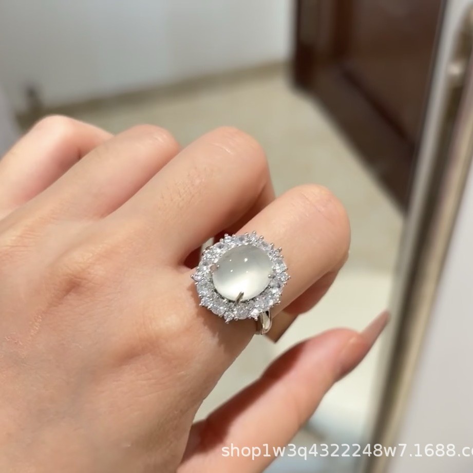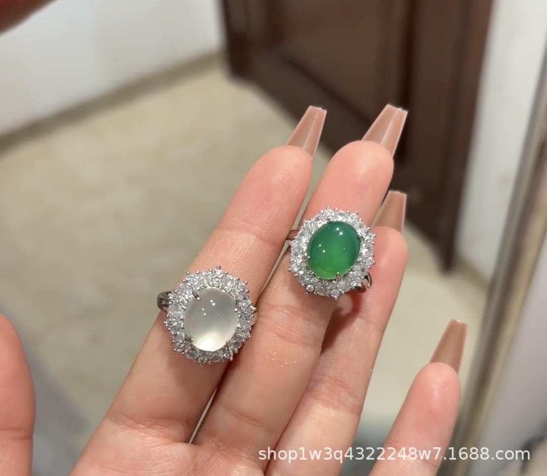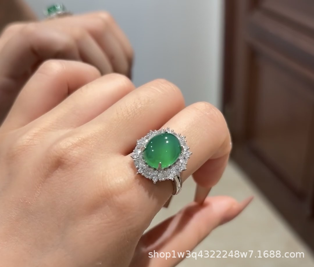 Императорское зеленое халцедонное кольцо женский регулируемый высокий лед белый агат кольцо изумрудное зеленое нефритовое кольцо мода легкие роскошные украшения