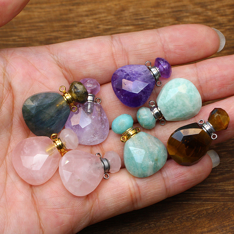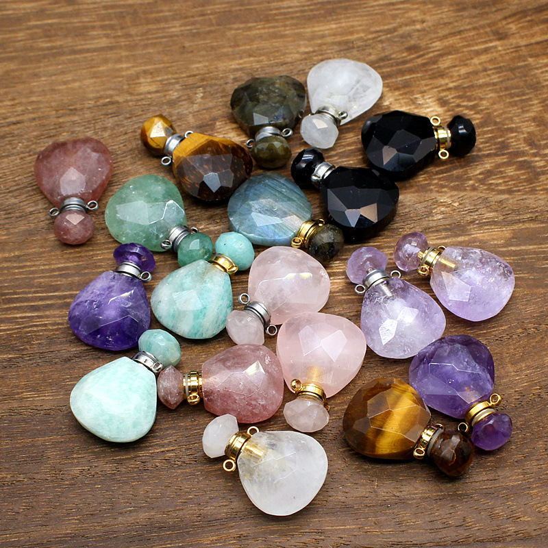 Трансграничный хрустальный ювелирный орнамент оптовый натуральный камень капли клубничного кристалла с разрезанием небольшой кулон для ароматерапии бутылки через диффузор