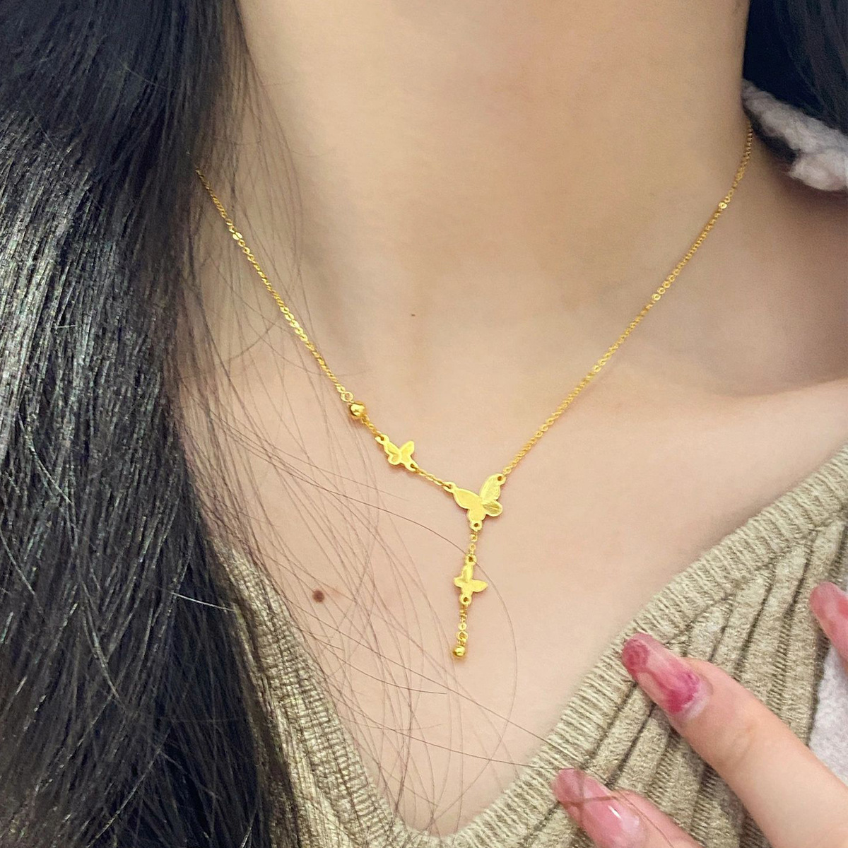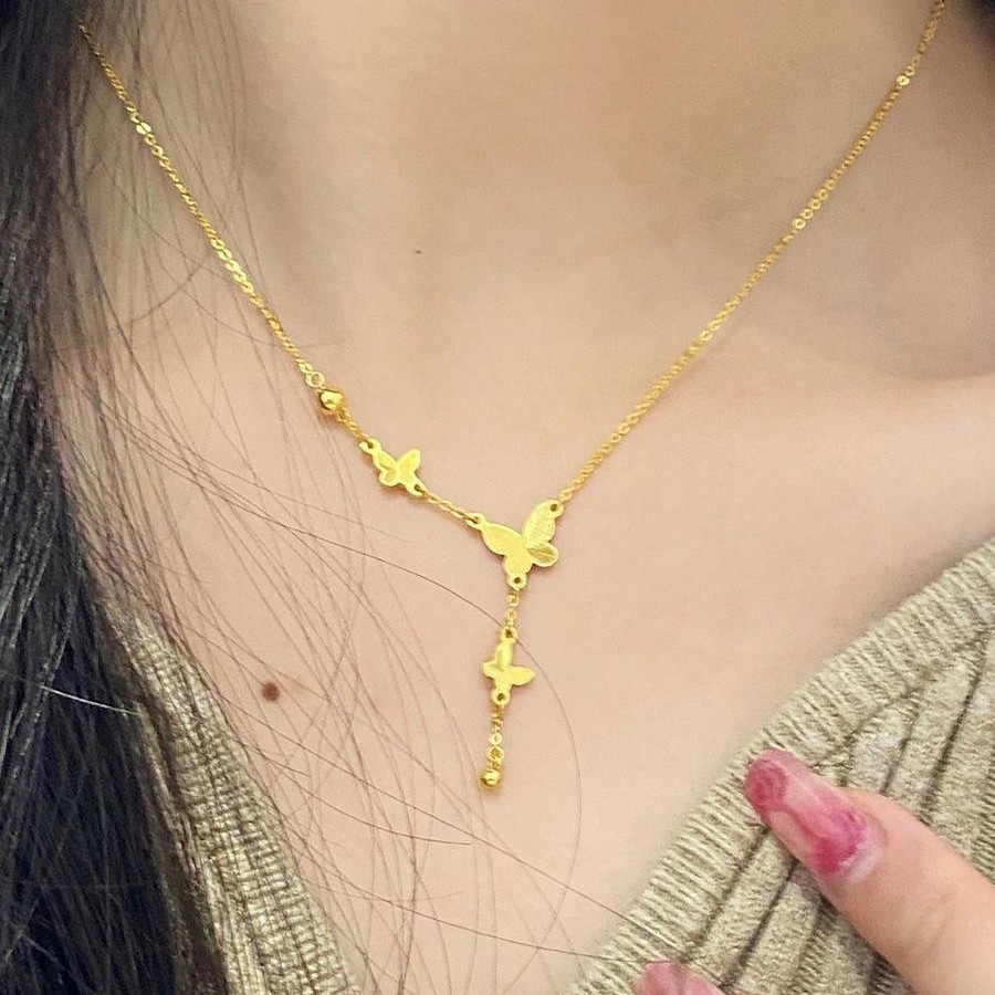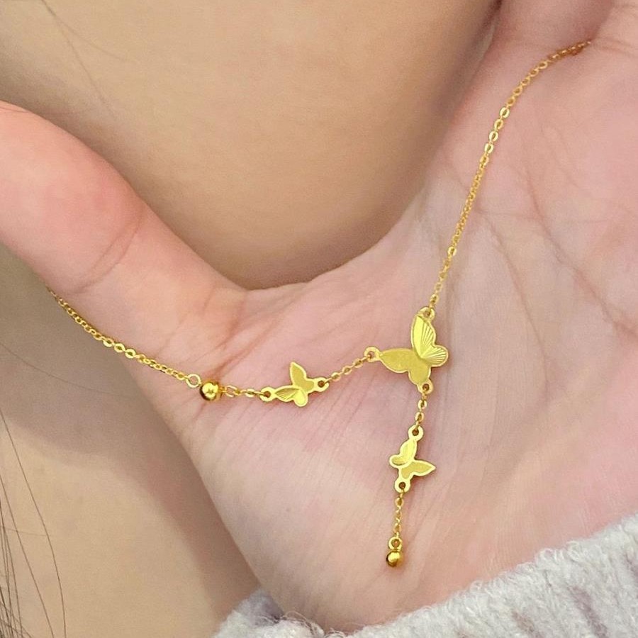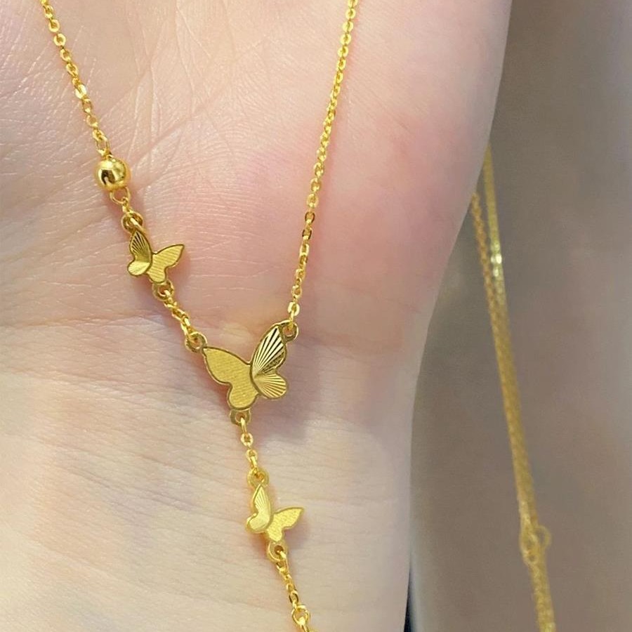 Не выцветает! Изысканное золотое ожерелье с кисточками в виде бабочки из 18-каратного золота, женская цепочка на ключицу принцессы-беглеца, новый стиль 2025 года