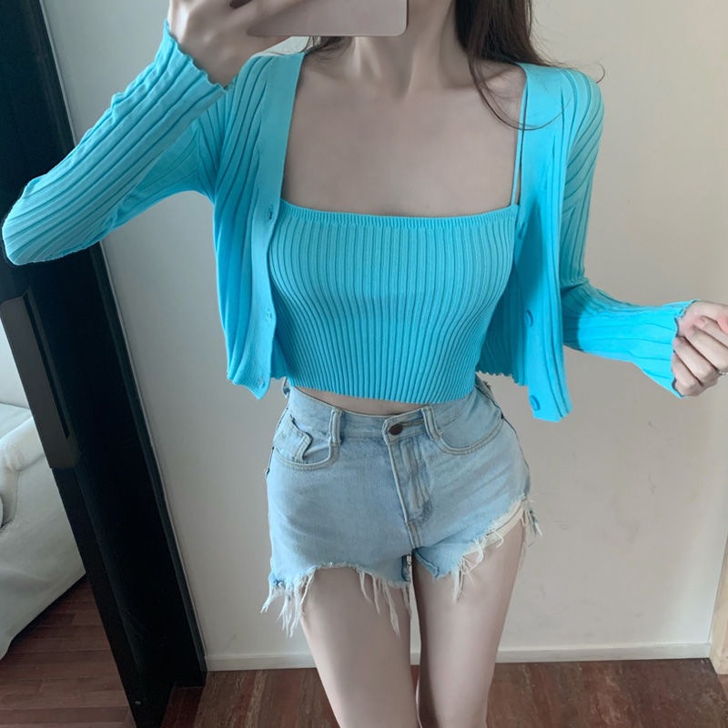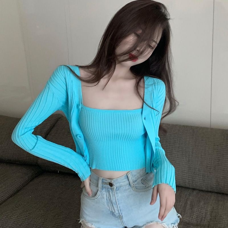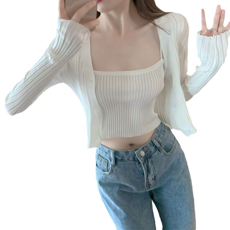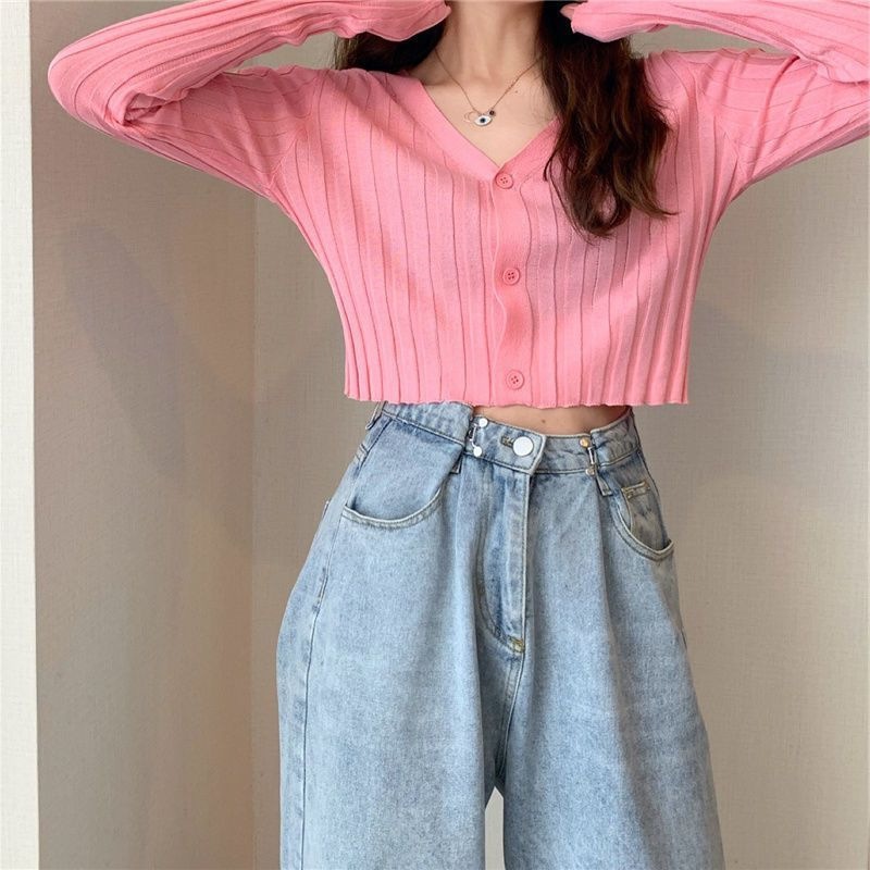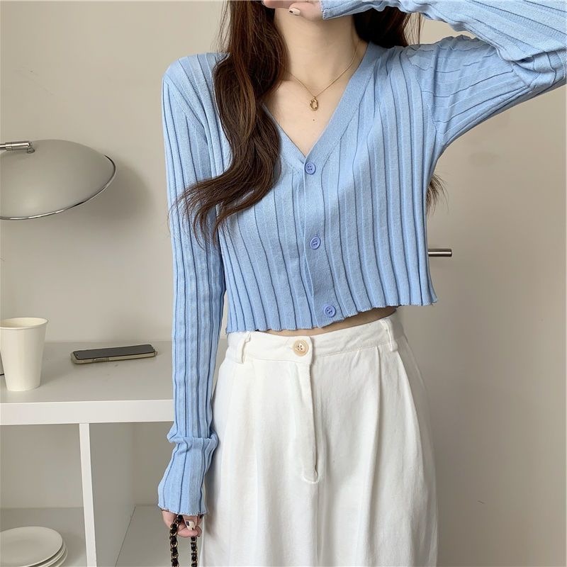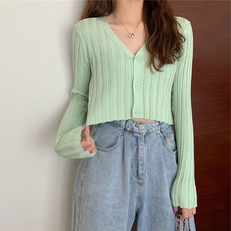 Новый летний тонкий вязаный кардиган из ледяного шелка с длинными рукавами солнцезащитный шаль короткий топ кондиционер сплошной цвет маленький пиджак