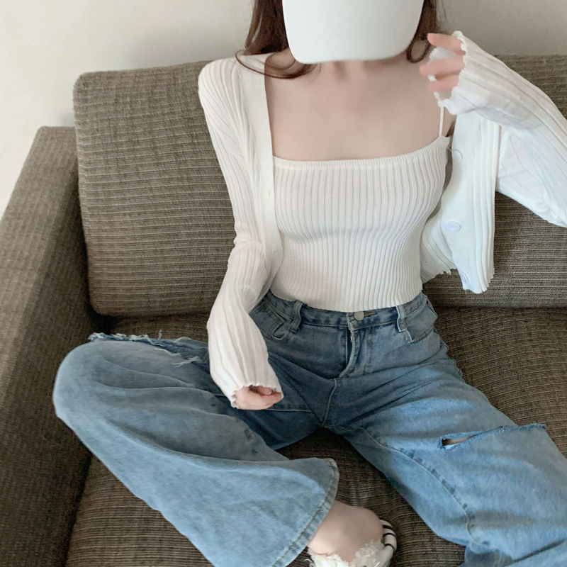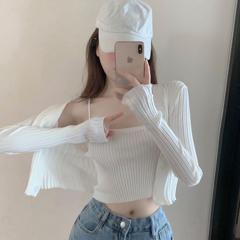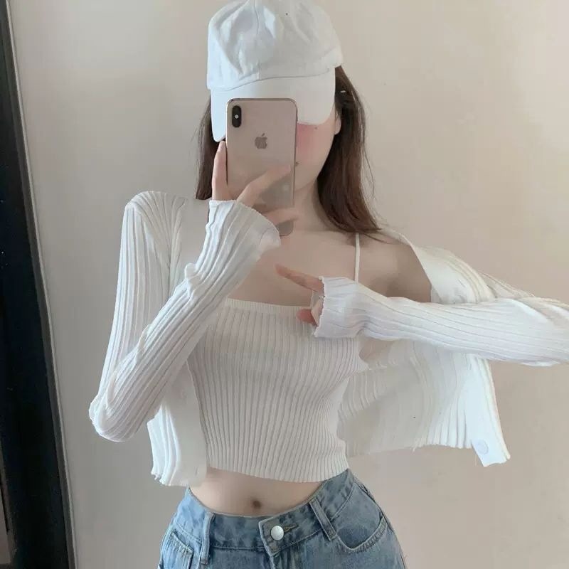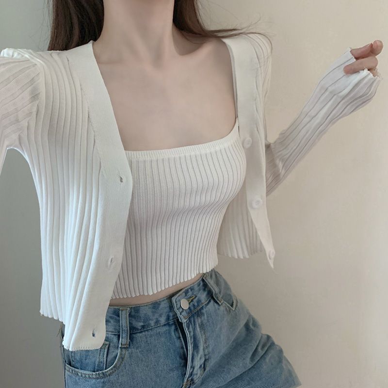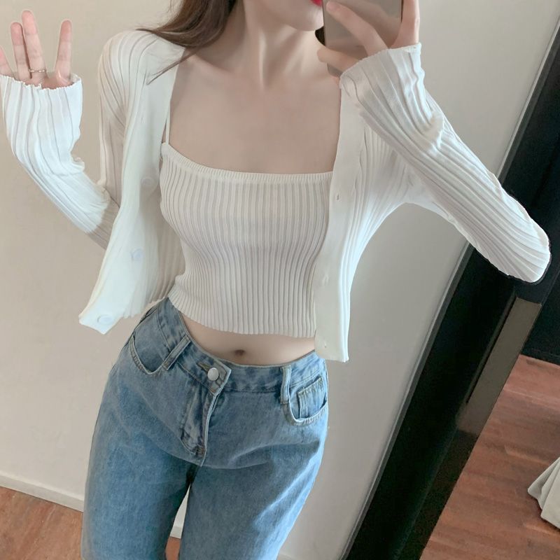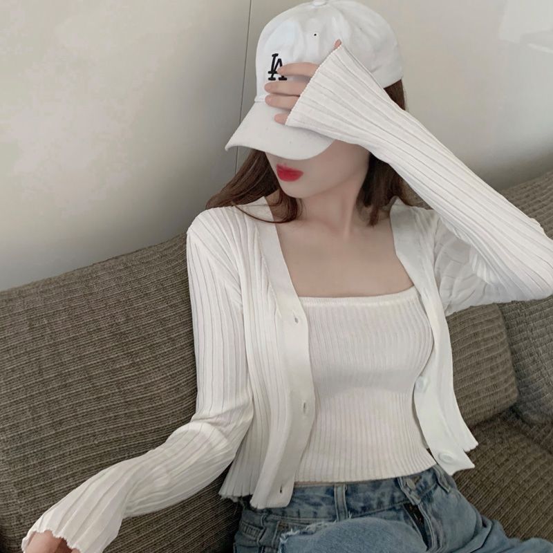 Новый летний тонкий вязаный кардиган из ледяного шелка с длинными рукавами солнцезащитный шаль короткий топ кондиционер сплошной цвет маленький пиджак