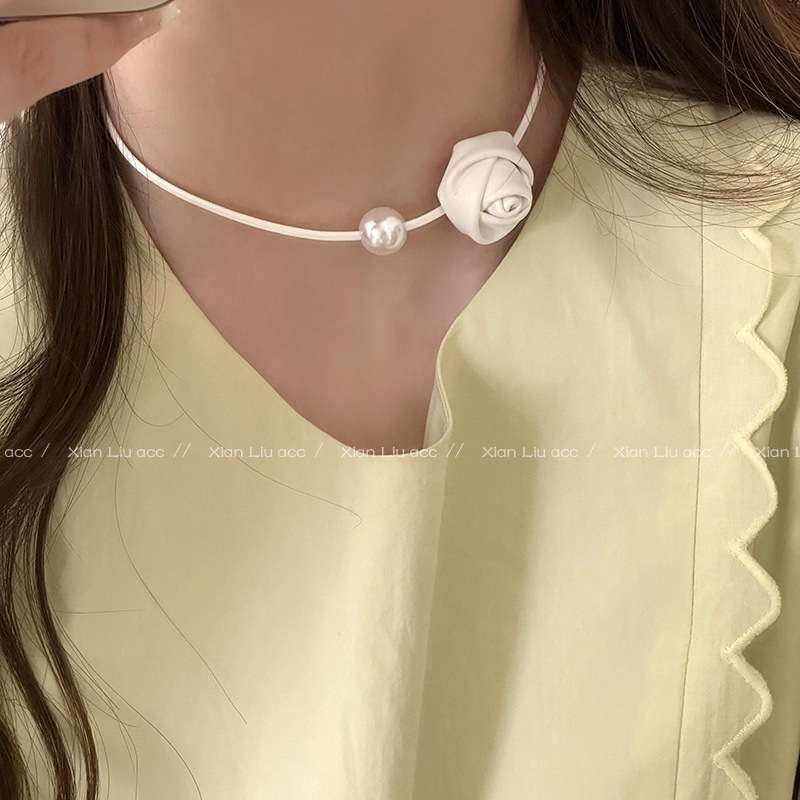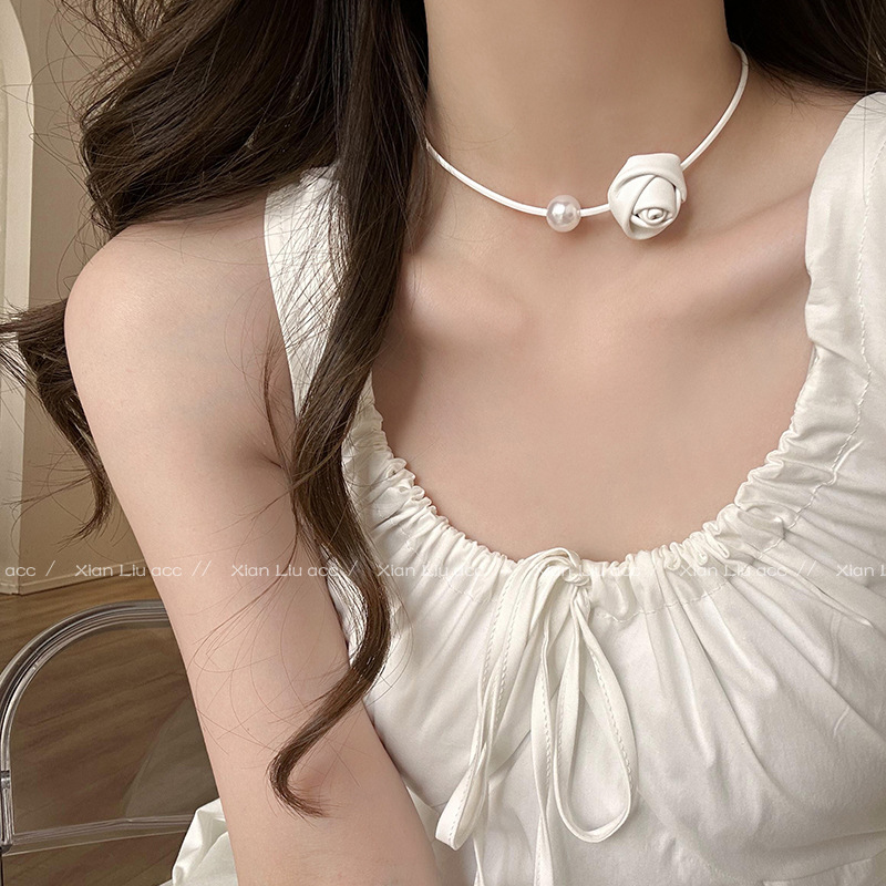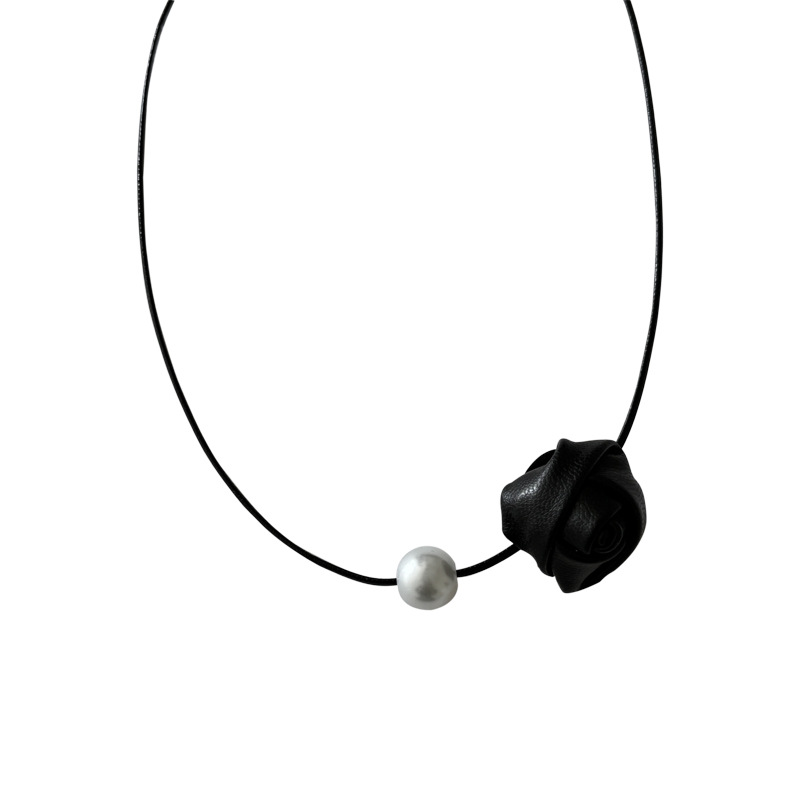 Ожерелье из жемчуга белой розы; Серебряное ожерелье с жемчугом и розой; Ожерелье из жемчуга черной розы