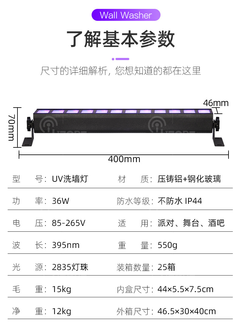 Настенный светильник для мытья посуды 36 Вт (УФ-фиолетовый свет)
