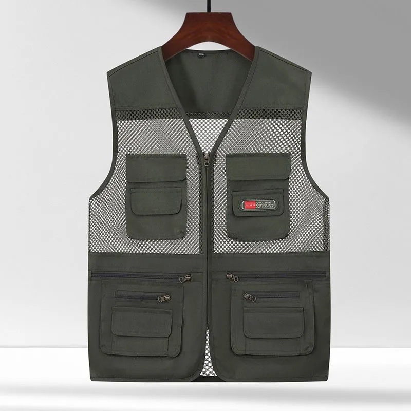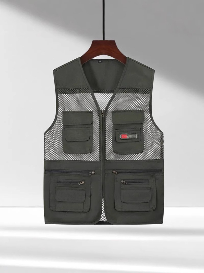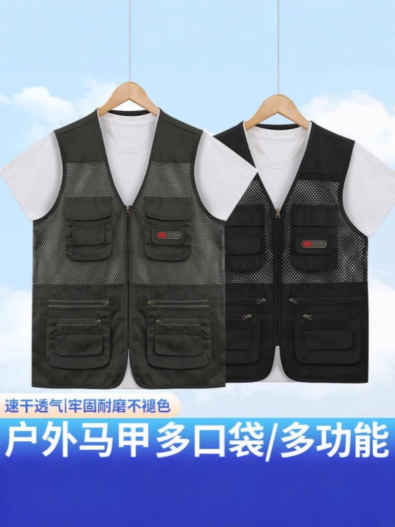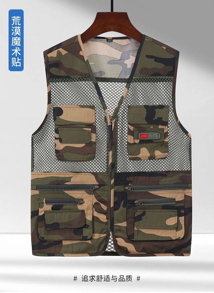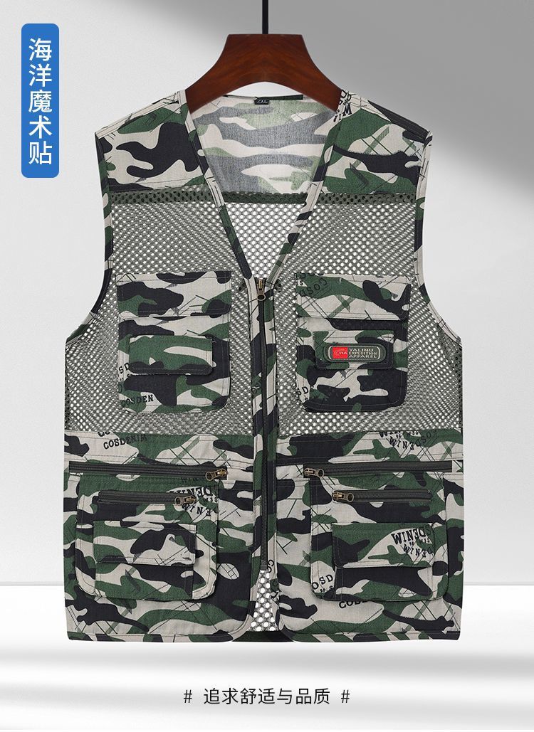 Многокарманный летний сетчатый жилет для мужчин среднего и пожилого возраста на свежем воздухе тонкий фото камуфляжный жилет папа плечо