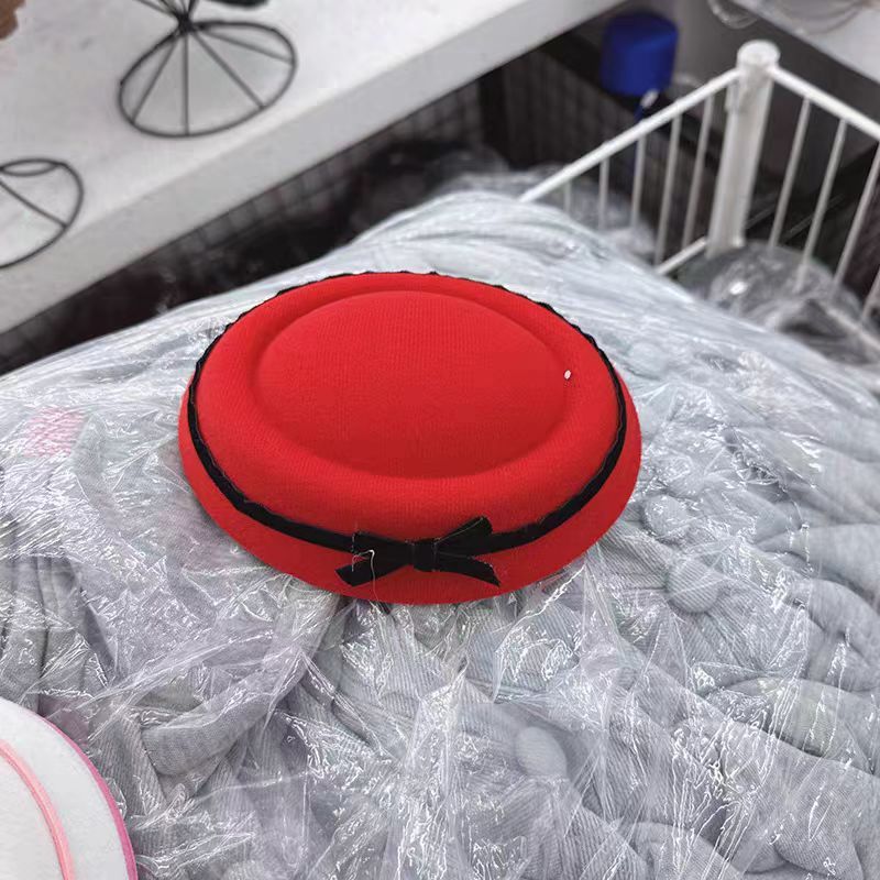 Оригинальный бархатный лук-цилиндр темперамент Хепберн ветер заколки для волос Y2K сладкая девушка мини-стюардесса шляпа сетка красный