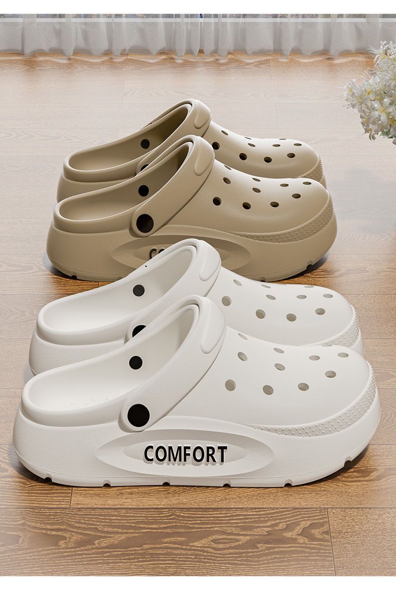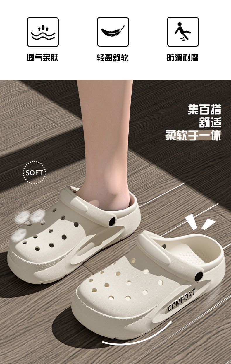 Пара носить дырочную обувь повседневная дикая летняя 2025 толстое дно нескользящие мужские пляжные двойные холодные тапочки оптом