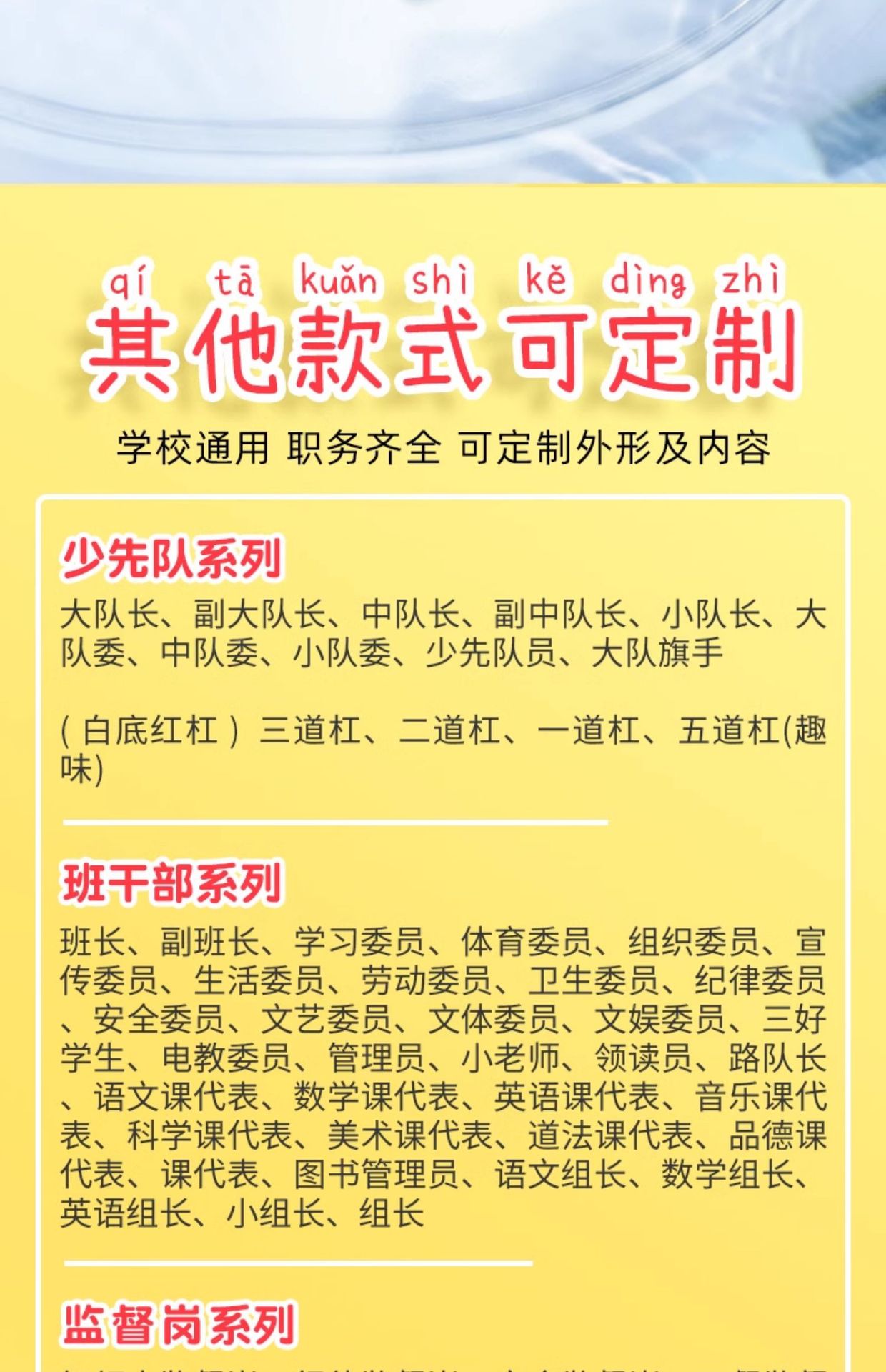 Монитор школьной службы, член учебного комитета, тканая повязка с тканевой этикеткой, ремешок для медали, подвеска на повязке, значок, повязка