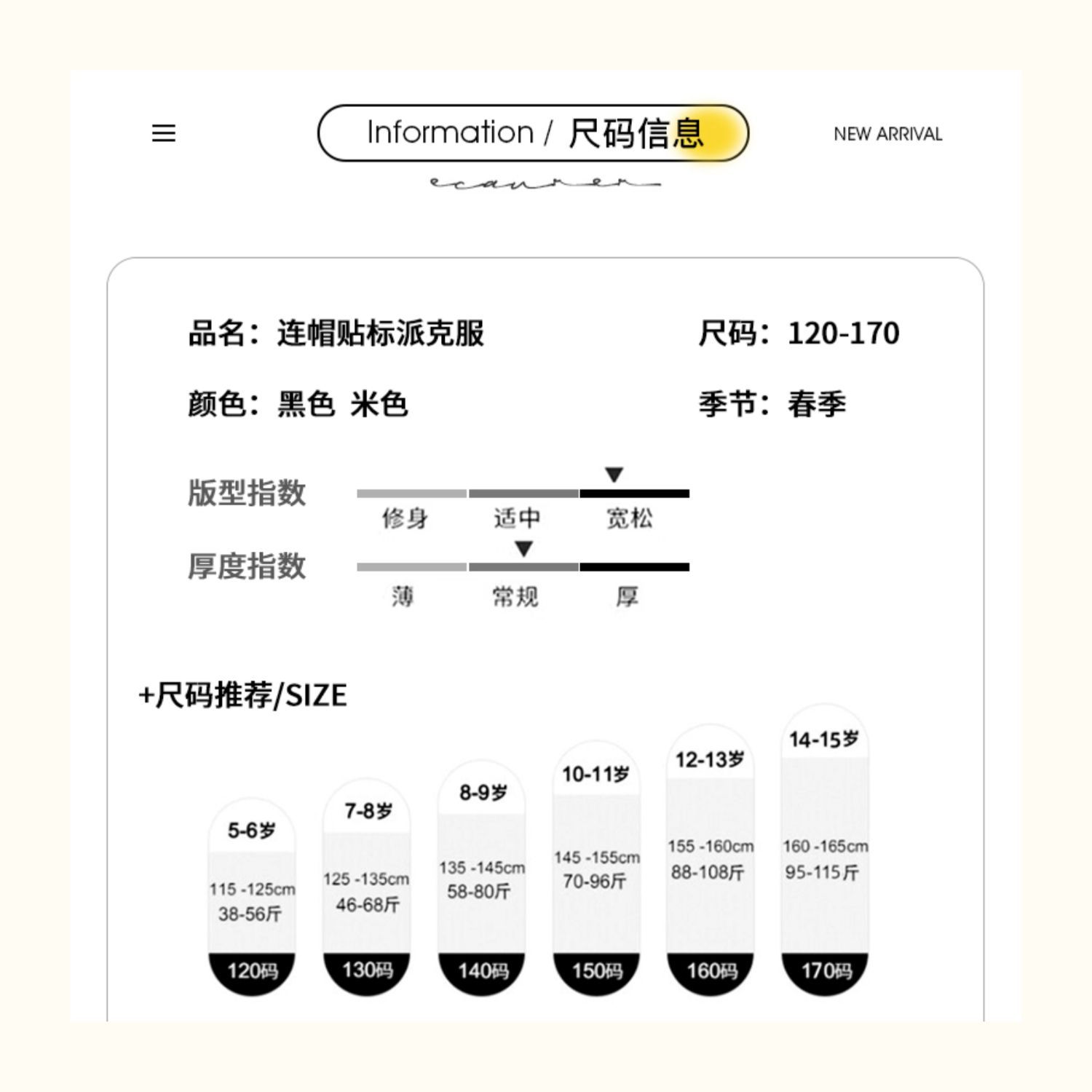 120cm; 130cm; 140cm; 150cm; 160cm; 170cm