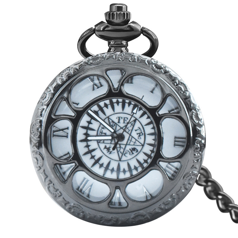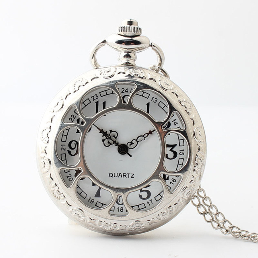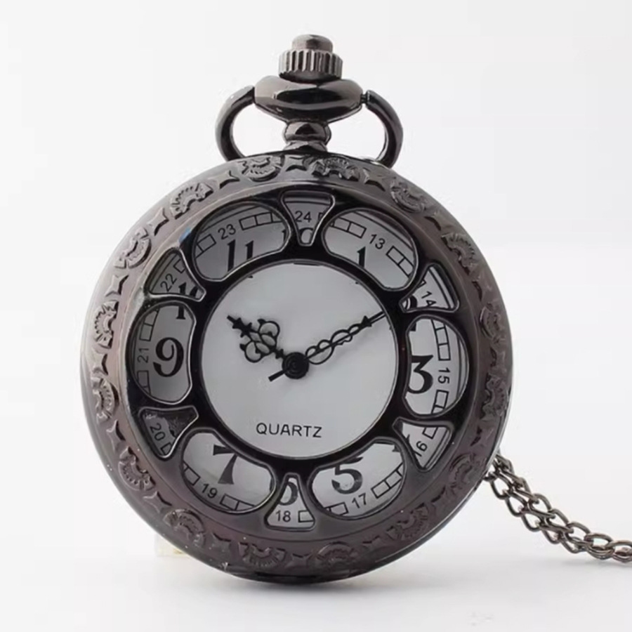 Полые лепестки ожерелья карманные часы Черный дьякон раскладушка настенные часы пара мода кулон кварцевые часы подарки карманные часы оптом