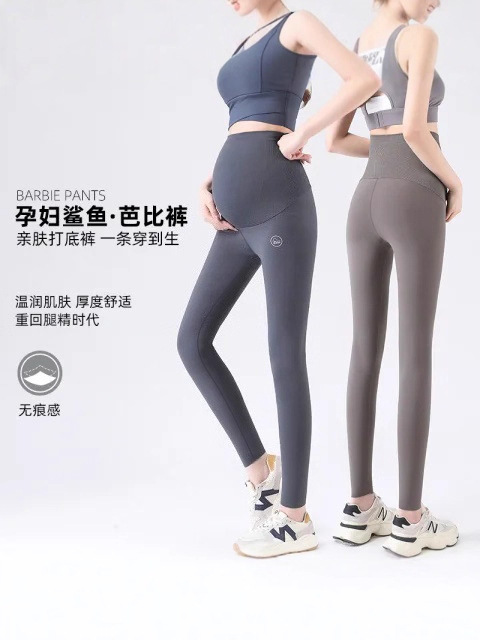 Брюки для беременных, леггинсы с изображением акулы, весенне-осенние флисовые толстые брюки для беременных с высокой талией, утягивающие теплые зимние брюки для йоги