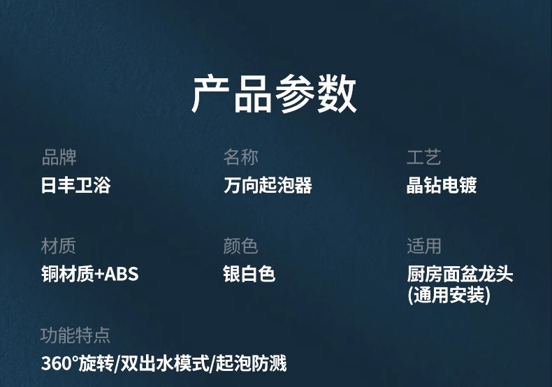 360°Однолинейный одноразовый артефакт для полоскания рта (нержавеющая сталь); 360°Двускоростной артефакт для полоскания рта из одного слова (нержавеющая сталь); 360°Двускоростной артефакт для полоскания рта из одного слова (серый пистолет); 720°Односкоростной артефакт для полоскания рта с семью символами (ABS); 720°Двухскоростной артефакт для полоскания рта из семи символов (нержавеющая сталь); 1080°Односкоростной артефакт для полоскания рта с роботизированной рукой (ABS); 1080°Двухскоростной артефакт для полоскания рта с роботизированной рукой (ABS); Комплект аксессуаров для аэратора смесителя; Универсальный шарнир