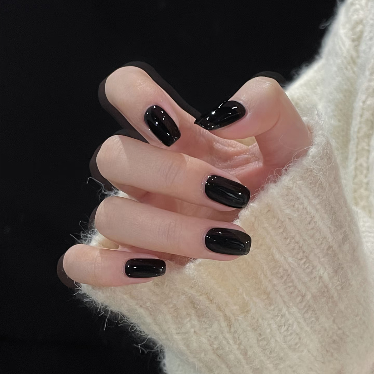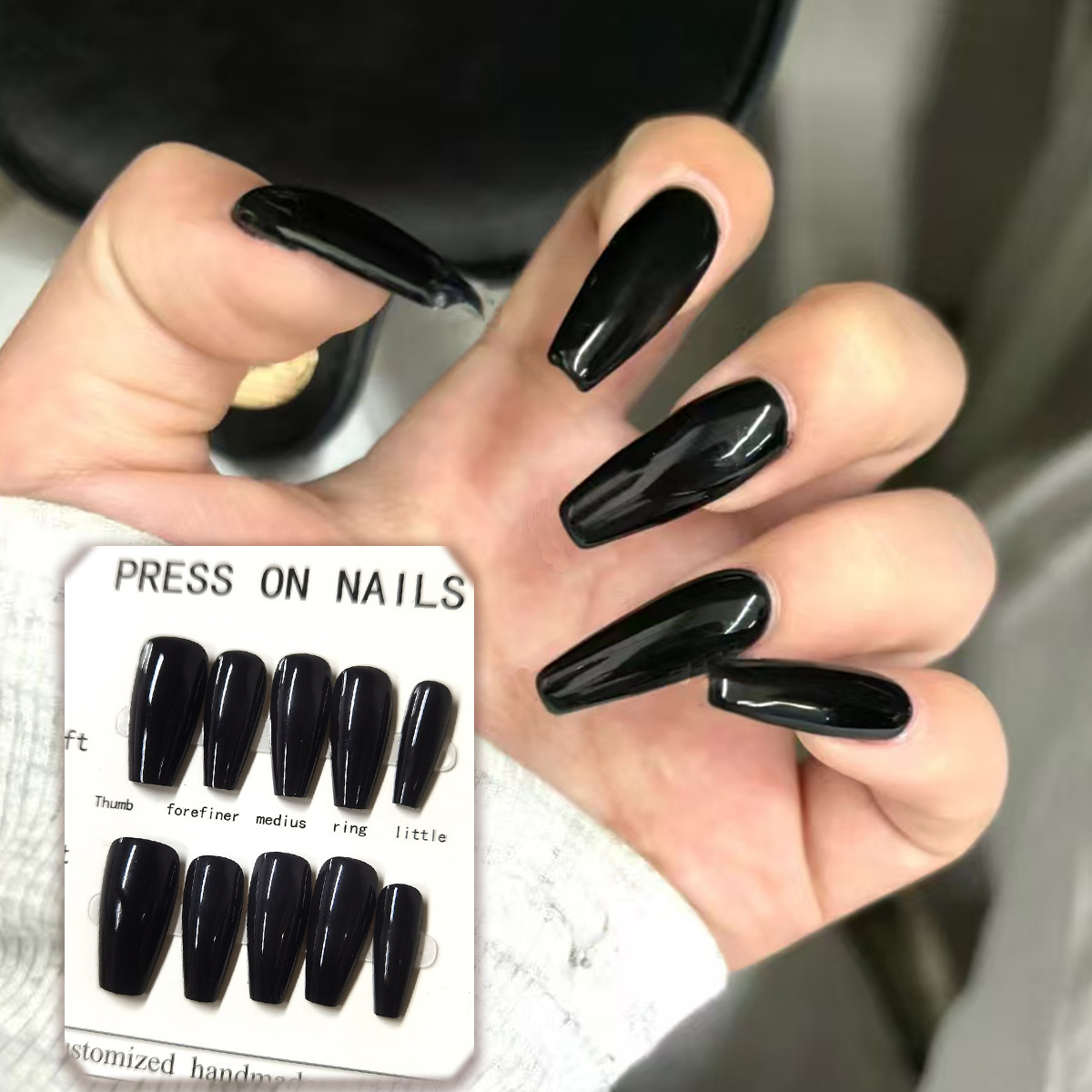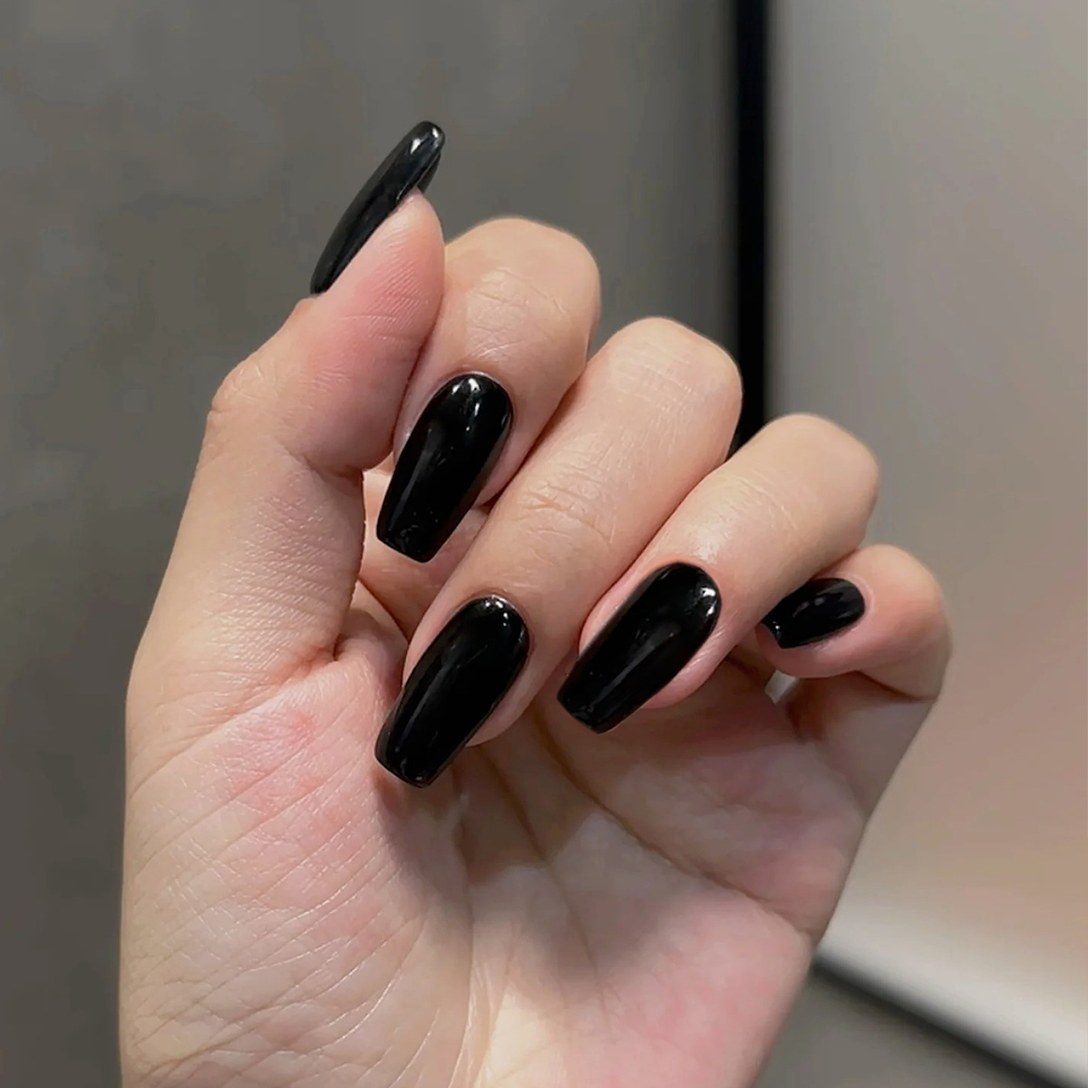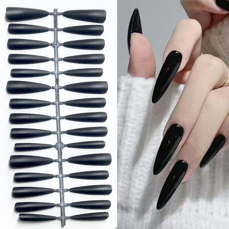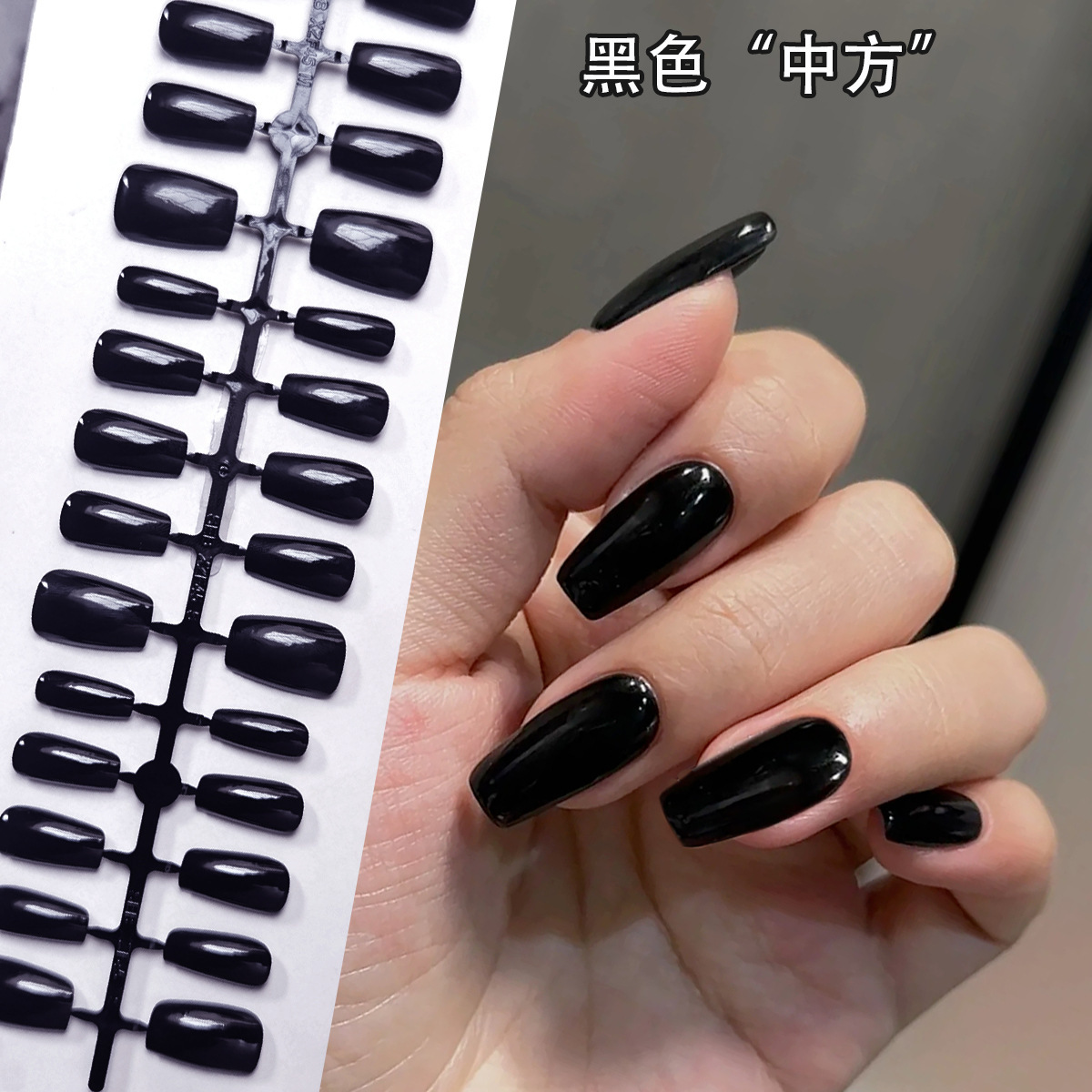 Черные матовые готовые накладные ногти, короткие, 30 штук, ручной работы, разные длины, искусственные ногти