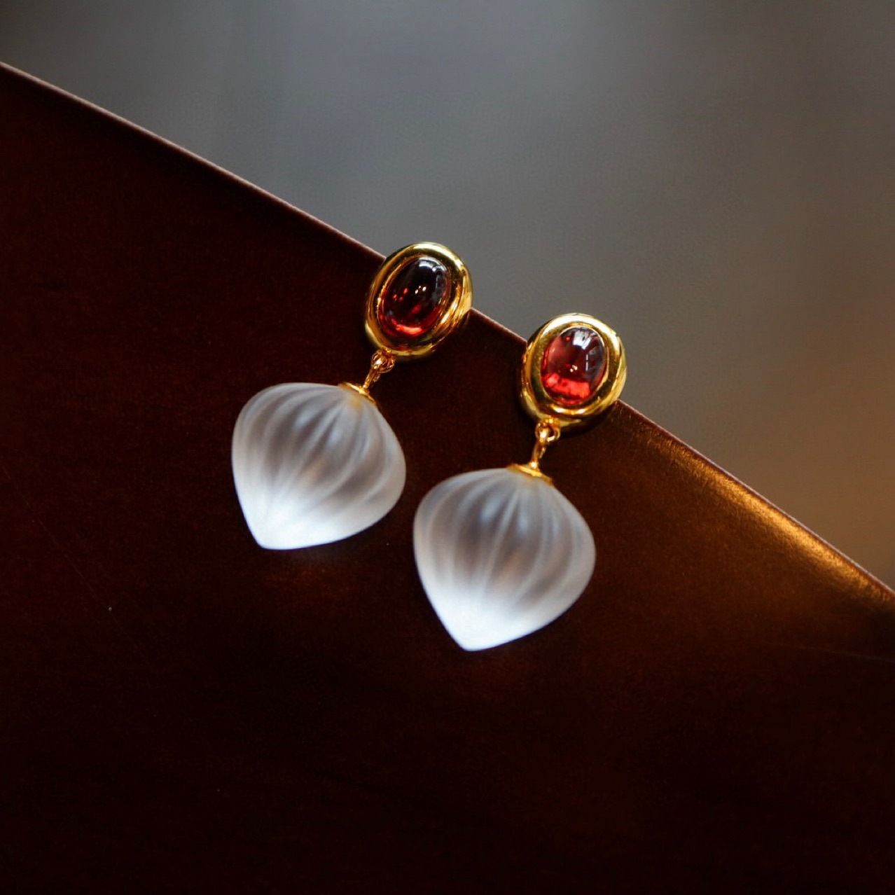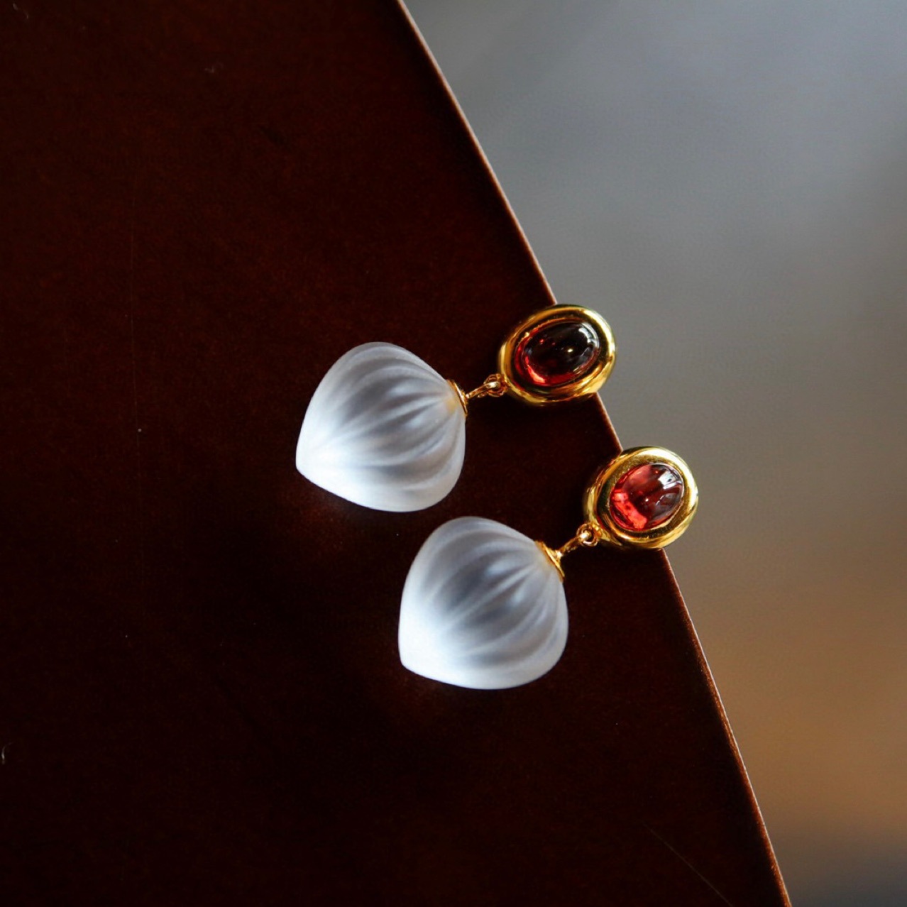 Серьги из натурального белого хрусталя, серебро 925 пробы, инкрустированные красным гранатом, модные и универсальные, матовая текстура.