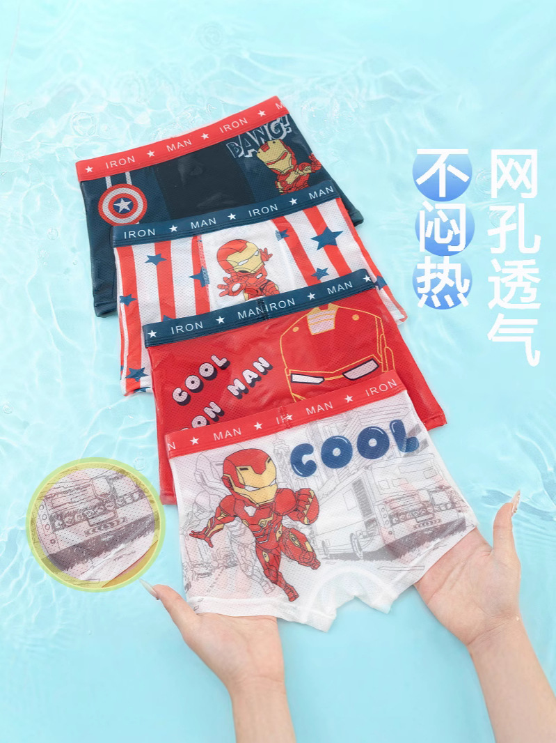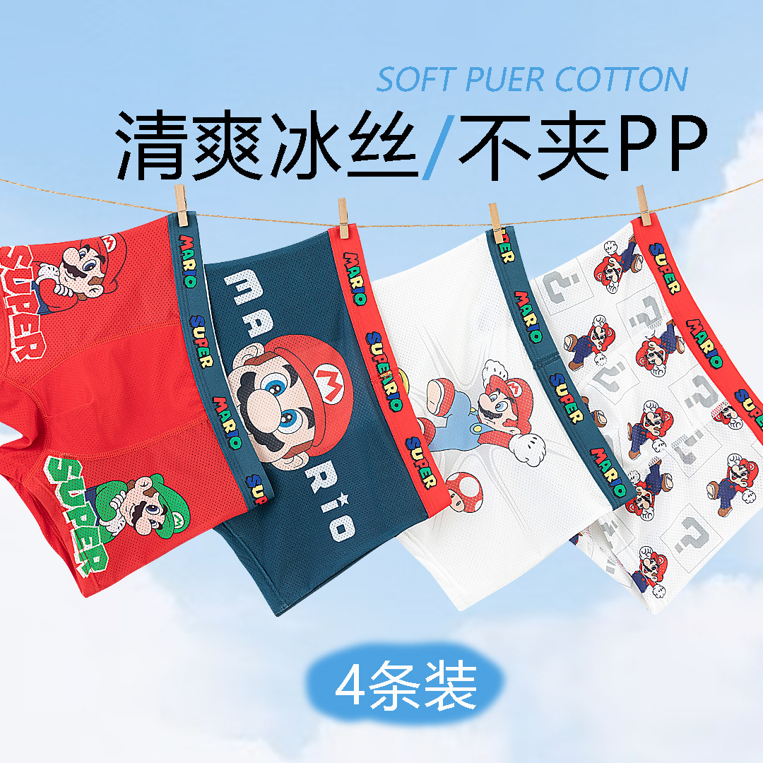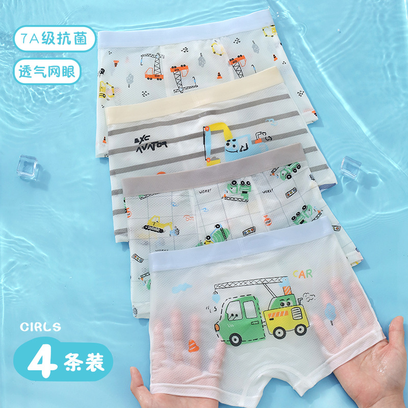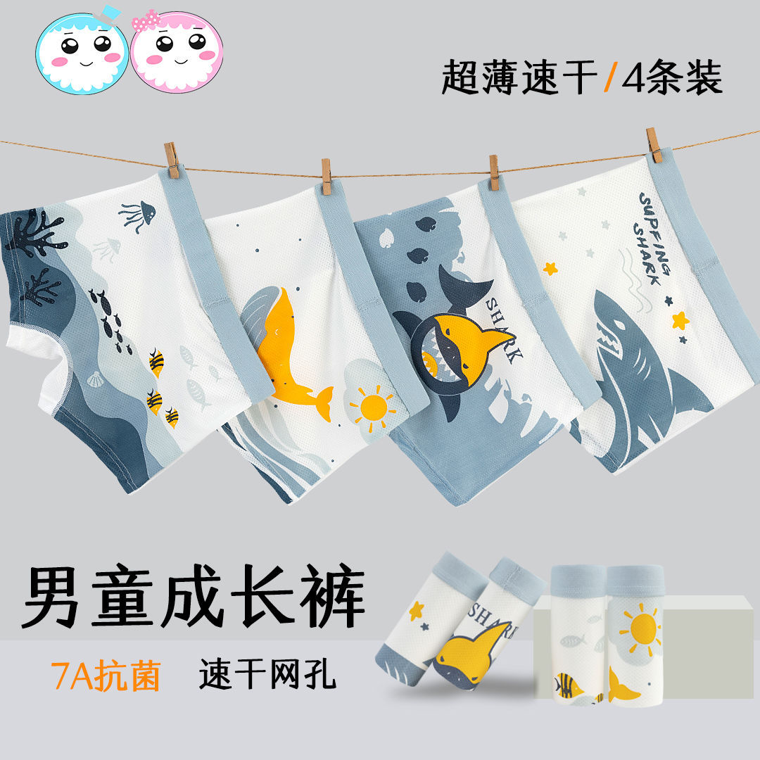 Оптовая продажа летних детских трусиков для мальчиков средней талии и детей среднего возраста тонкие ледяные шелковые антибактериальные дышащие четырехугольные брюки