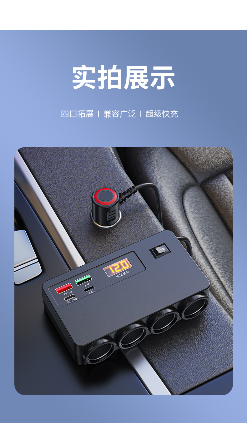 Новый автомобиль перетаскивает четыре прикуривателя с дисплеем напряжения QC3.0 PD30W автомобильный мобильный телефон быстро зарядное устройство