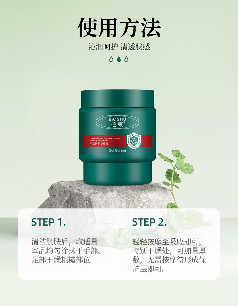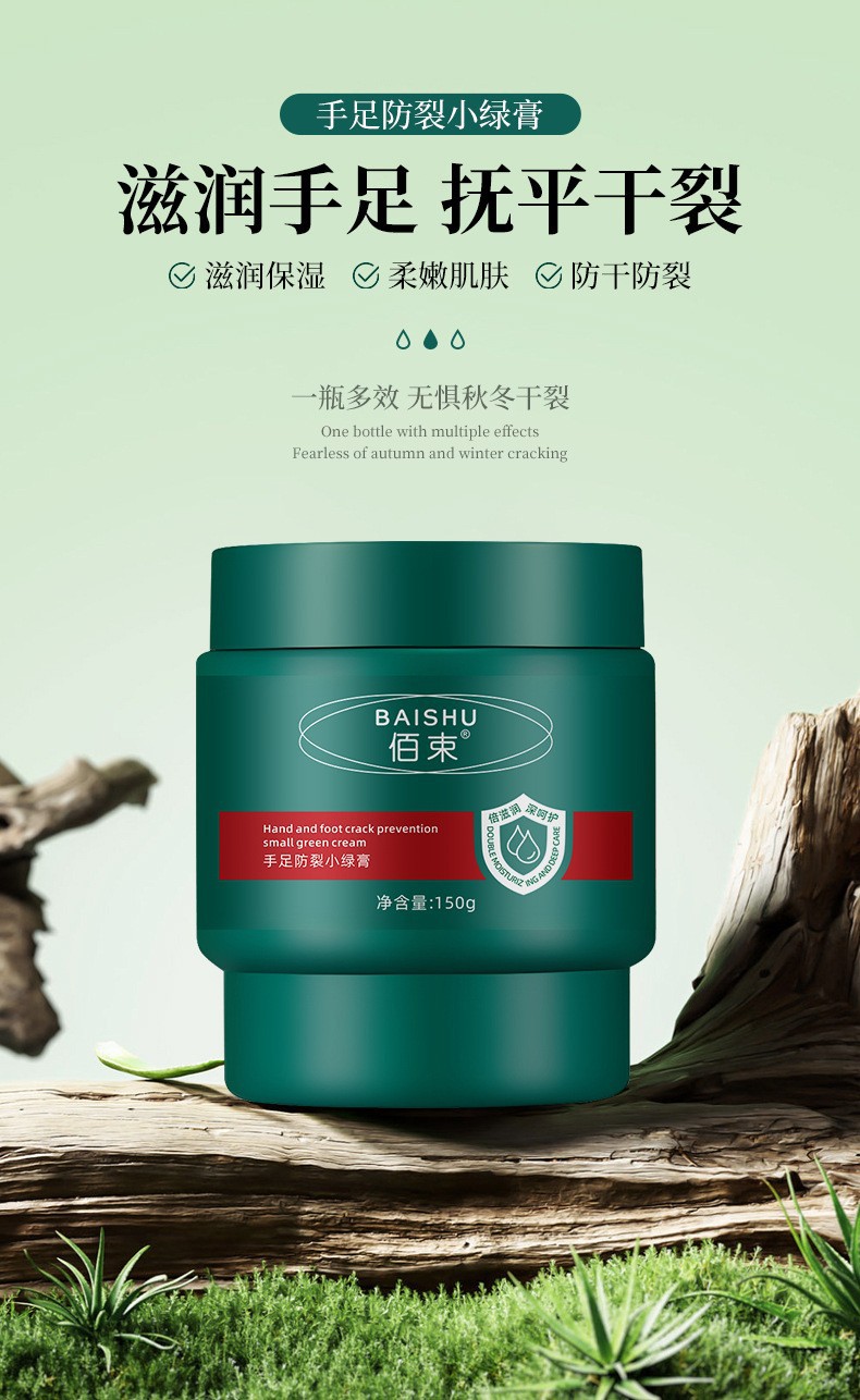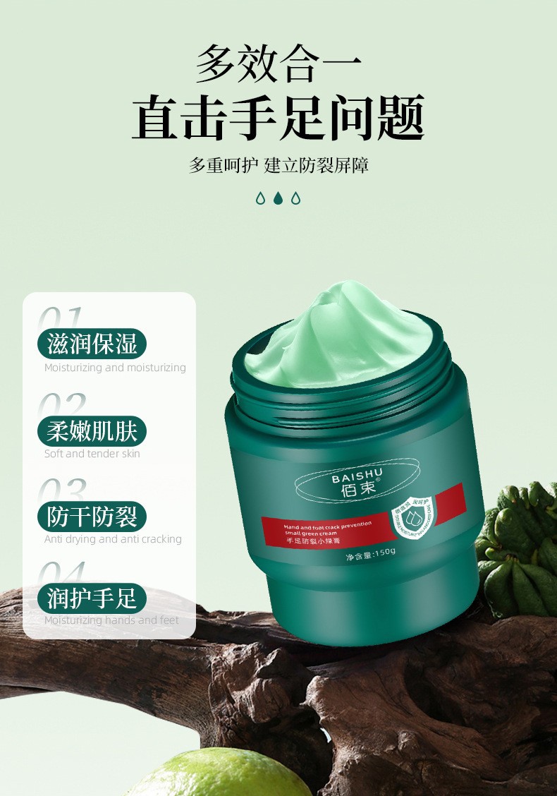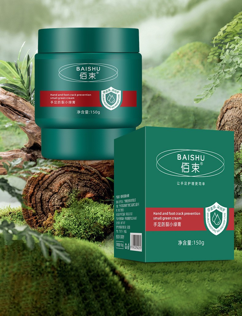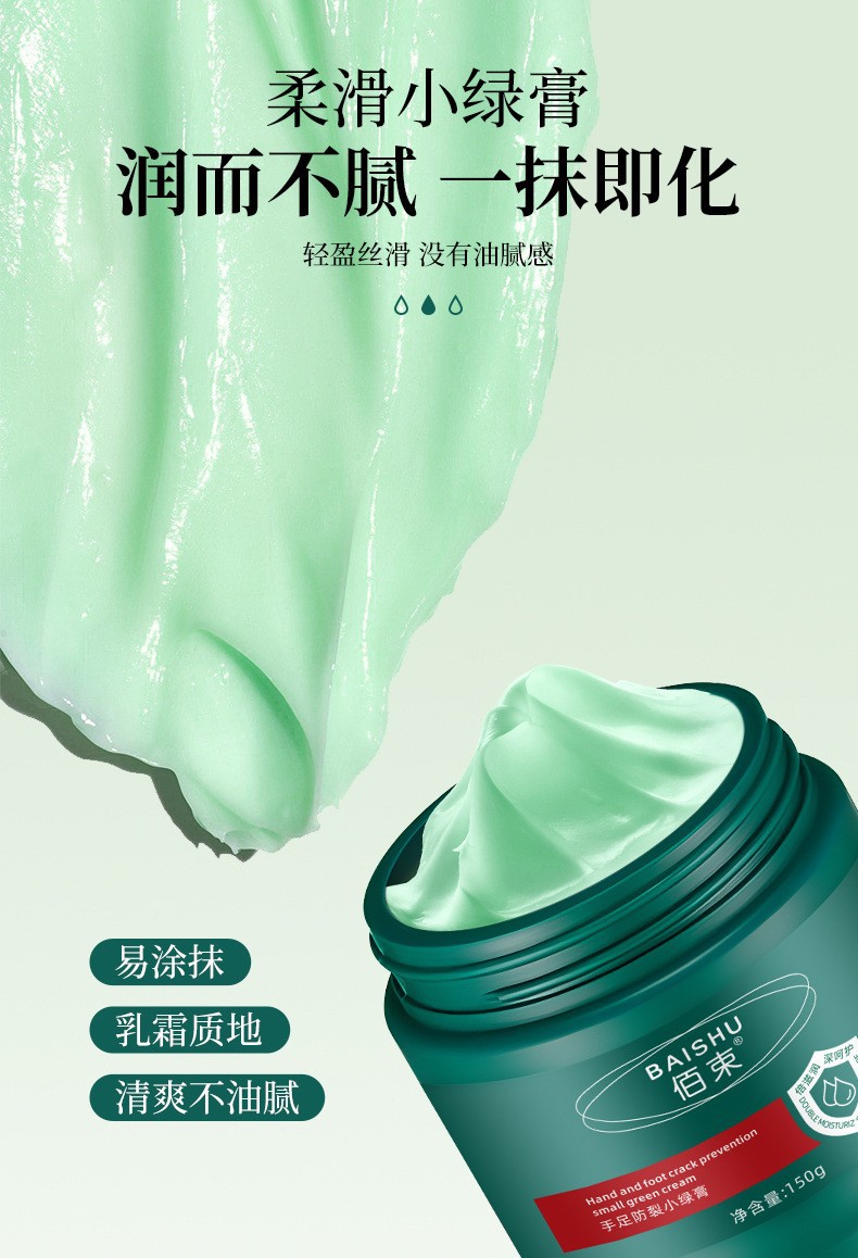 Маленькая зеленая мазь от потрескавшихся рук и ног.