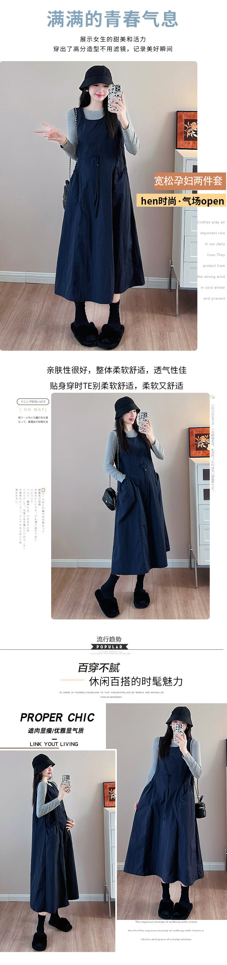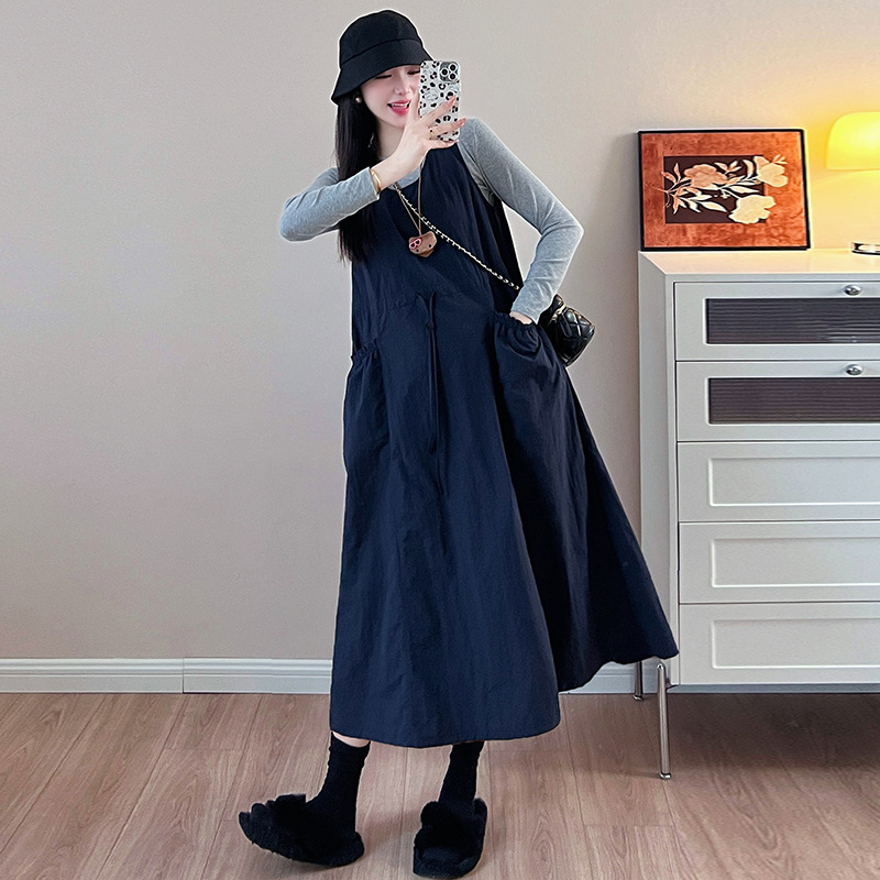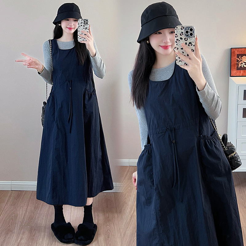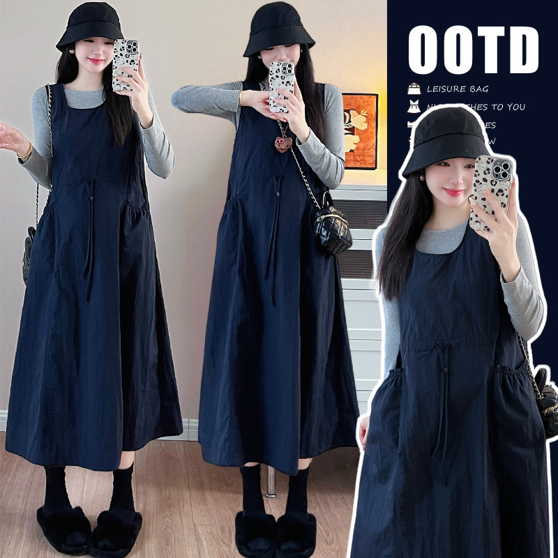 Серая нижняя рубашка; Темно-синий сарафан; Серый низ + сарафан