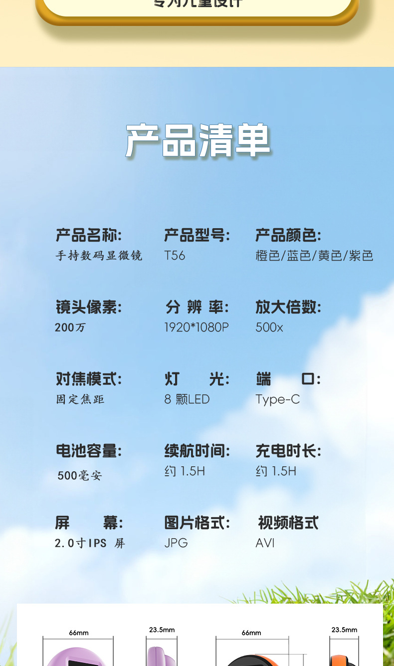 Новый 2,0-дюймовый детский ручной электронный микроскоп промышленный увеличительное стекло