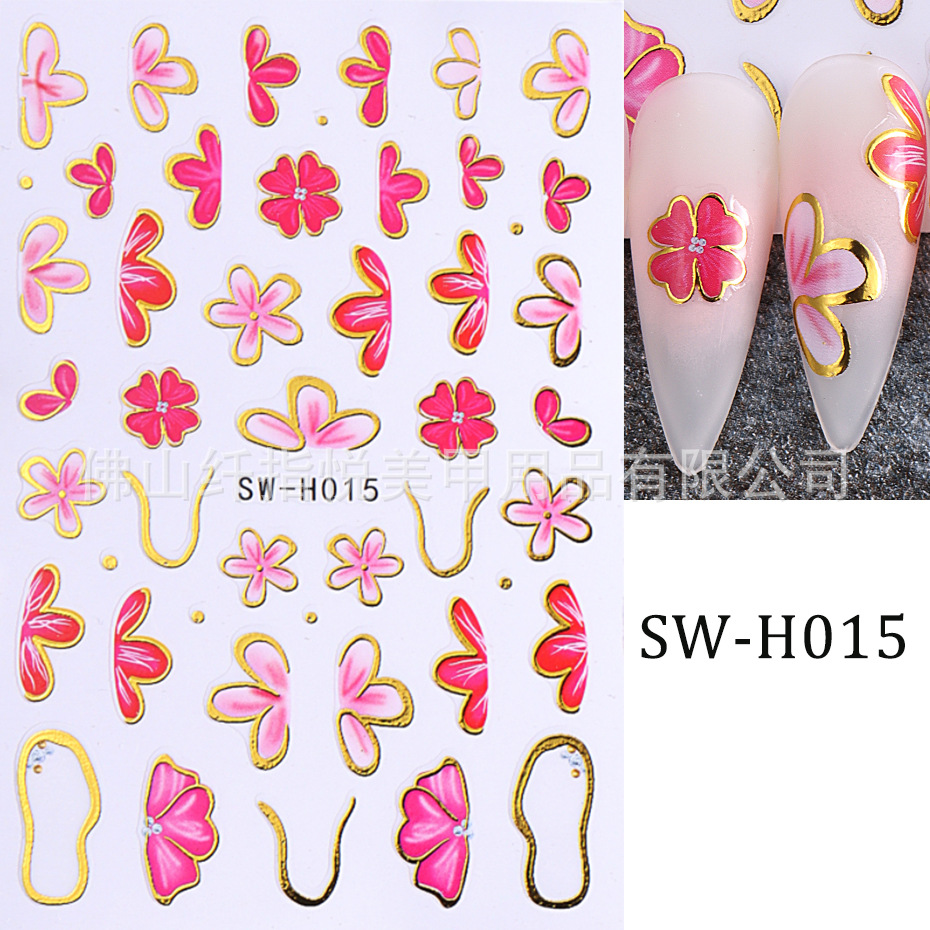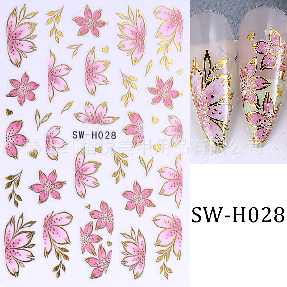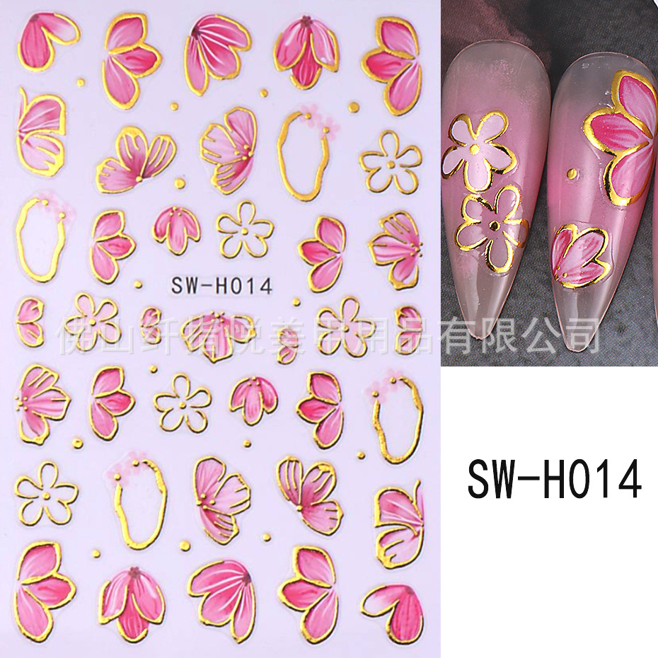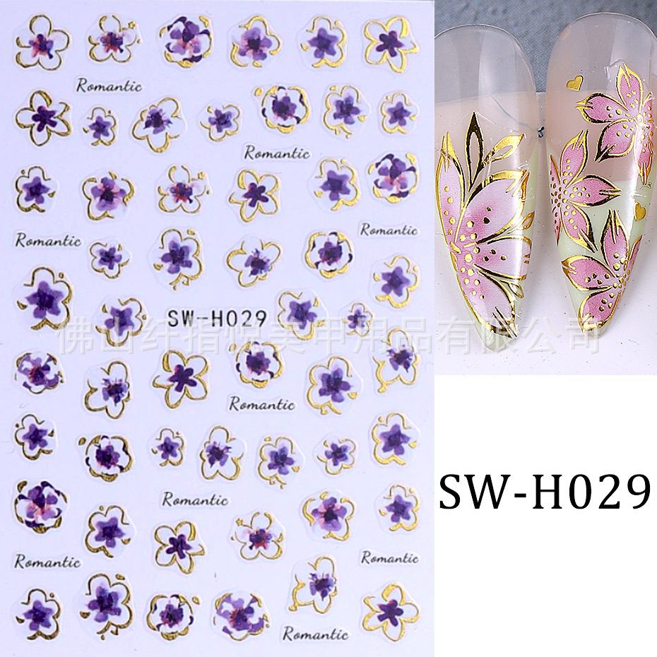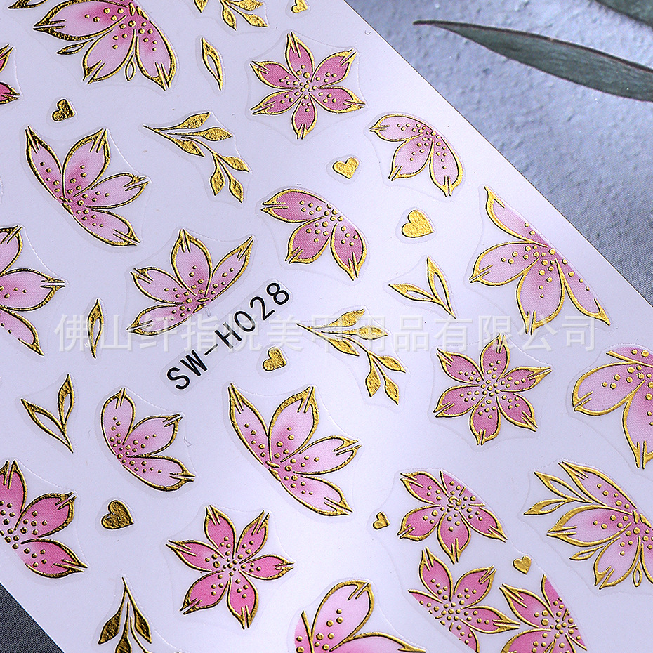 Трансграничные взрывные наклейки для ногтей оптом ins позолоченные розовые полупрозрачные лепестки фиолетовые цветы весенние наклейки для ногтей