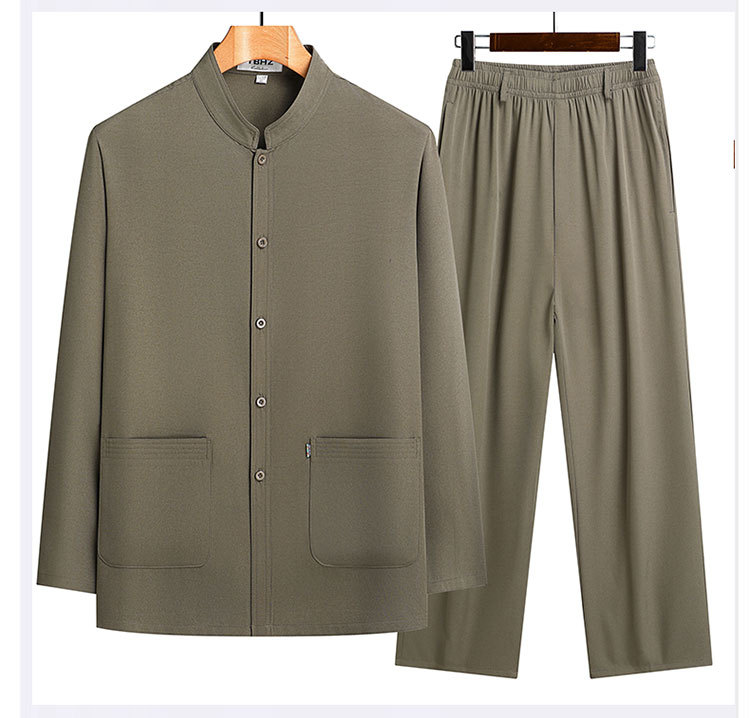 Набор из двух частей папа мужской китайский стиль рубашка с короткими рукавами повседневная летняя дедушка костюм кардиган рубашка мульти карманы