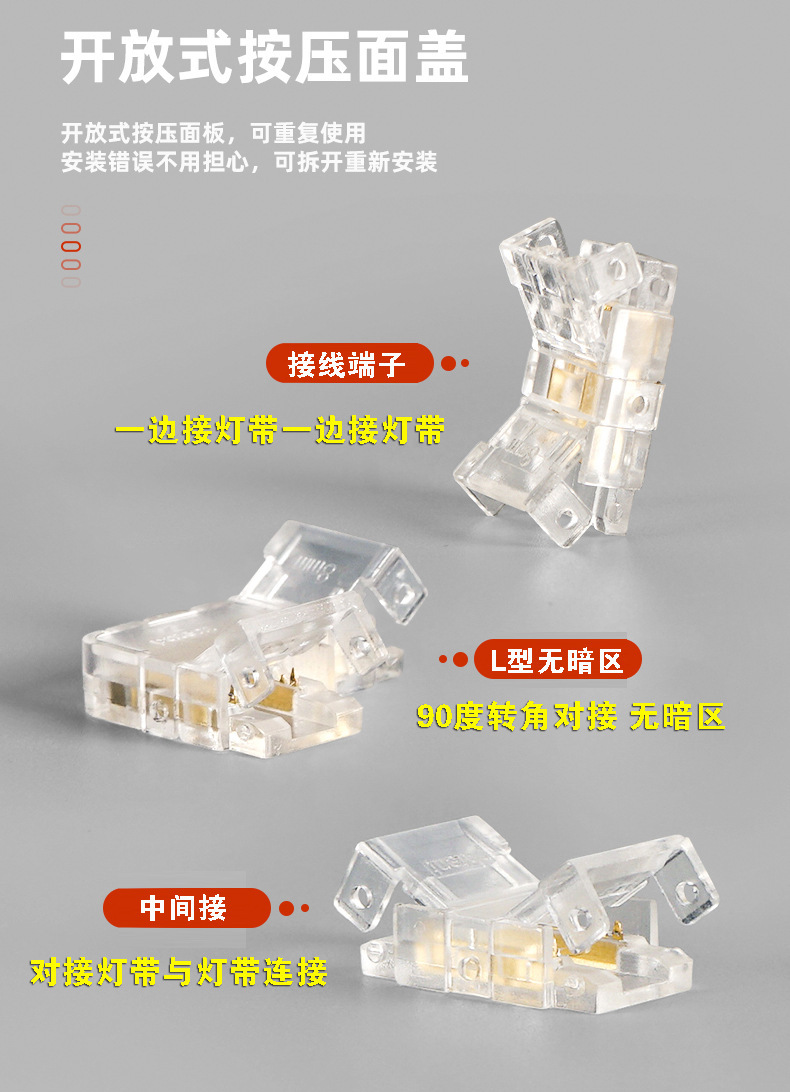 Коб-лампа бесшовное соединение 5/8/10mm угол L низкого давления быстрая застежка промежуточная стыковка без темной зоны клеммы