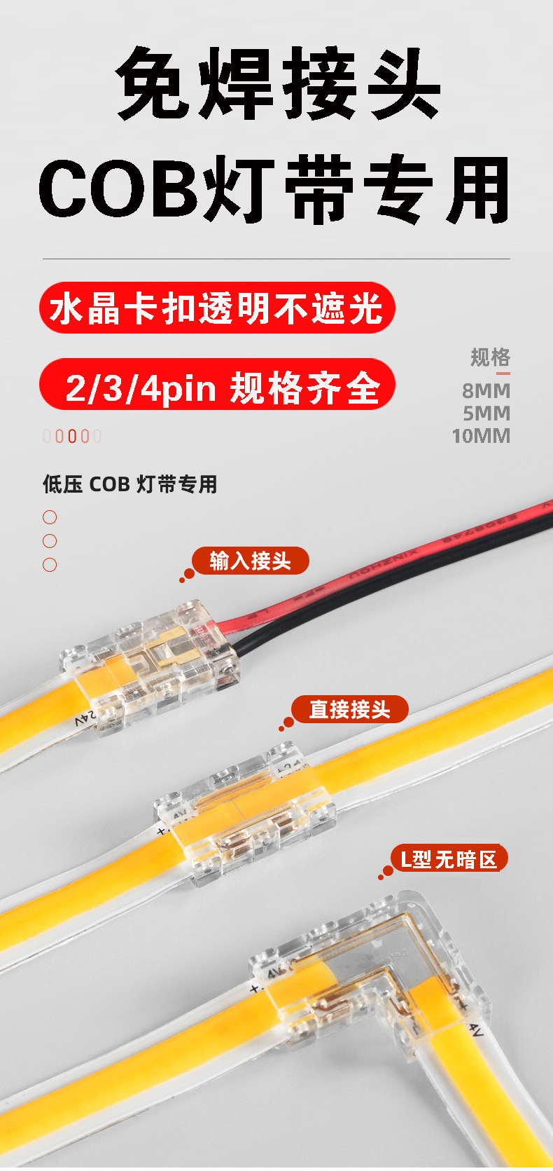 Световая полоса COB шириной 8 мм, кристалл с одной головкой и проводом; Световая полоса COB шириной 8 мм, кристалл с двойной головкой и проводом; Световая полоса COB шириной 8 мм, кристалл без промежуточного соединения проводов; Световая полоса COB шириной 10 мм, кристалл с одной головкой и проводом; Световая полоса COB шириной 10 мм, кристалл с двойной головкой и проводом; Световая лента COB шириной 10 мм, кристалл без промежуточного соединения проводов; Световая полоса COB шириной 5 мм, кристалл с одной головкой и проводом; Световая полоса COB шириной 5 мм, кристалл с двойной головкой и проводом; Световая полоса COB шириной 5 мм, кристалл без промежуточного соединения проводов; 2835 световая полоса шириной 8 мм, кристалл с одной головкой и проводом; 2835 световая полоса шириной 8 мм, кристалл с двойной головкой и проводом; 2835 световая полоса шириной 8 мм, кристалл без промежуточного соединения проводов; 2835 световая полоса шириной 10 мм, кристалл с одной головкой и проводом; 2835 световая полоса шириной 10 мм, кристалл с двойной головкой и проводом; 2835 световая полоса шириной 10 мм, кристалл без промежуточного провода; Световая полоса 5 мм COB кристалл встроенный угол L; Световая полоса 8 мм COB кристалл встроенный угол L; Световая полоса 10 мм COB кристалл встроенный угол L