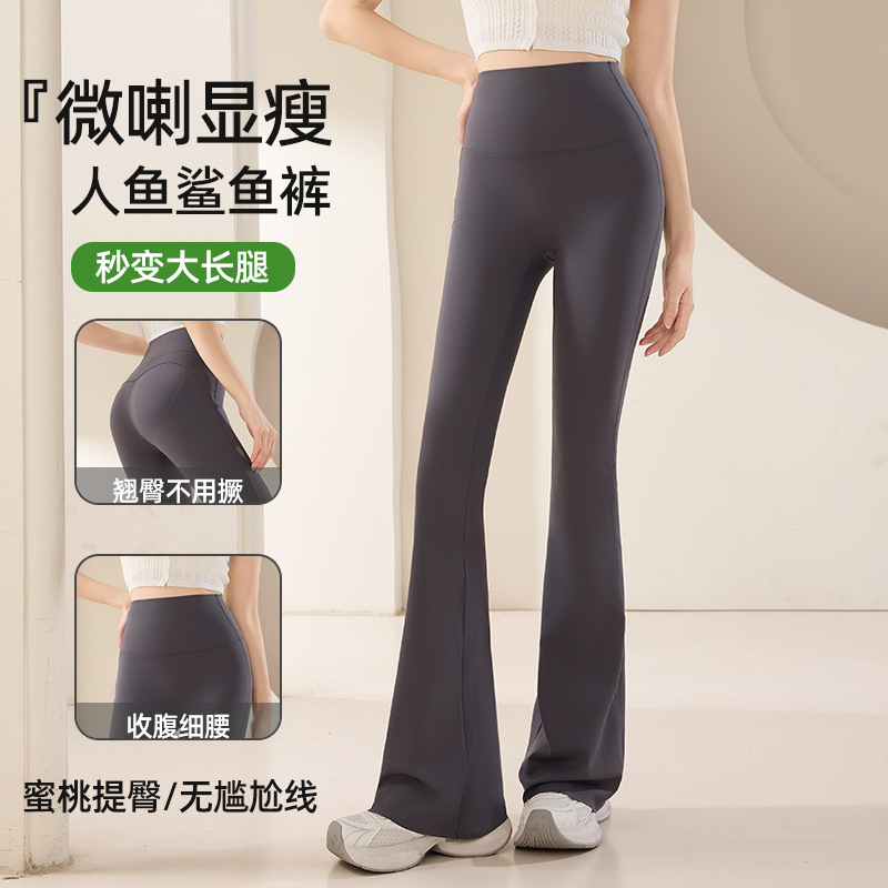 Женские расклешенные брюки для йоги с завышенной талией, поднимающие бедра, облегающие, эластичная верхняя одежда для маленьких людей, спортивные и фитнес-брюки-клеш с акулой.