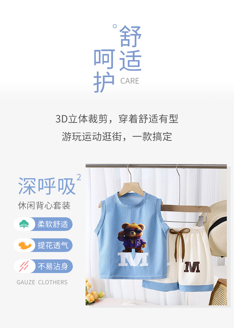 Новый набор детских жилетов детские шорты без рукавов набор из двух частей Летний тонкий набор модных жилетов