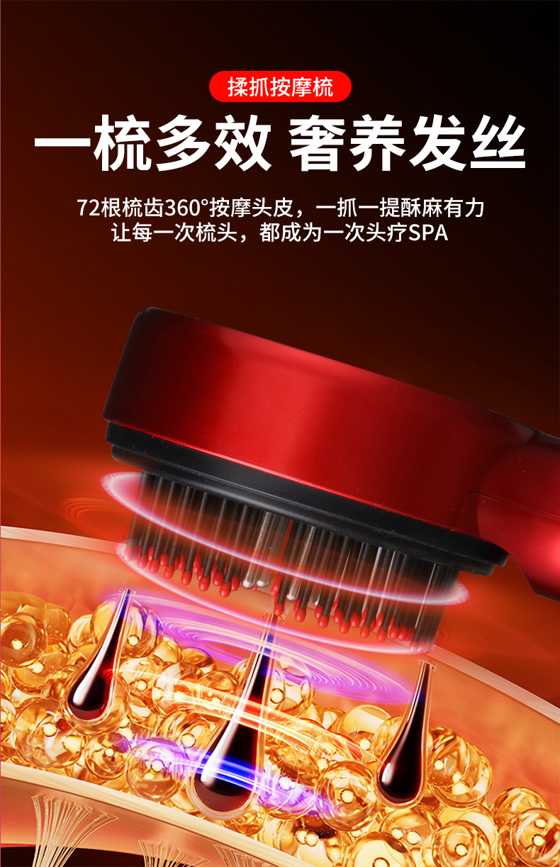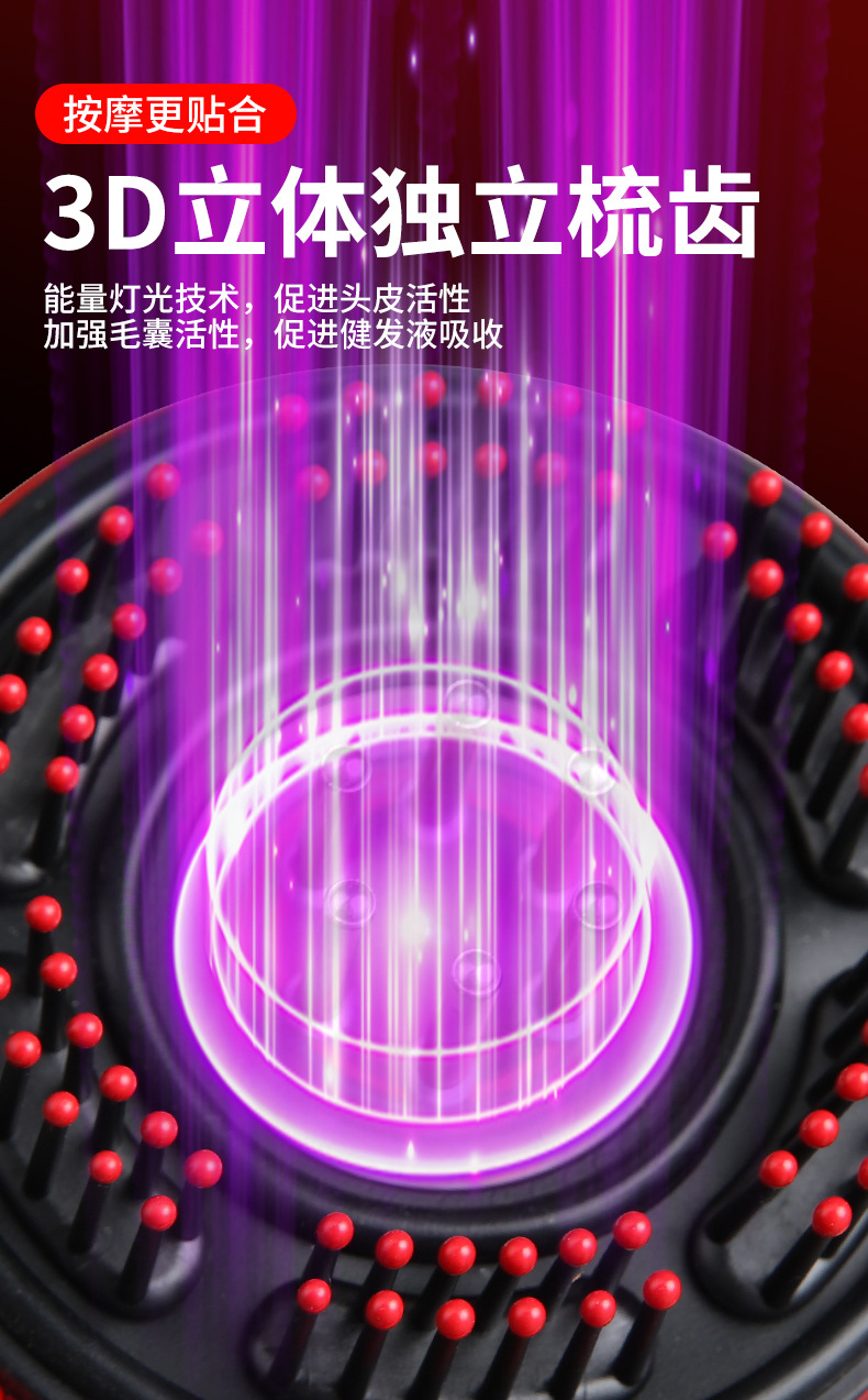 Электрическая расческа для массажа кожи головы с красным светом для роста волос, против выпадения волос, аппликатор эфирного масла для головы.