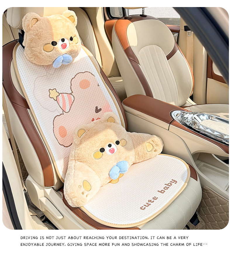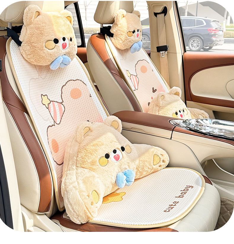 Новинка 2025: универсальная подушка для автомобильного сиденья на все сезоны, чехол для сиденья автомобиля с милым медведем, аксессуар для интерьера автомобиля
