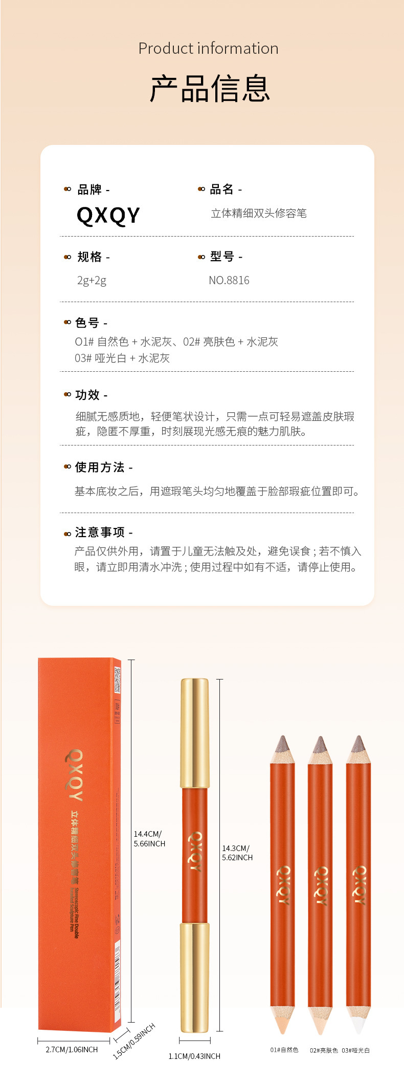 QXQY стерео тонкая двусторонняя контурная ручка, высокоглянцевая, осветляющая, универсальная контурная ручка для длительного макияжа, хайлайтер для изменения теней на носу