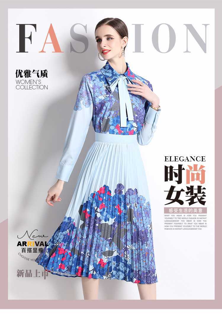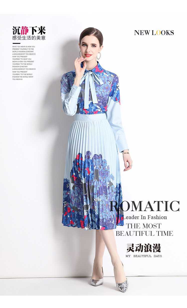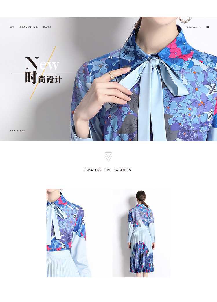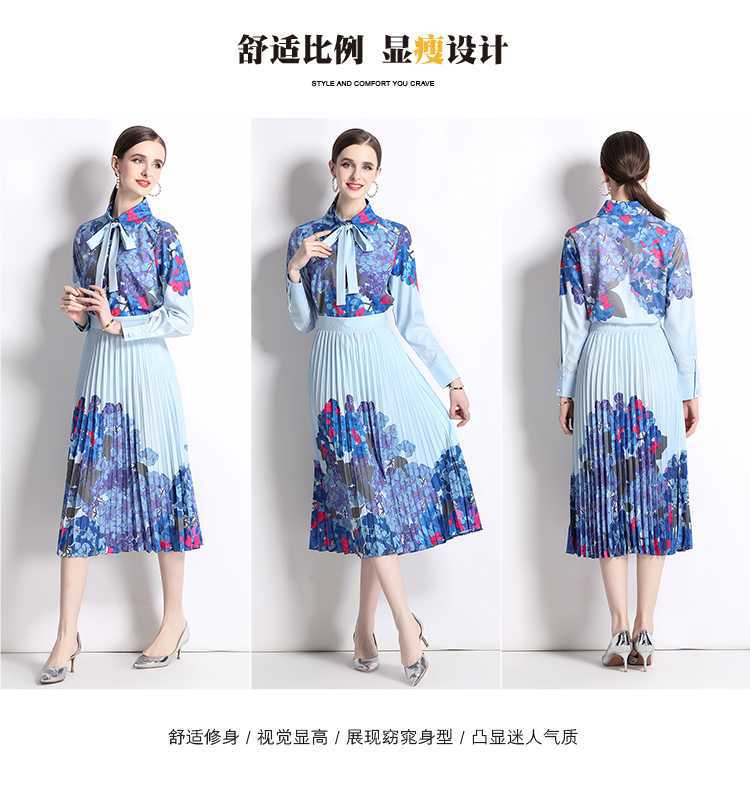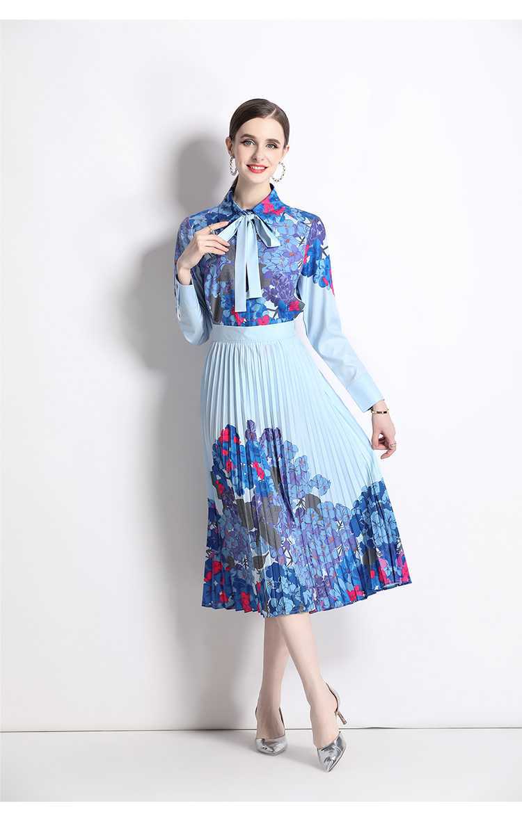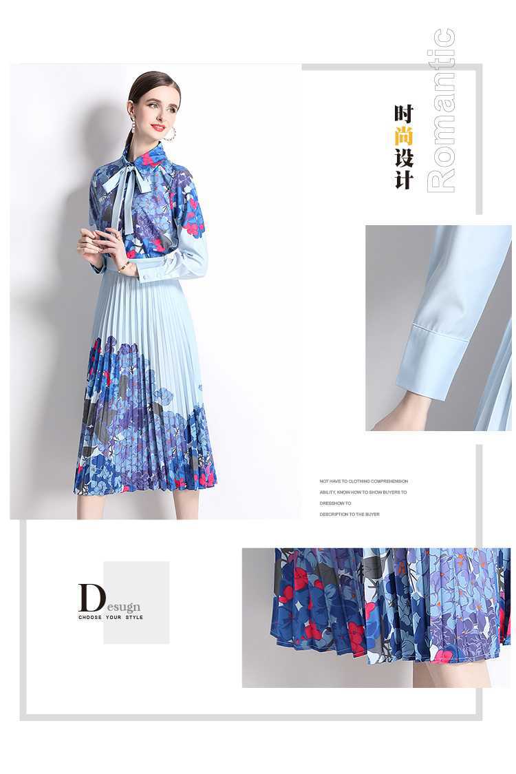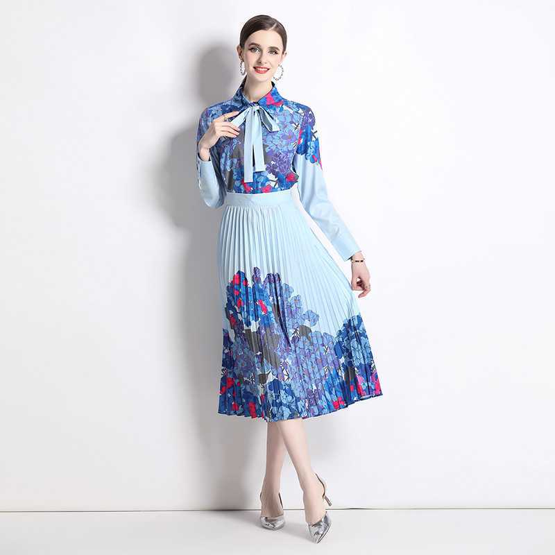 Реальная стрельба темно-синий полный набор гортензии модный праздничный принт Polo лацканная рубашка романтическая плиссированная юбка
