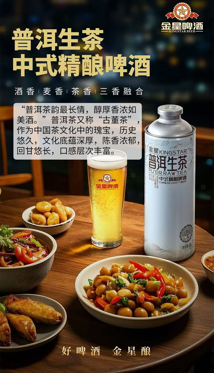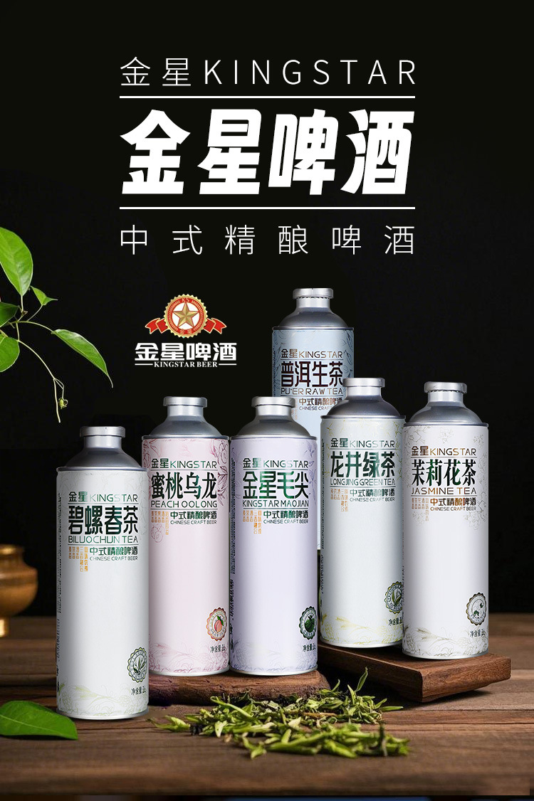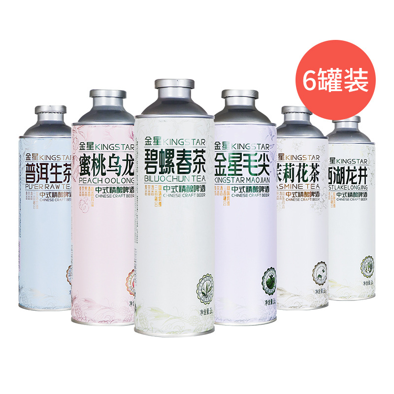 Новинка: Пиво Golden Star Craft Tea Beer, 1л*6 банок, с наполнителем из Билуочунь, Маоцзянь, Жасмин, Пуэр, Лунцзин, Консервированный гипсофила