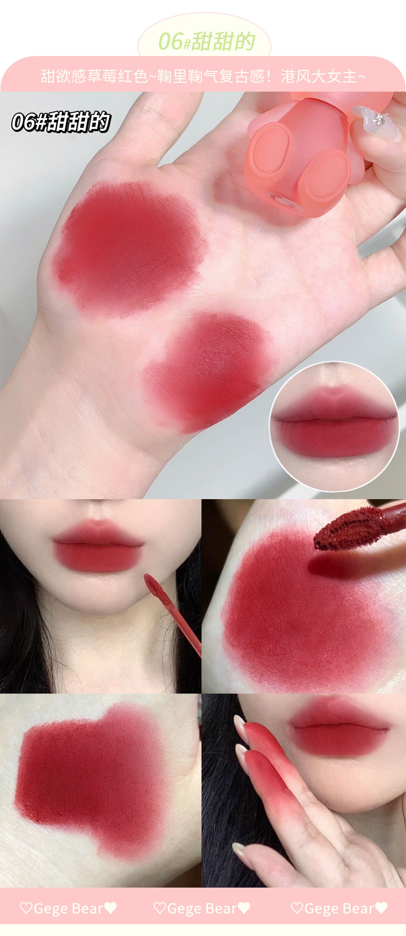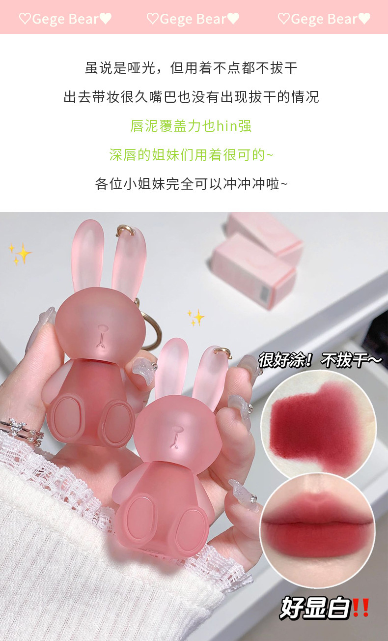 Gege bear Gogo маленький медвежонок брелок кролик губная грязь с низкой насыщенностью матовая поверхность, псевдо-белая глазурь для губ