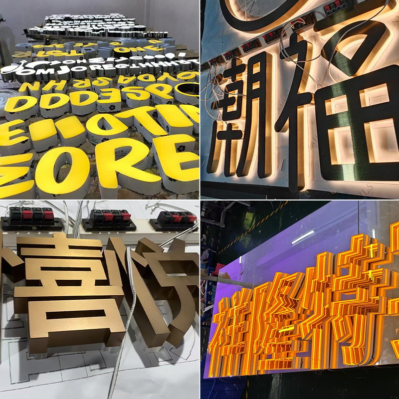 3D светящиеся буквы из нержавеющей стали, светящиеся буквы из акрила, мини-буквы для световых коробов, наружные вывески для дверей, таблички, рекламные вывески, индивидуальное изготовление.