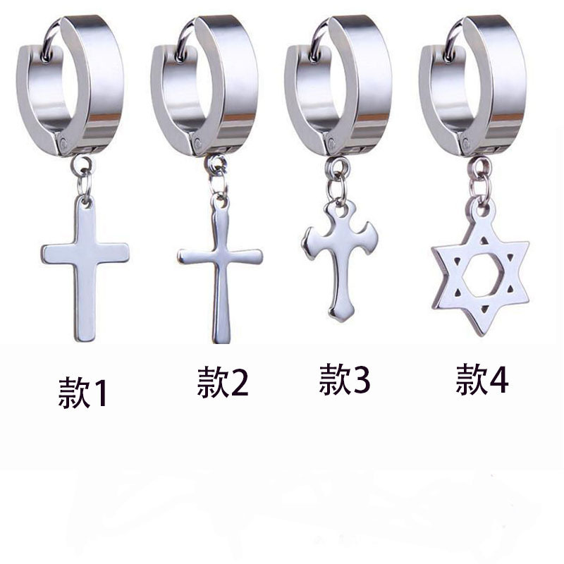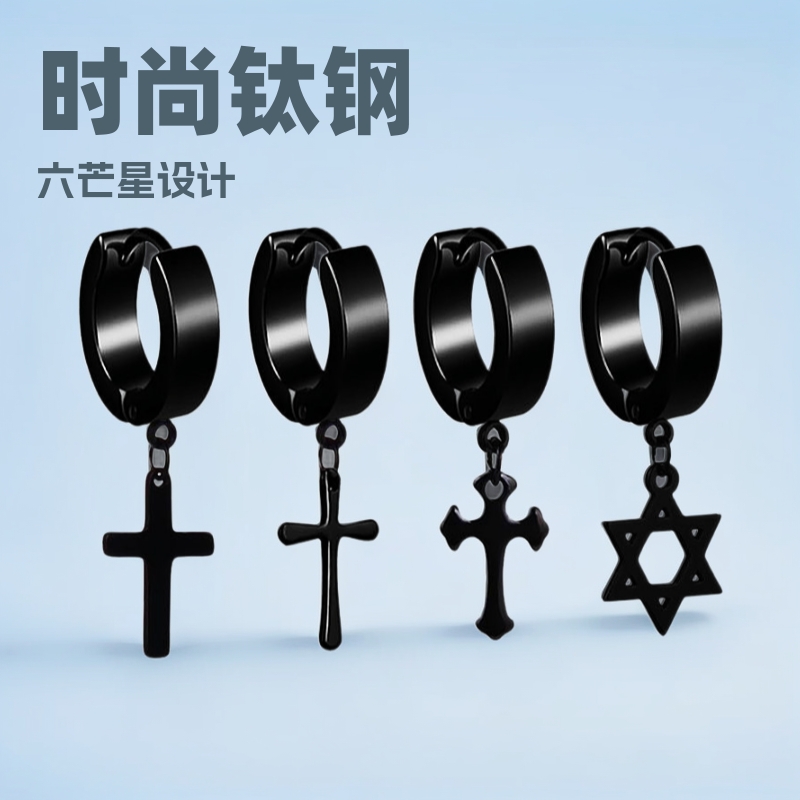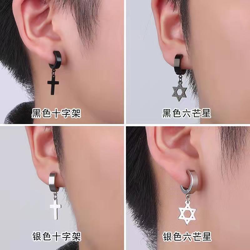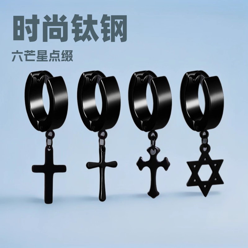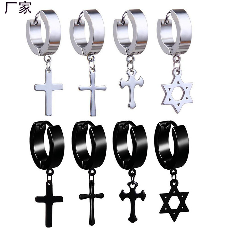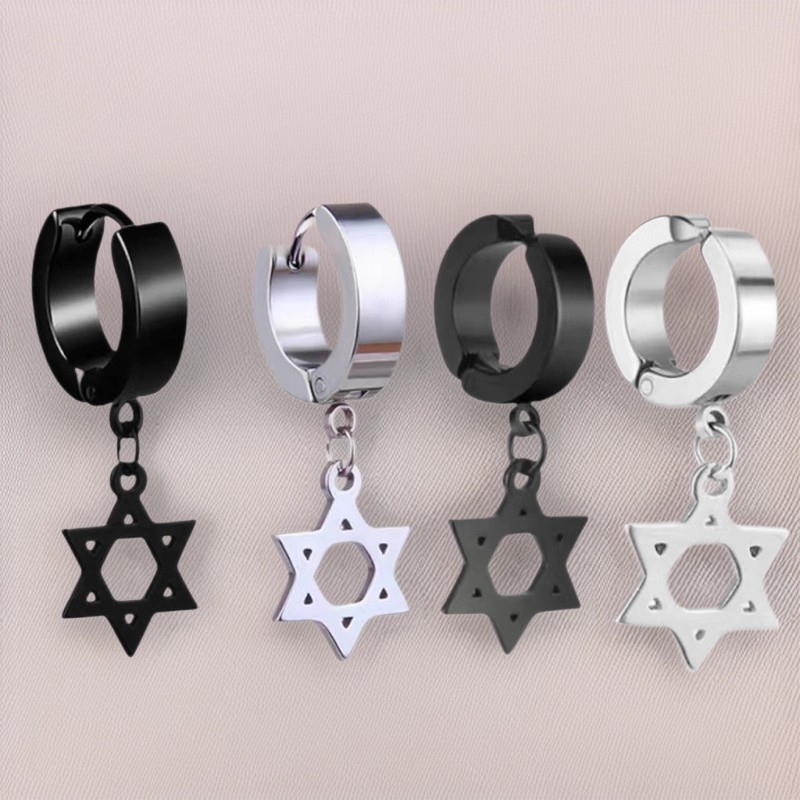 Трансграничные популярные мужские серьги Amazon с шестиконечной звездой, серьги из титановой стали в стиле панк, комплект серег из нержавеющей стали