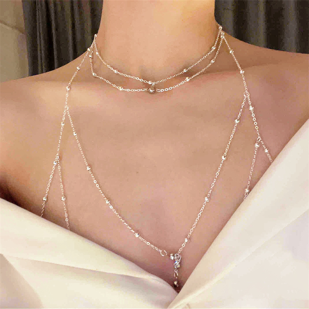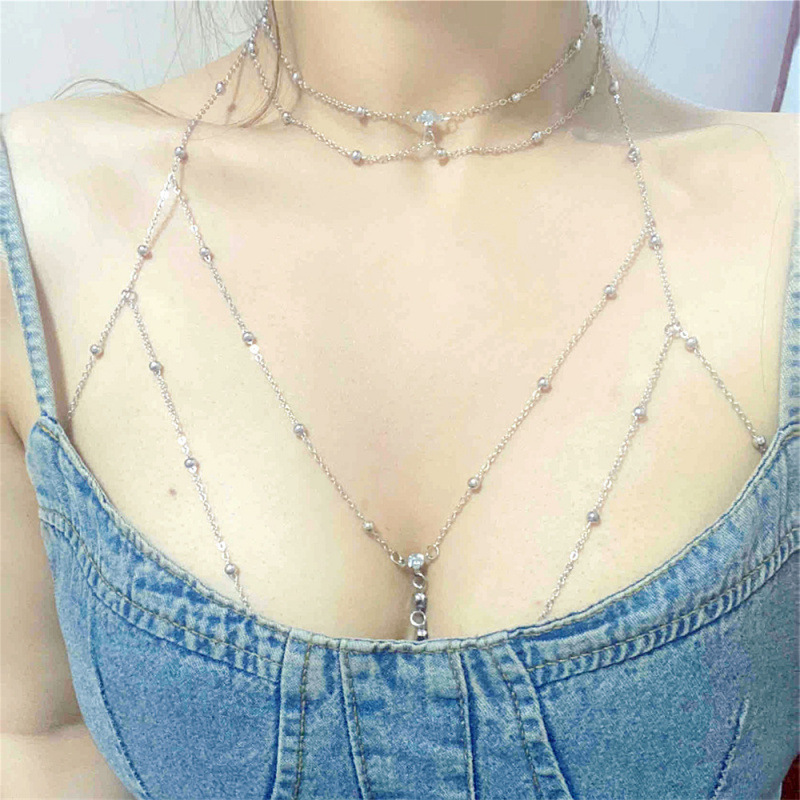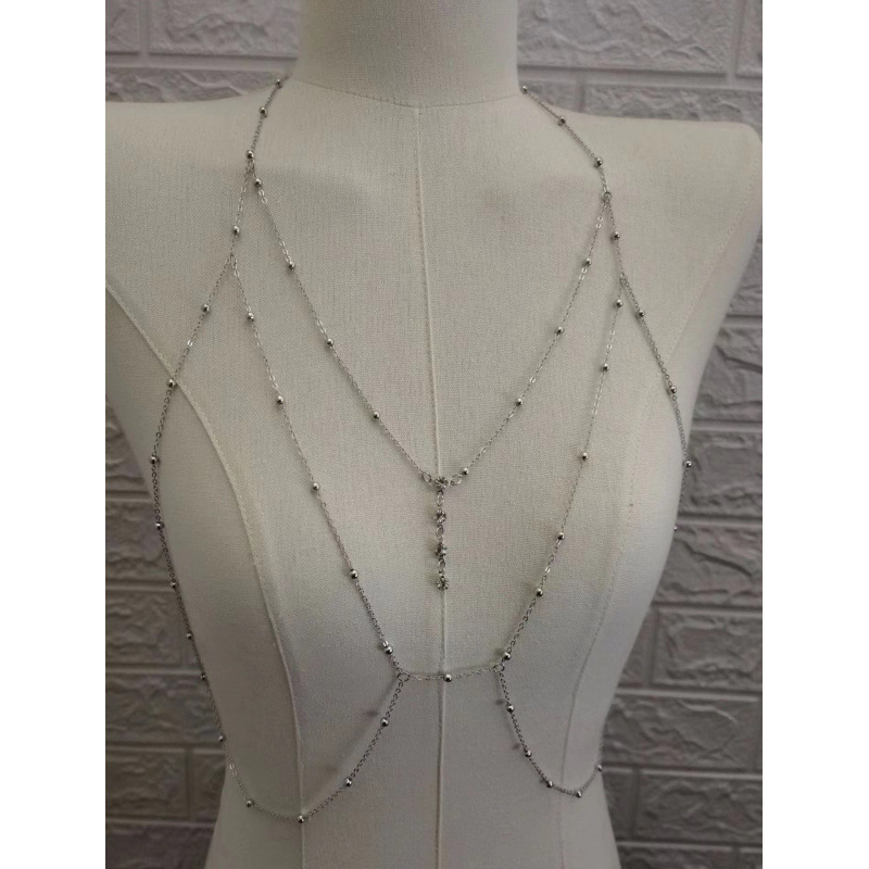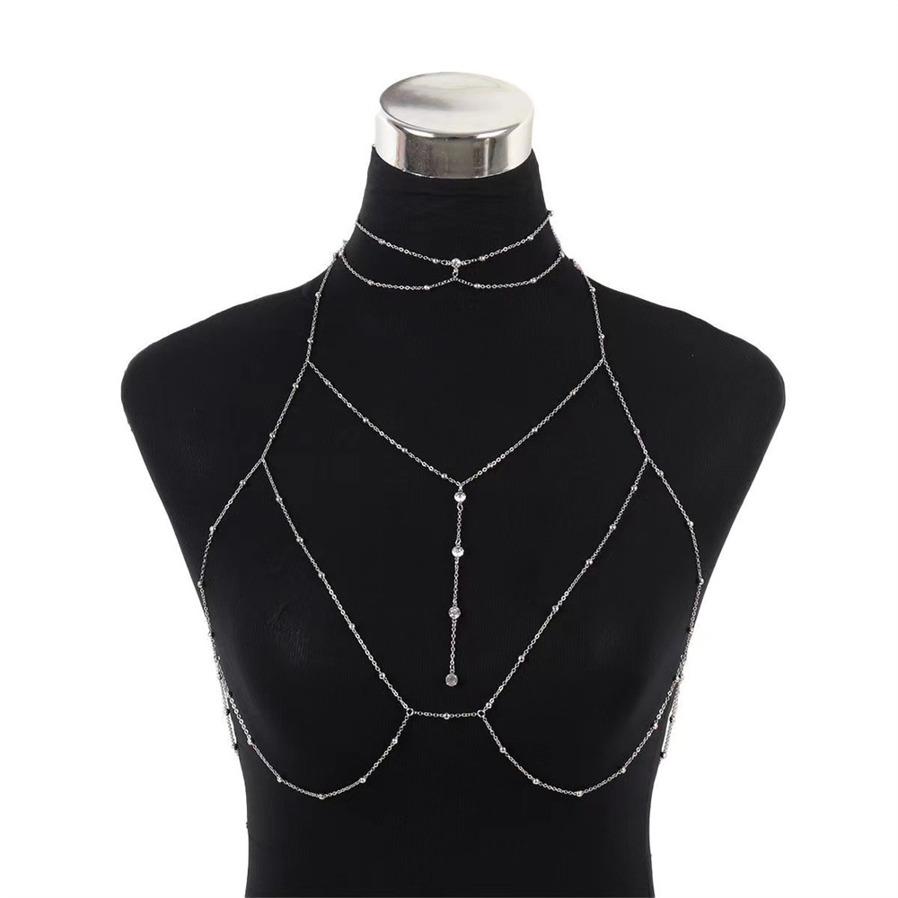 Горячая горячая девушка сексуальная титановая стальная цепь для тела, украшение цепи на груди, блестящий бриллиант, кулон, кисточка, ожерелье, женщина в прямом эфире