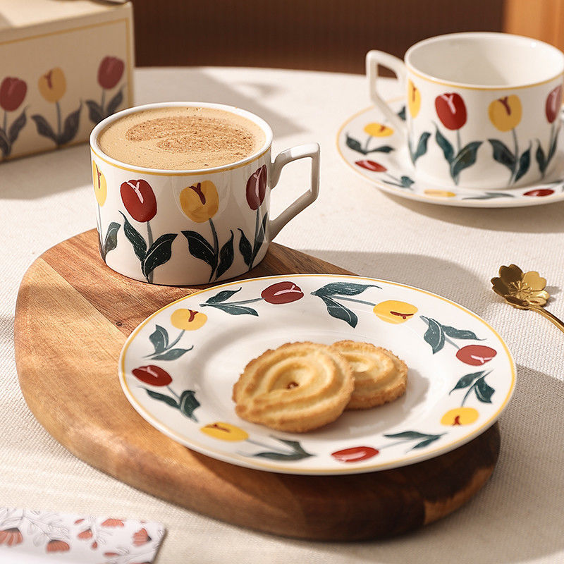 Французский кофейный стакан набор чашек чашек высокого уровня кофе чашка ниша керамическая чашка воды 2024 новая женская подарочная коробка