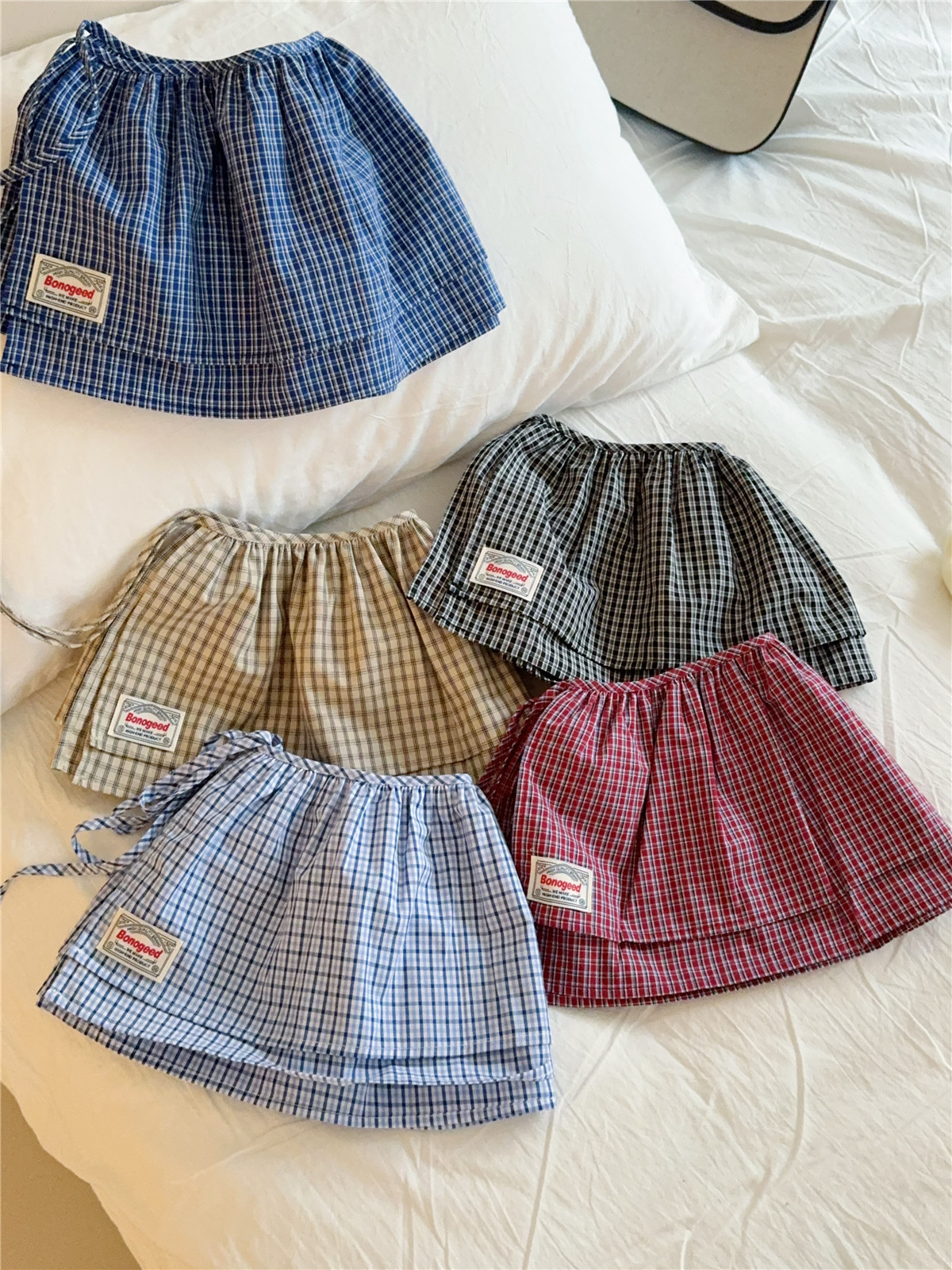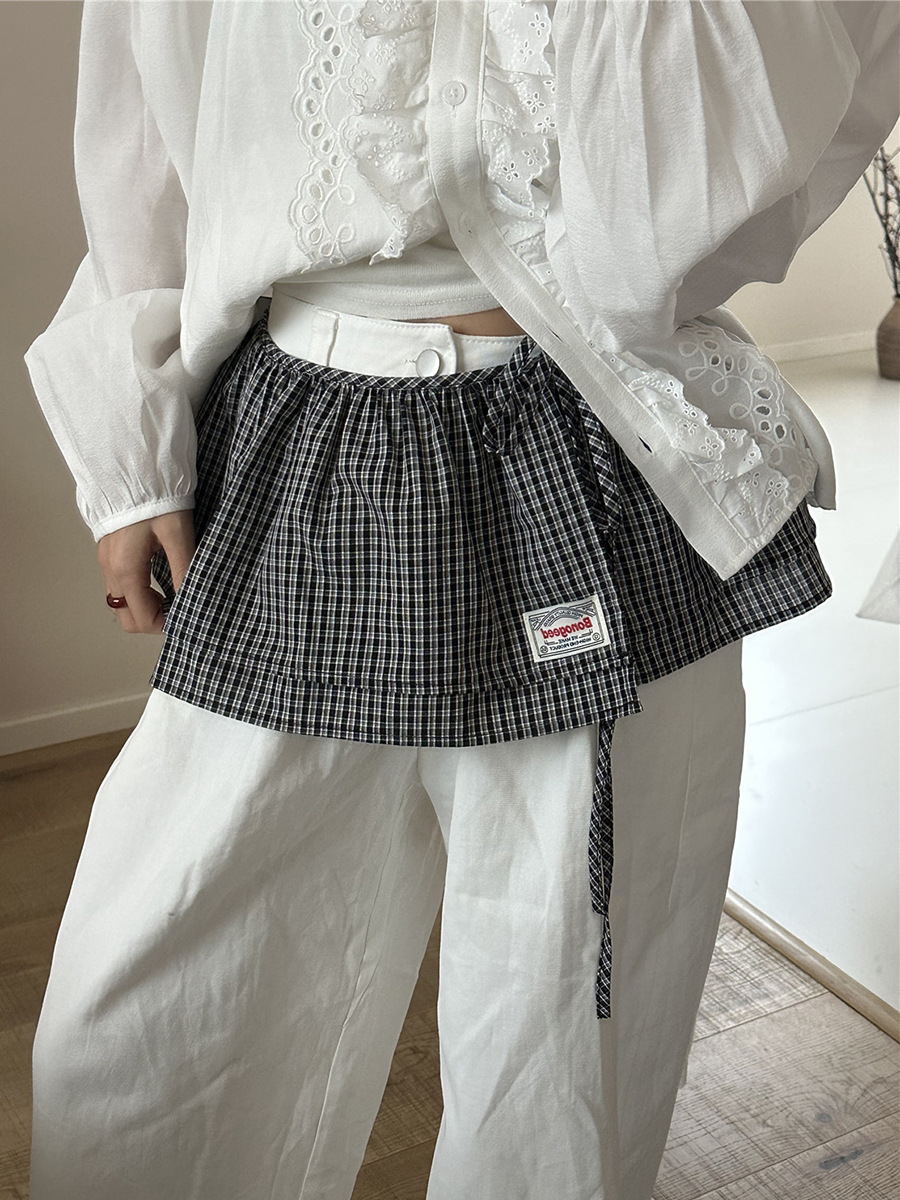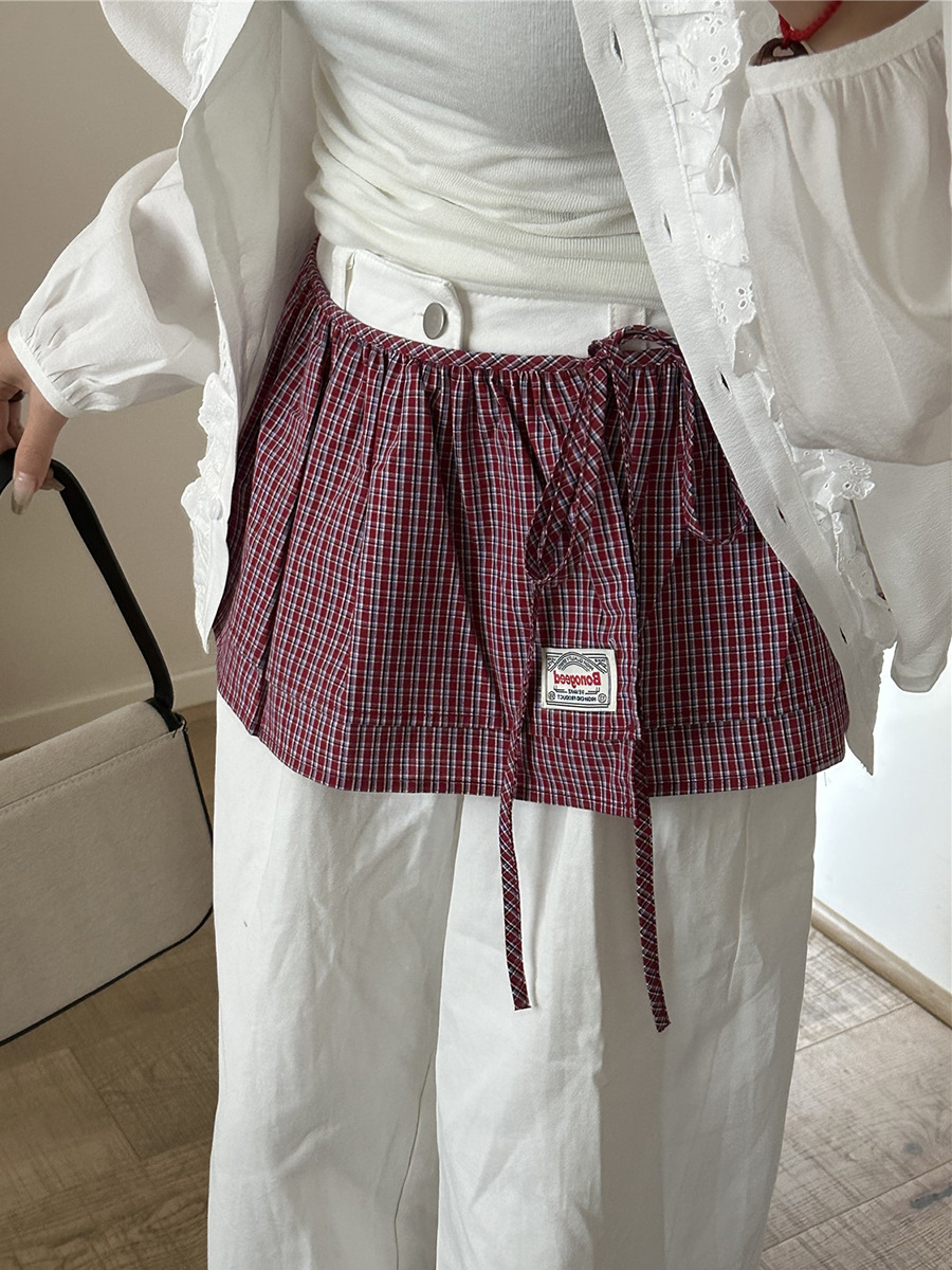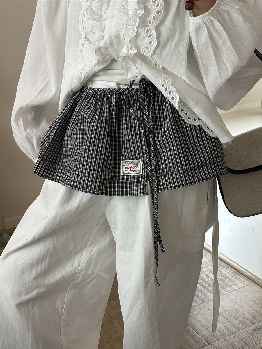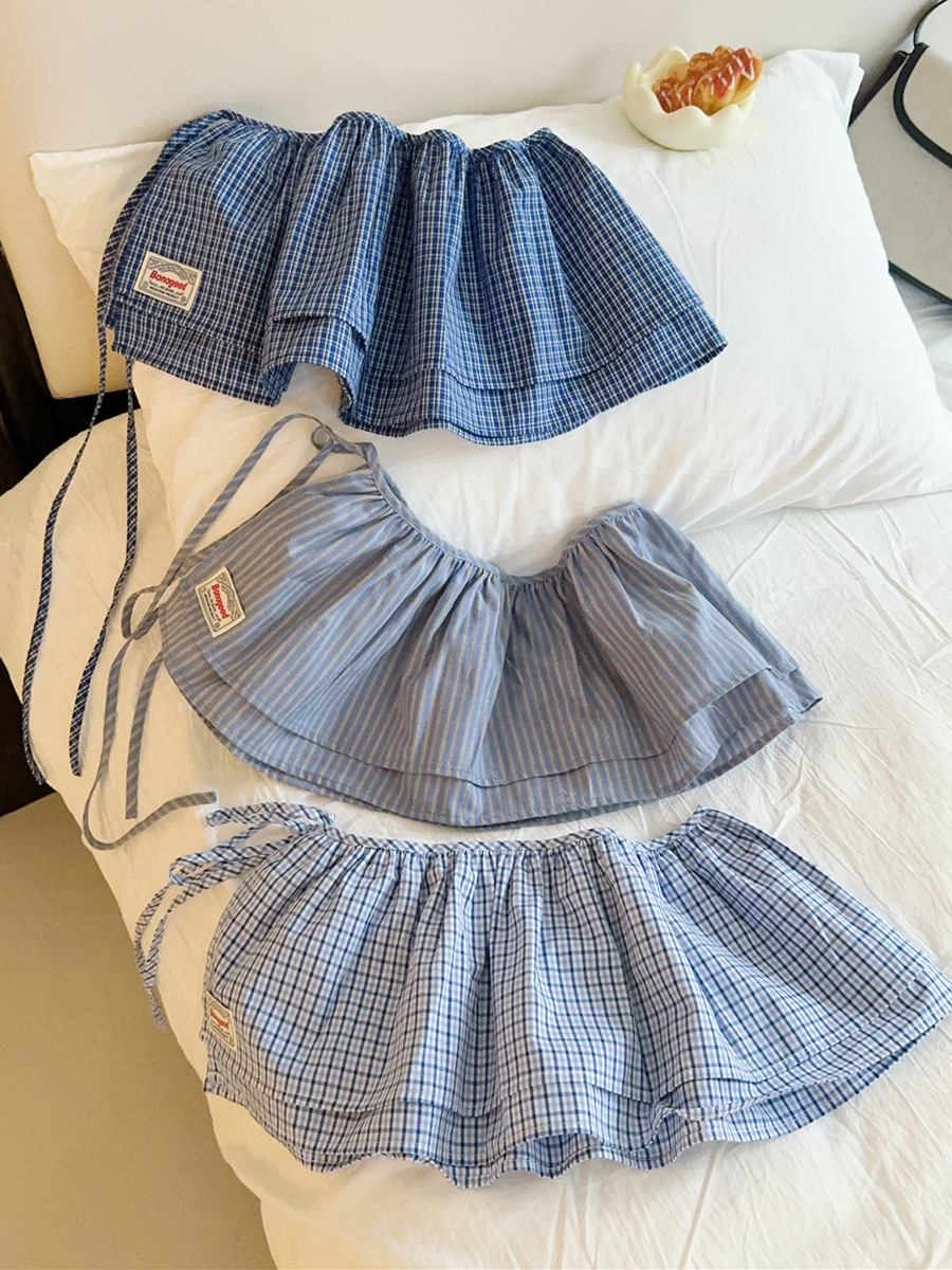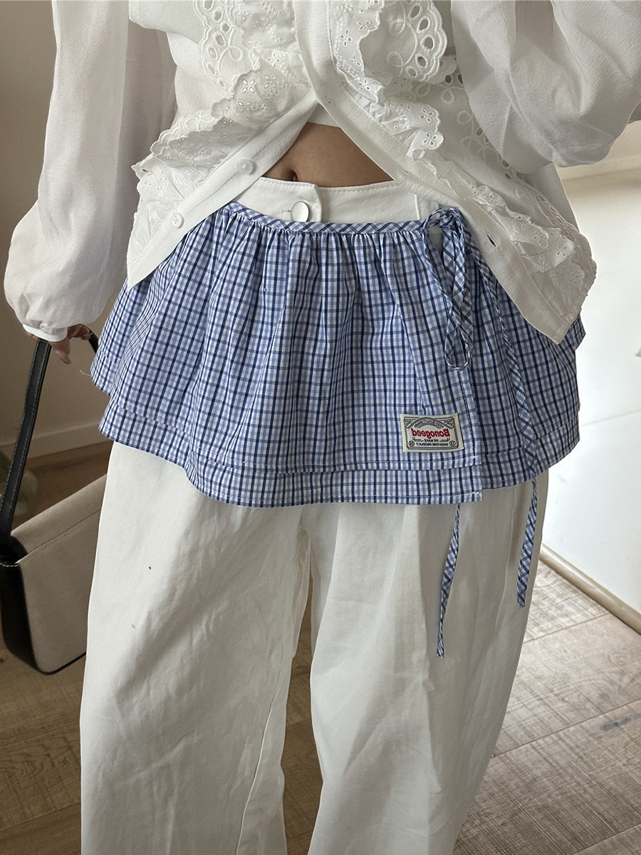 Клетчатая юбка для женщин, новинка весны 2025, синяя полуюбка на шнуровке, корейская ретро-универсальная цельная юбка с украшением