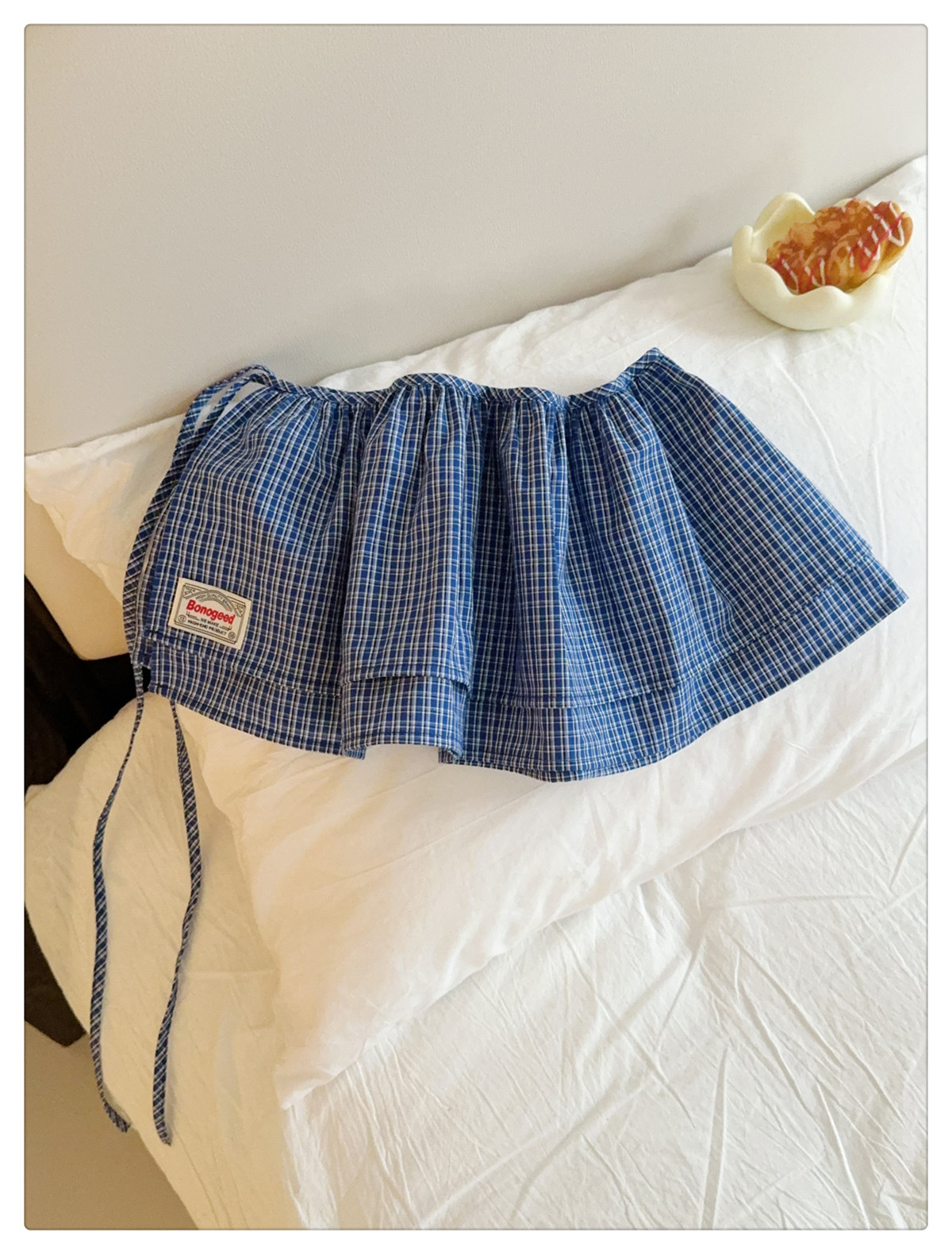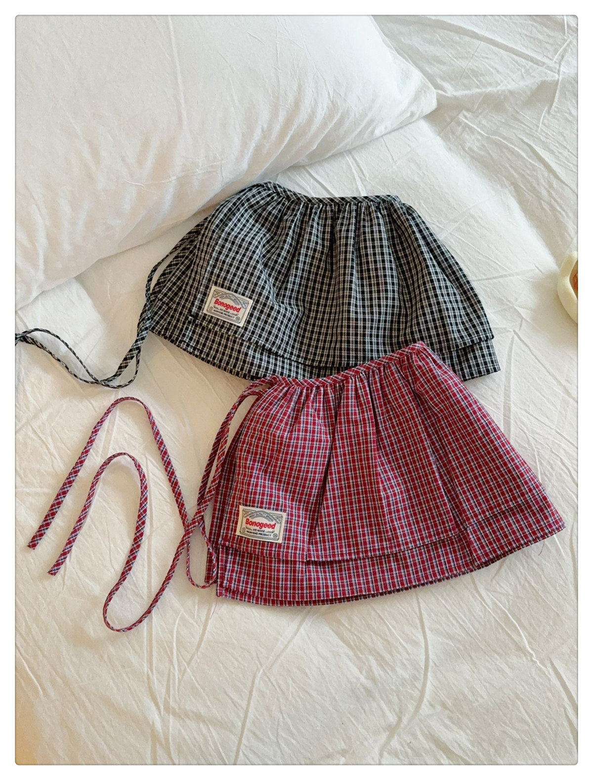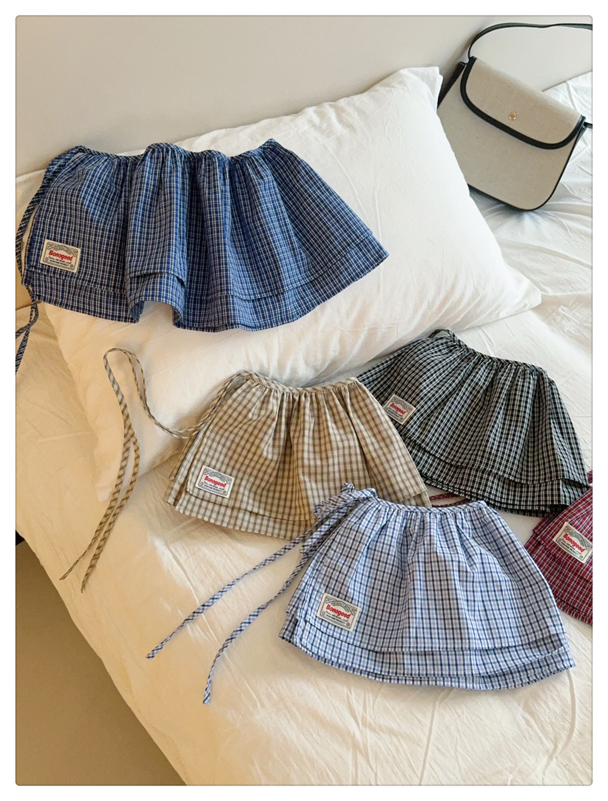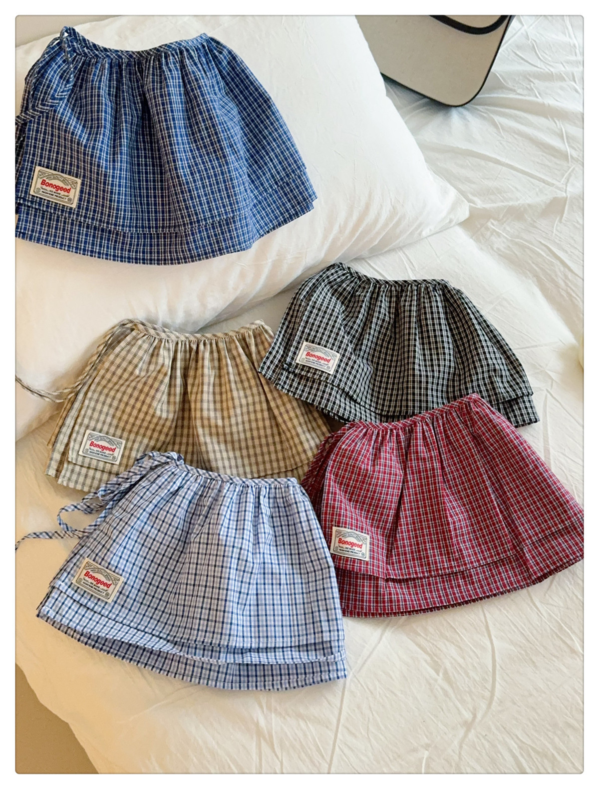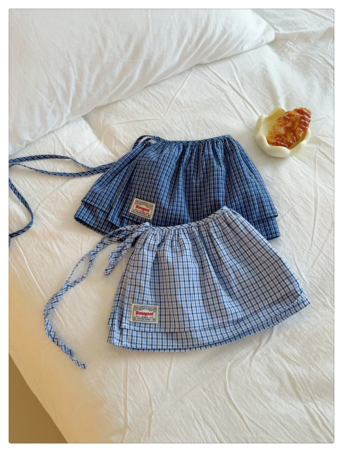Клетчатая юбка для женщин, новинка весны 2025, синяя полуюбка на шнуровке, корейская ретро-универсальная цельная юбка с украшением