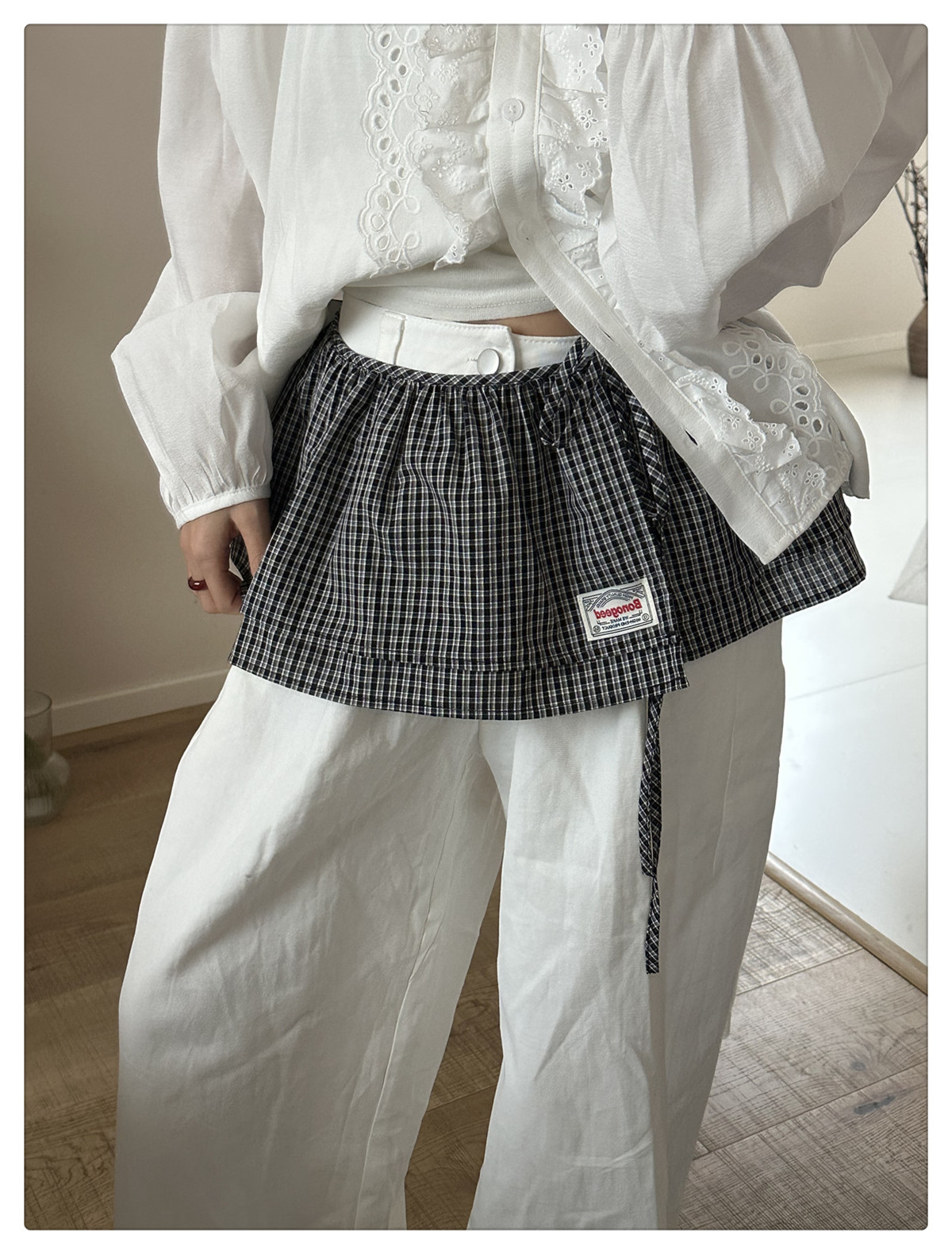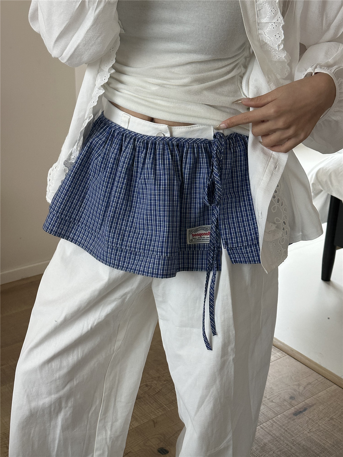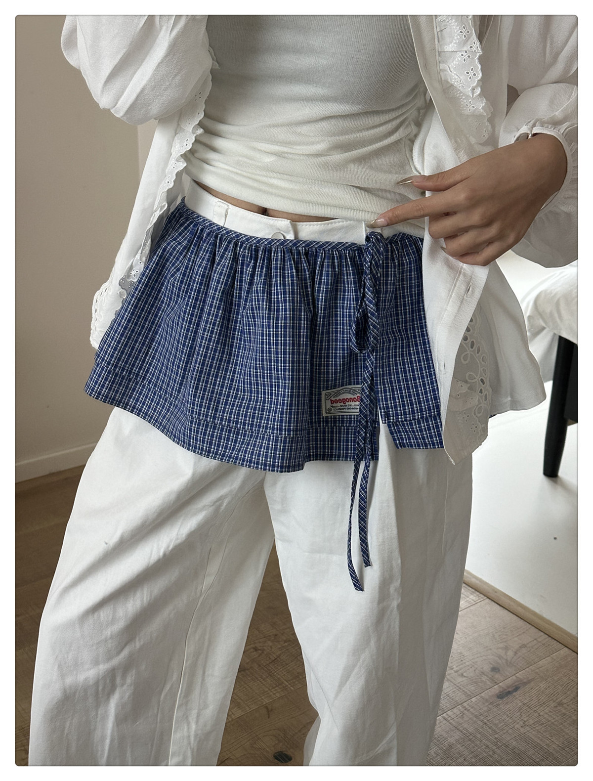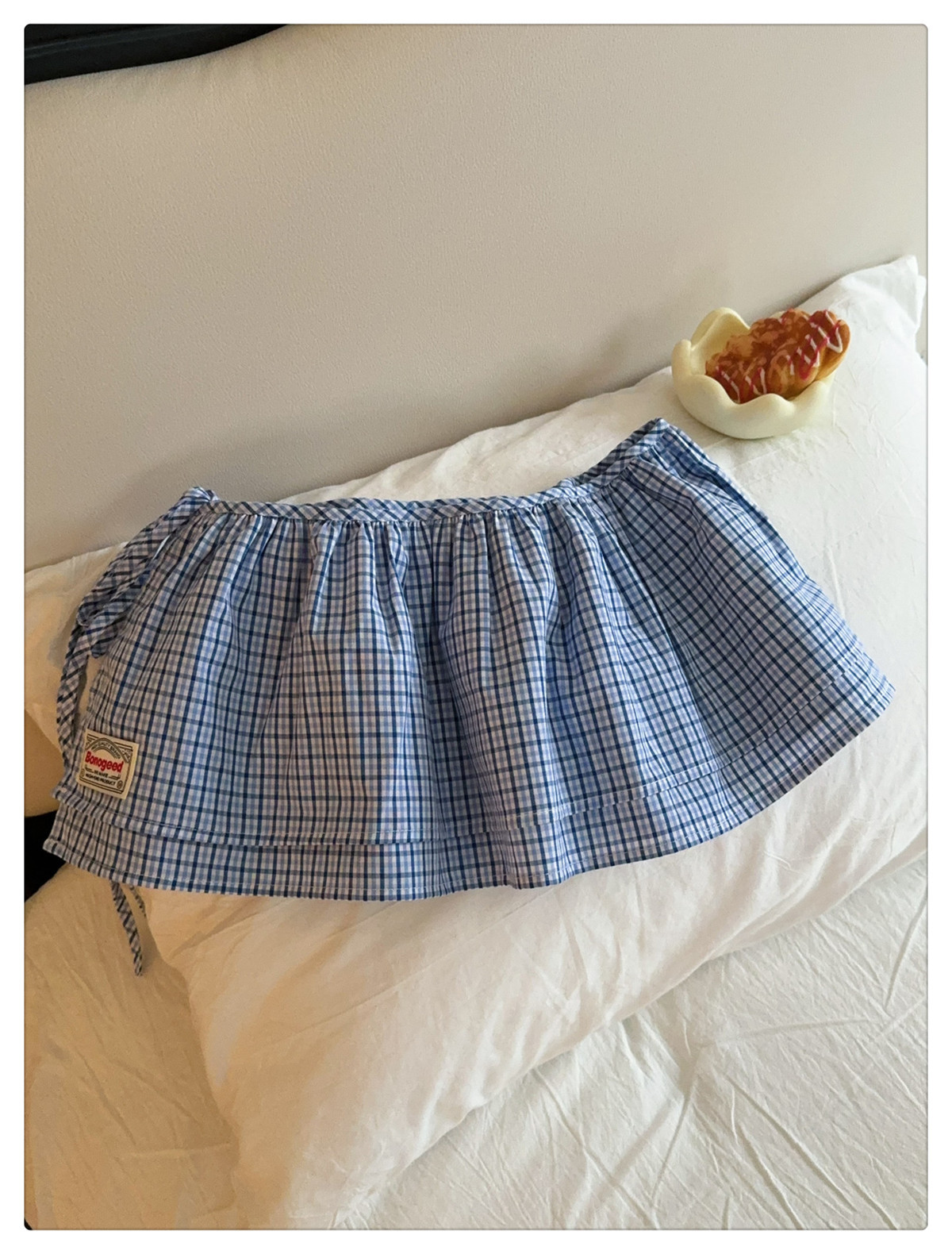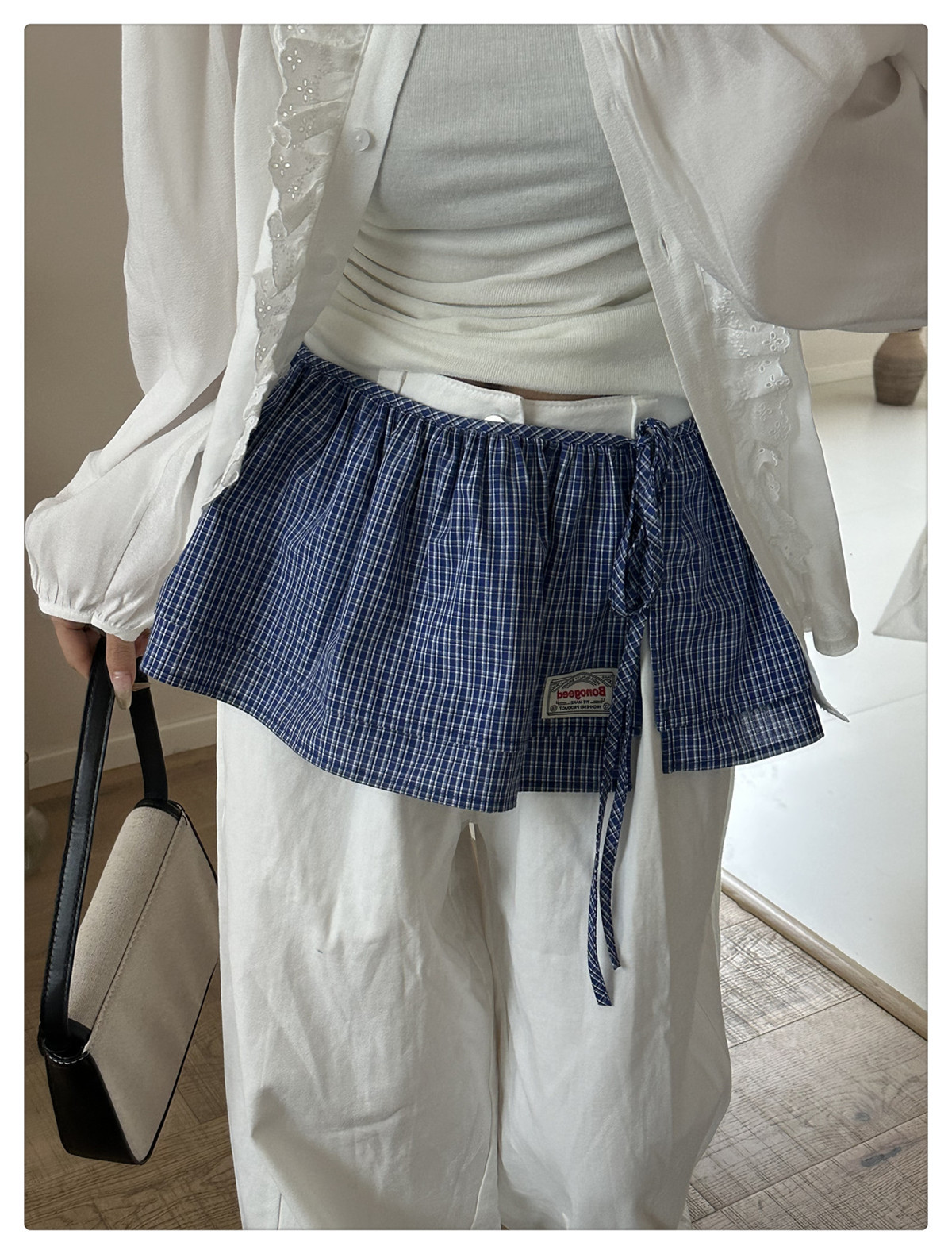 Клетчатая юбка для женщин, новинка весны 2025, синяя полуюбка на шнуровке, корейская ретро-универсальная цельная юбка с украшением