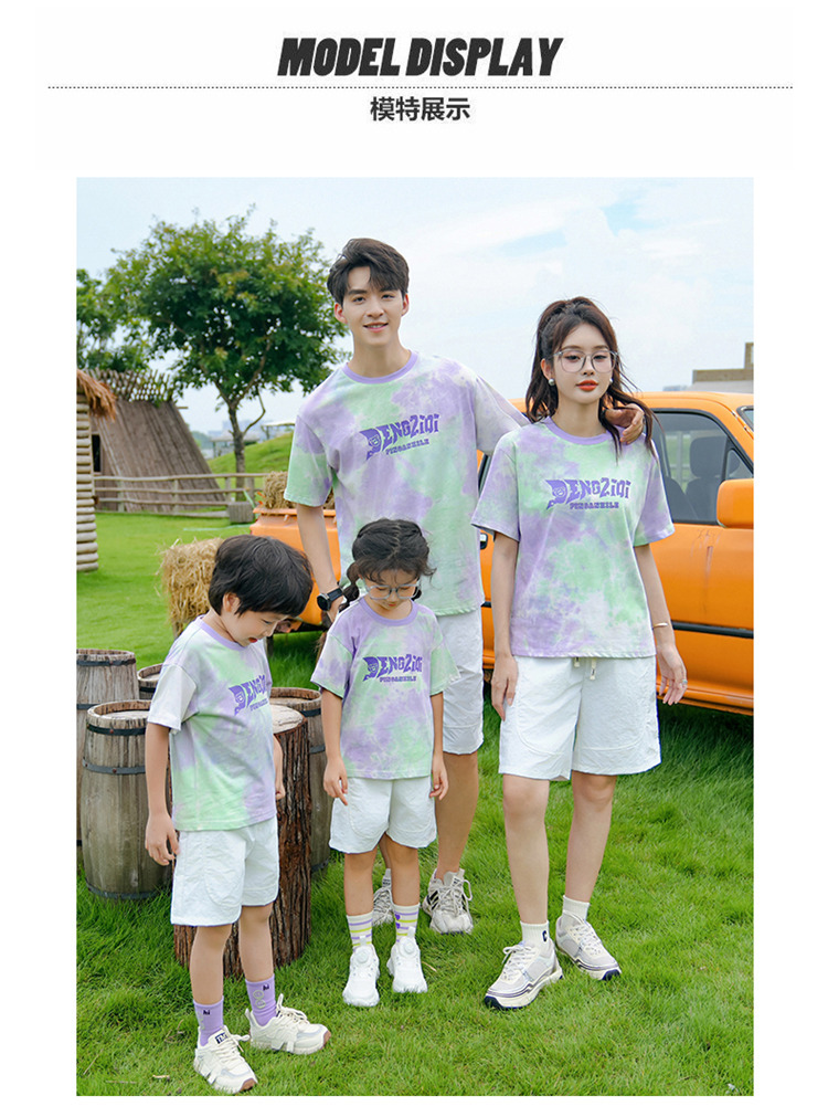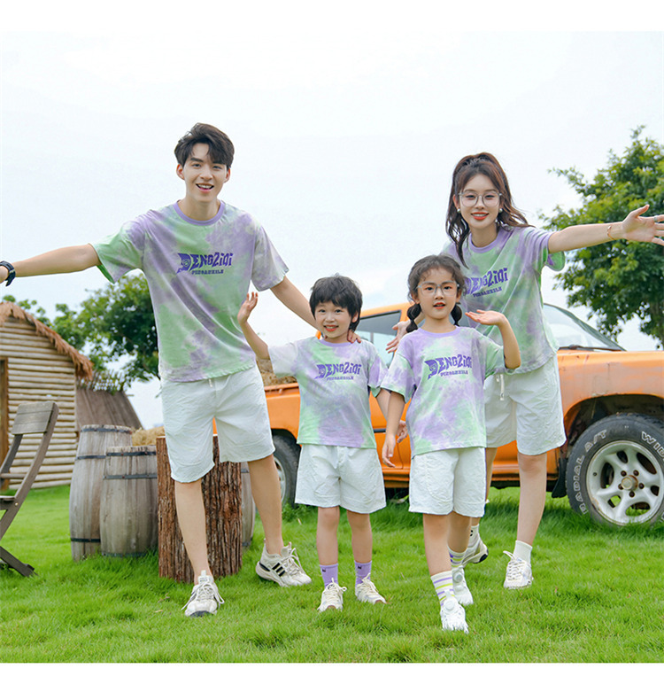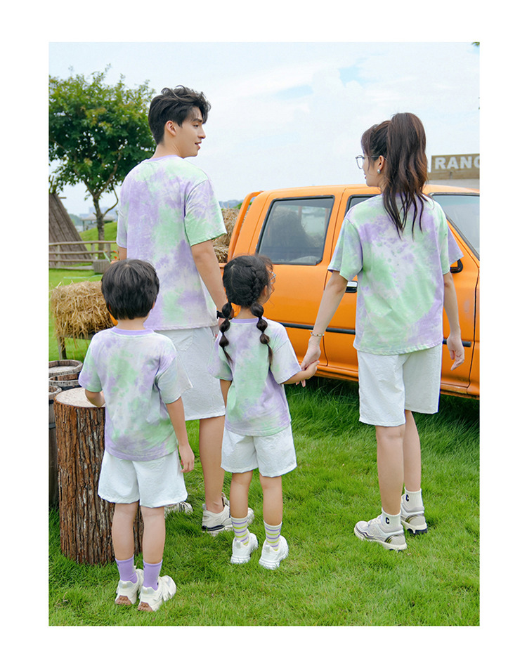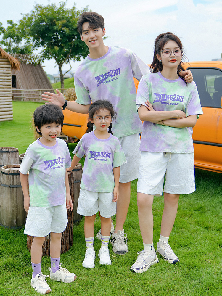 Новые семейные комплекты с коротким рукавом и эффектом тай-дай 2025 года для отпуска, повседневной летней одежды, выпускных в детских садах и начальной школе, униформа для мероприятий
