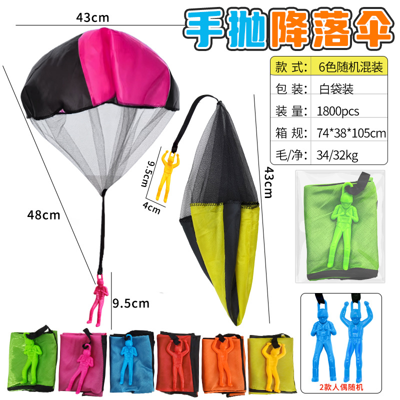 Детская рука бросает парашют игрушка воздушный летающий зонт с солдатом парашют