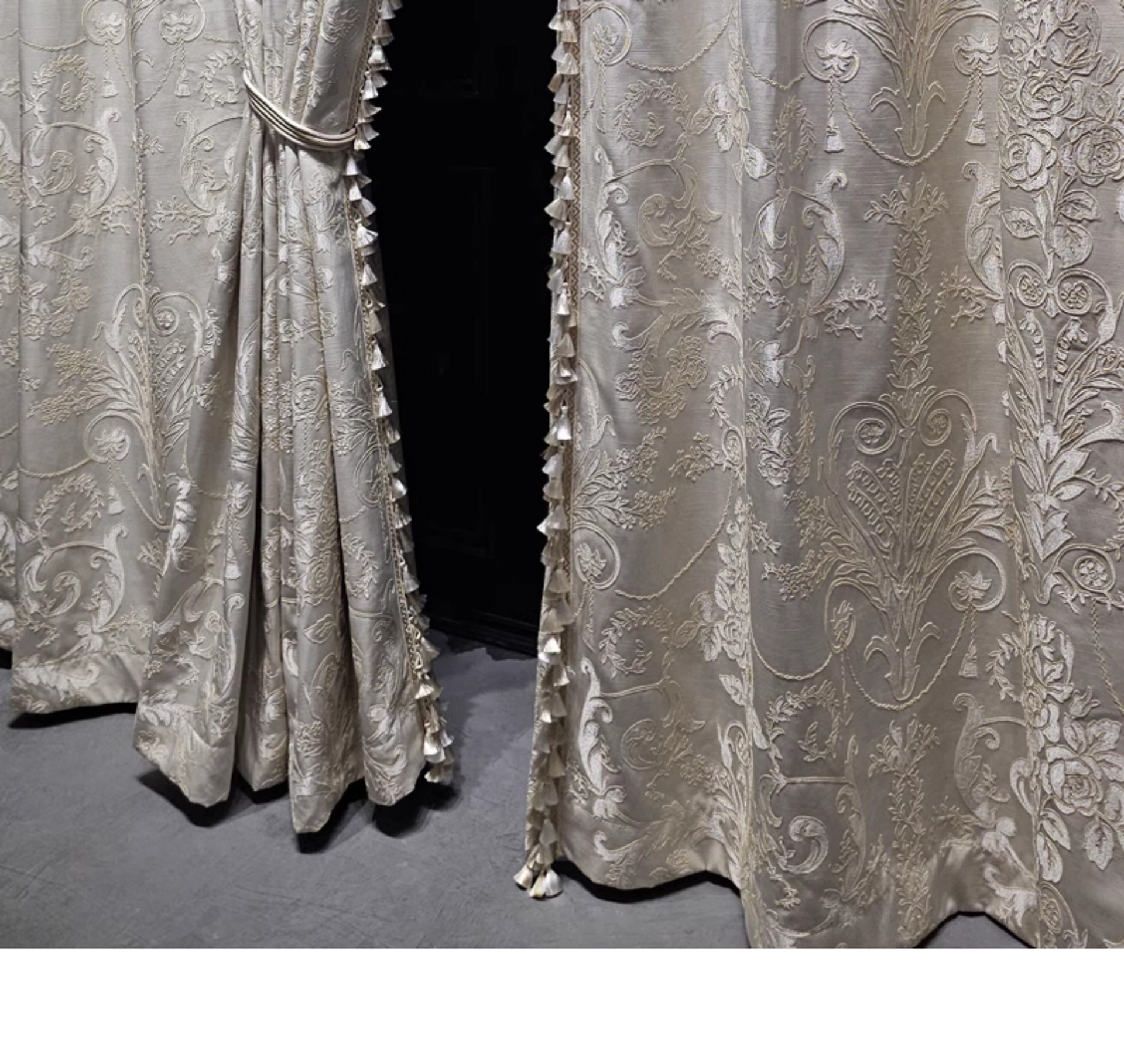 Французские шторы класса люкс с высокоточной вышивкой, кремового цвета, для гостиной и спальни виллы, коллекция 2025 года.