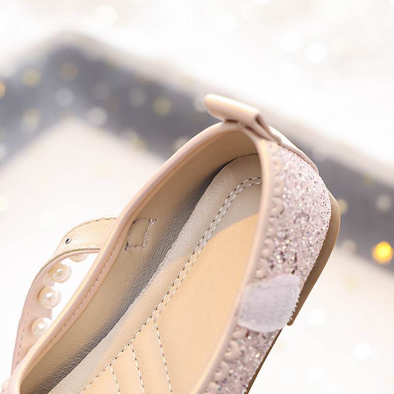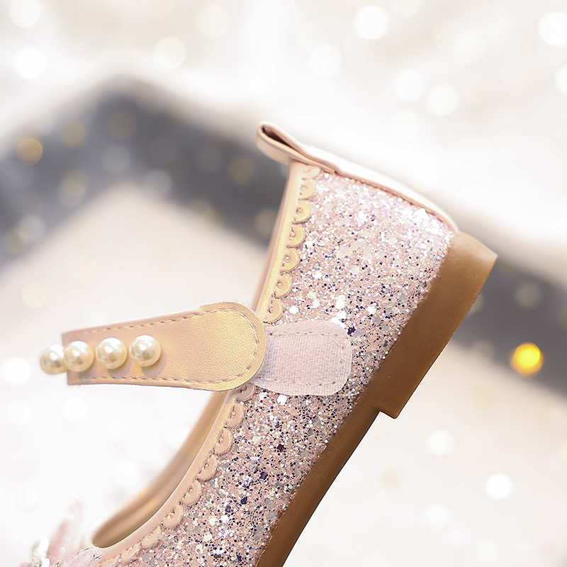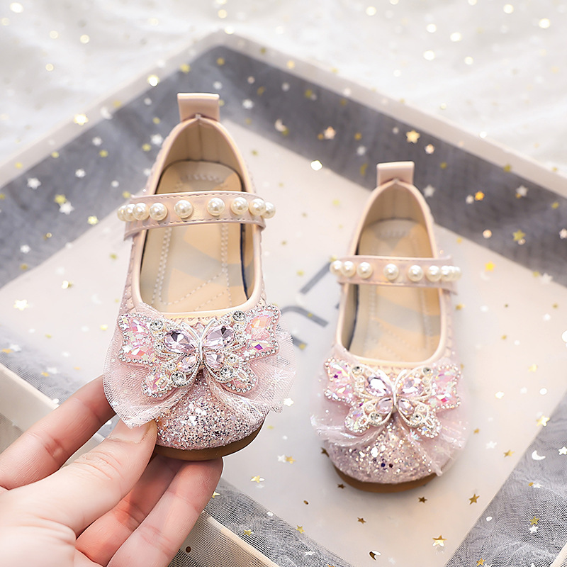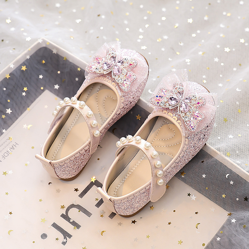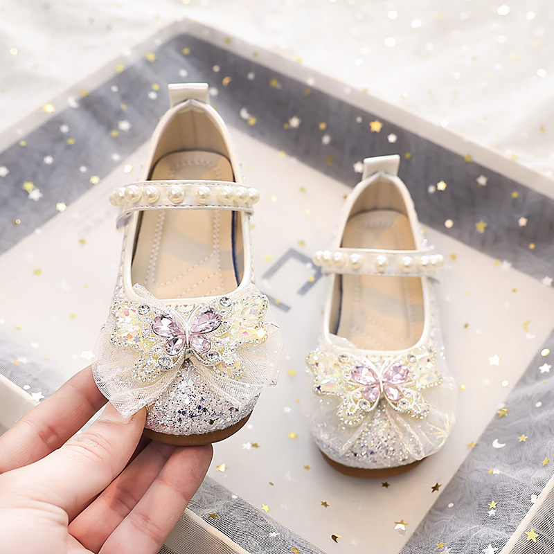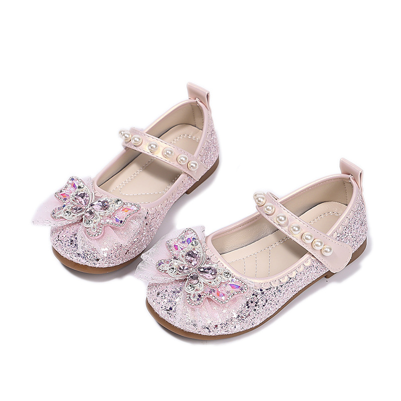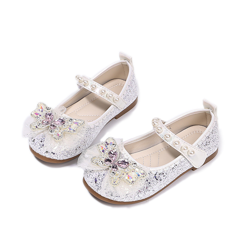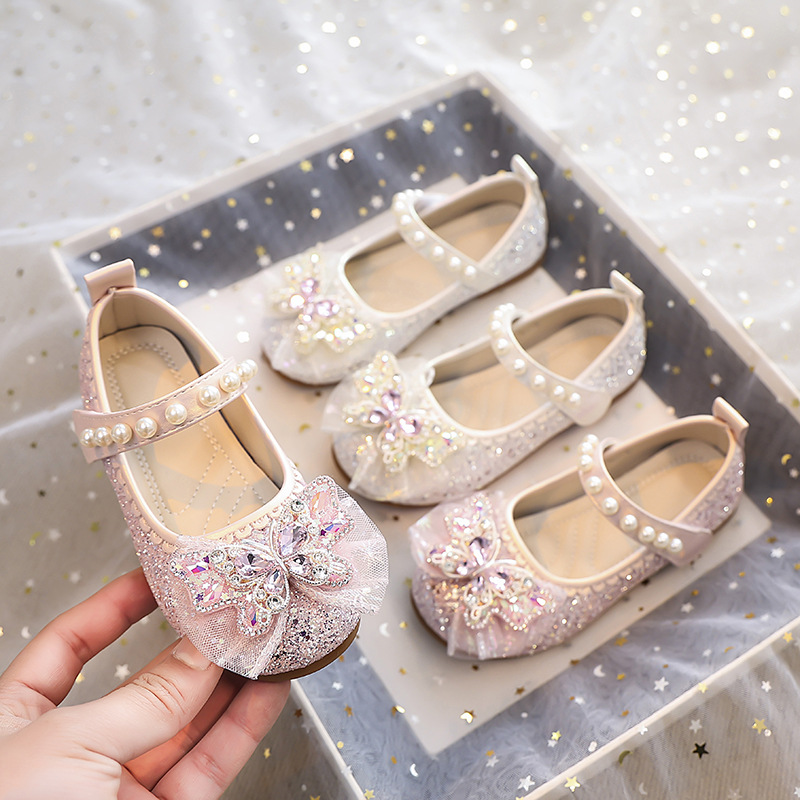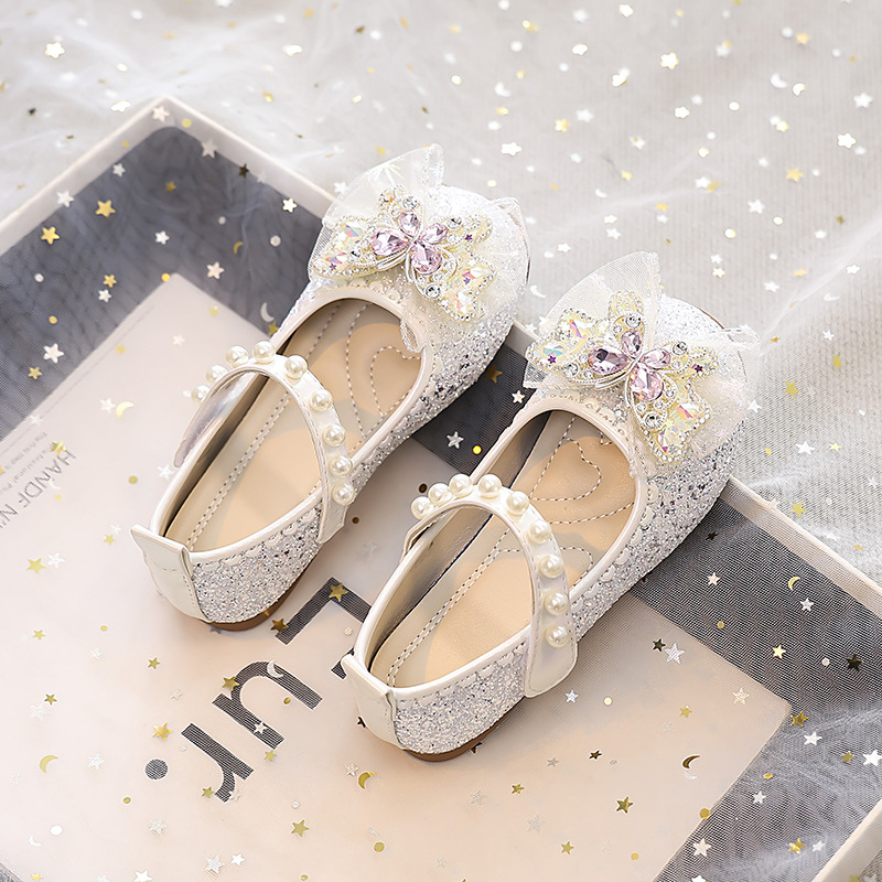 Туфли для девочек Детская принцесса одиночные туфли 2025 новый летний блестящий маленькая девочка мягкая подошва с платьем хрустальные кожаные туфли