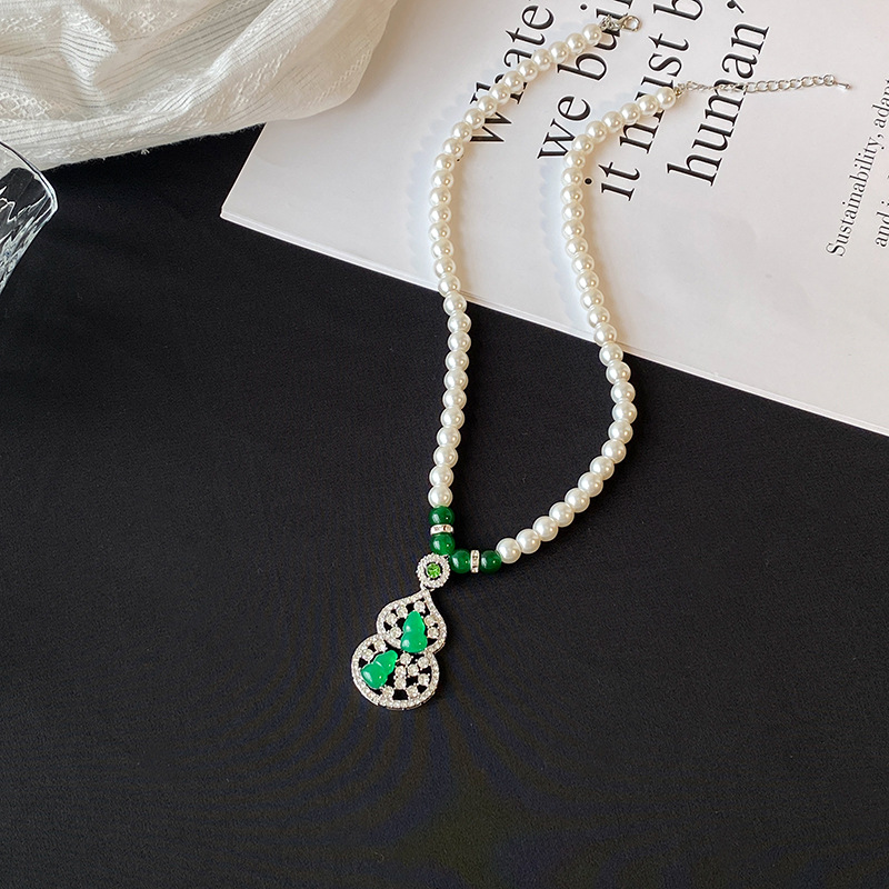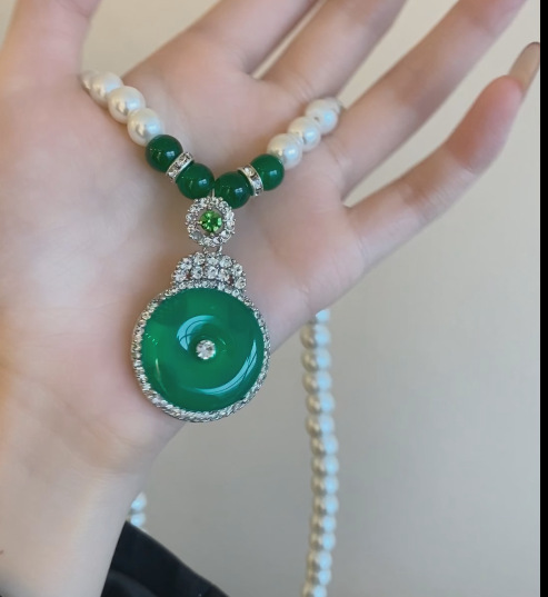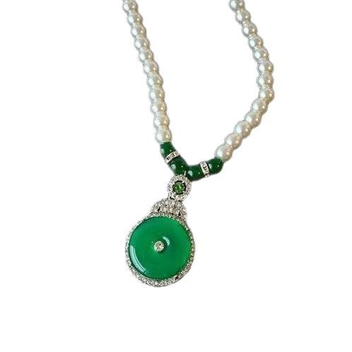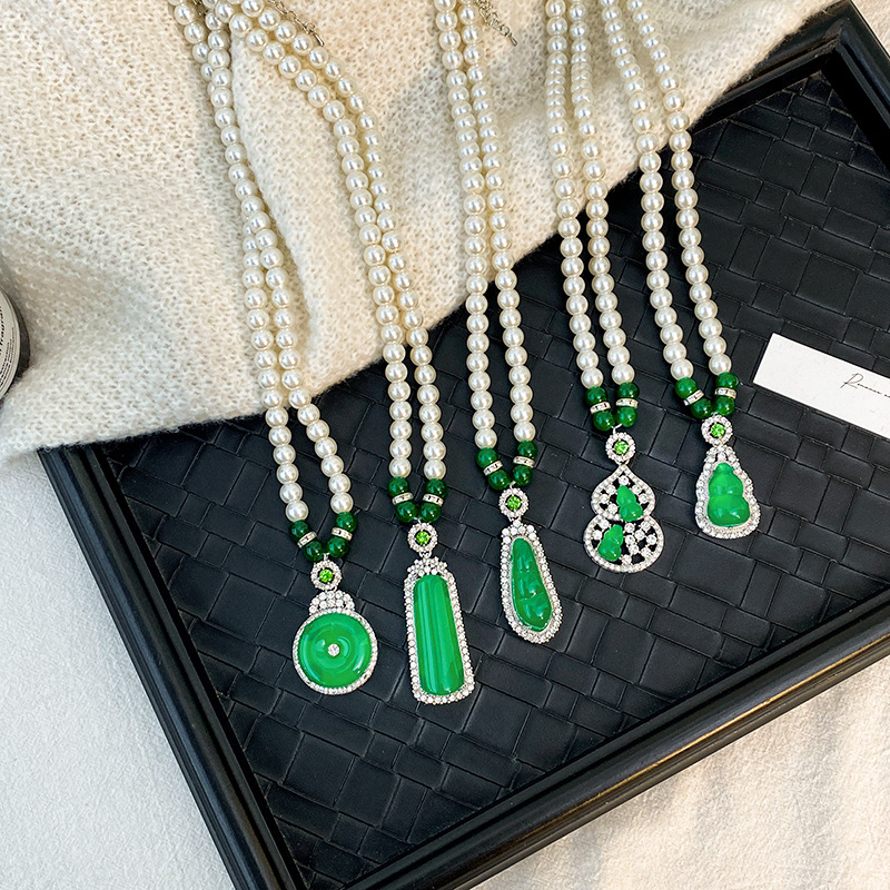 Высокий лед зеленый халцедон жемчуг ожерелье женский дикий китайский стиль ретро свитер цепи высокого уровня дизайн нишевые подвески